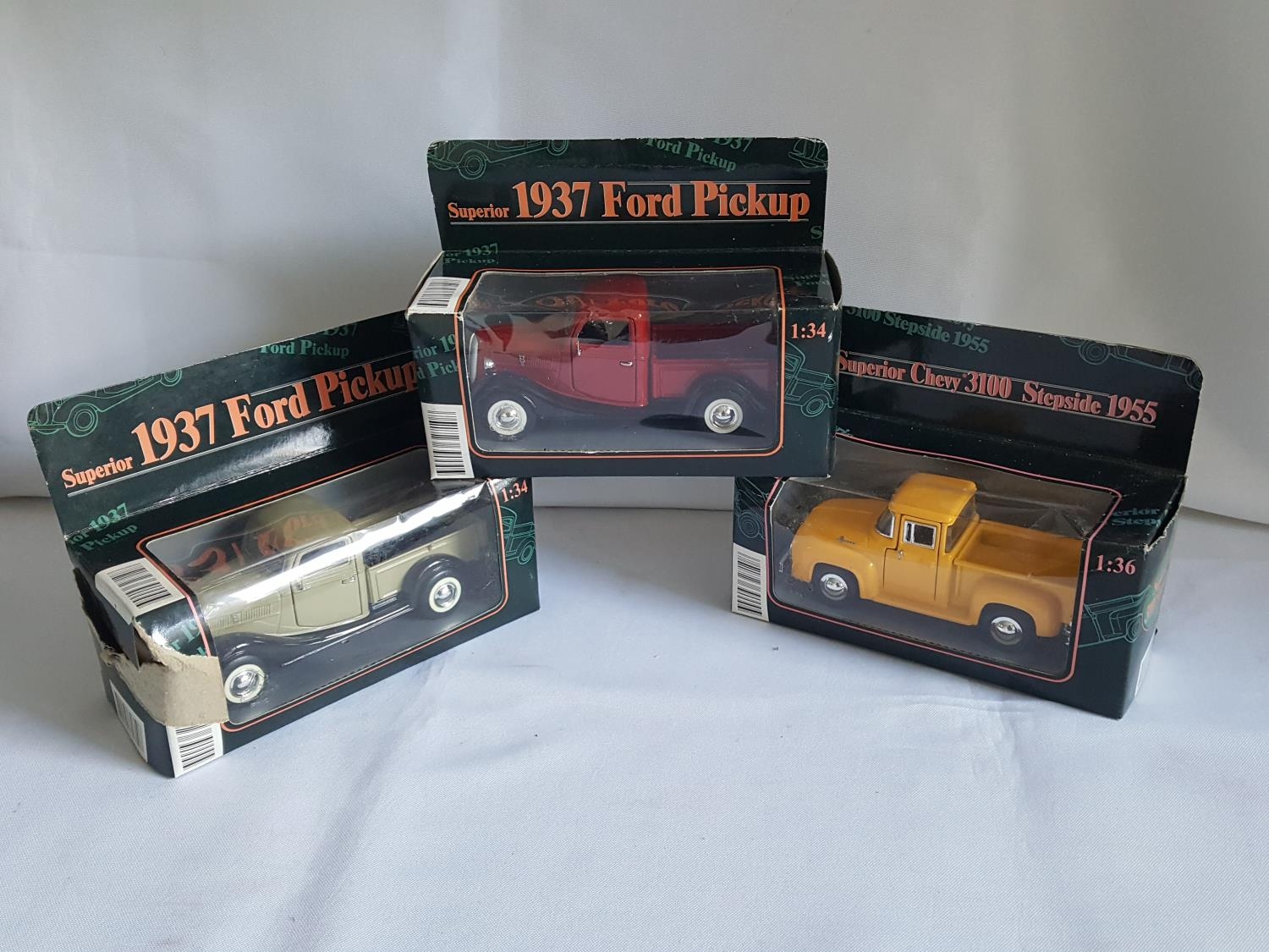 Chevy Stepside & 2 1937 Ford Pickups 2 colourways diecast cars