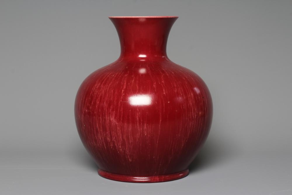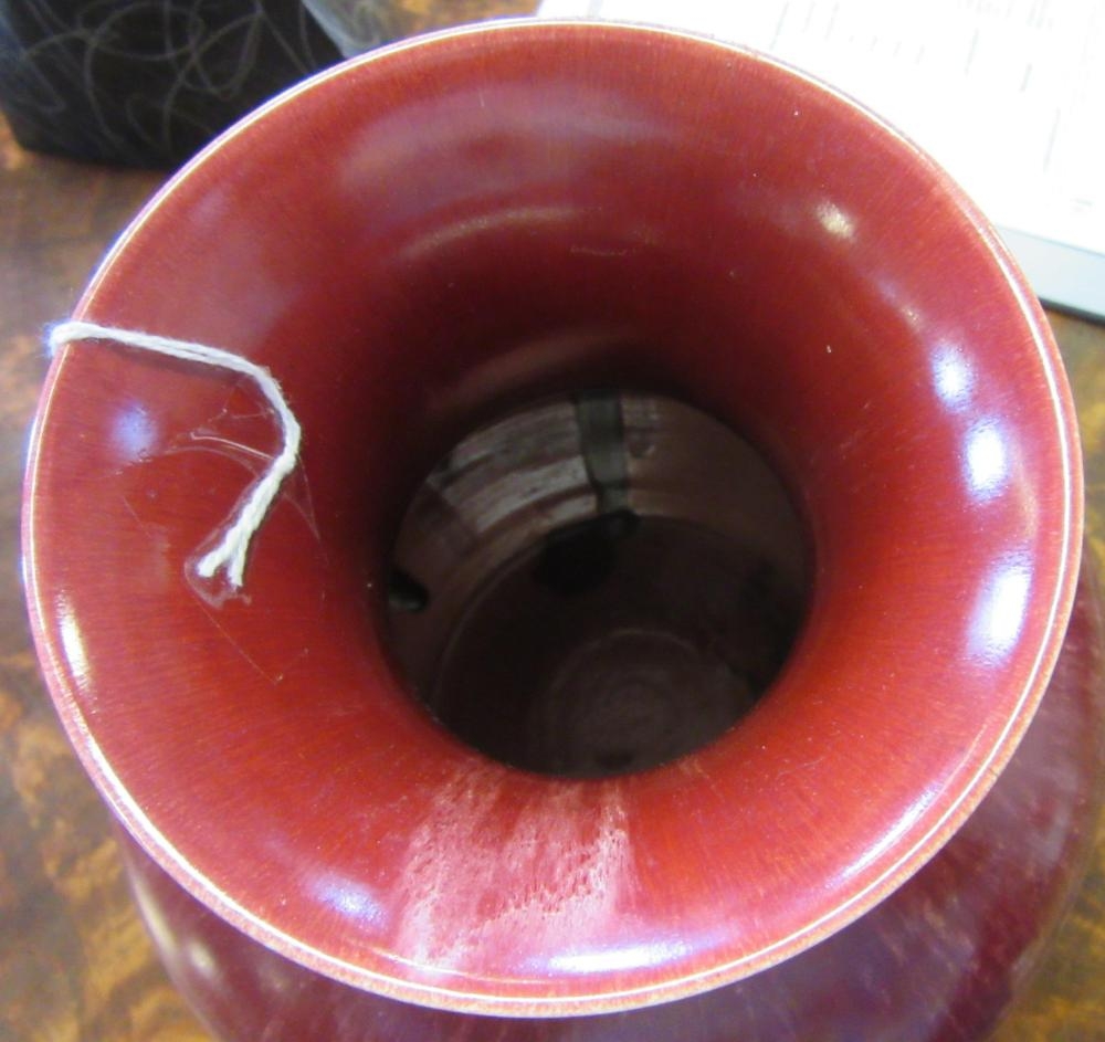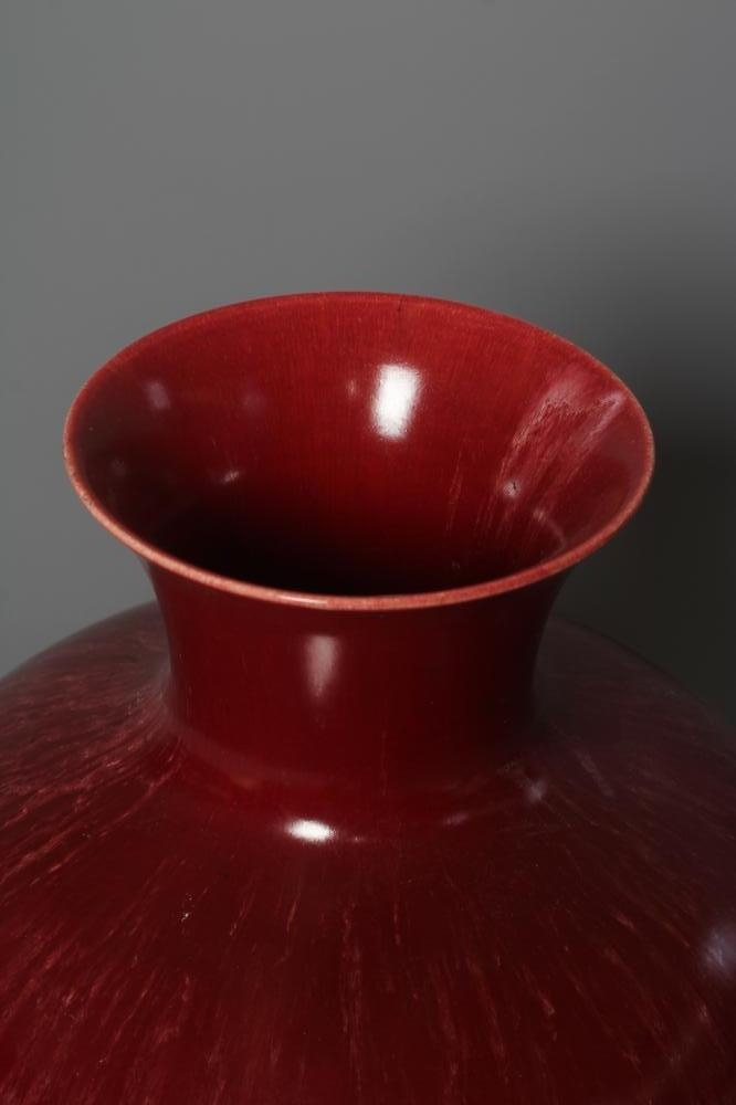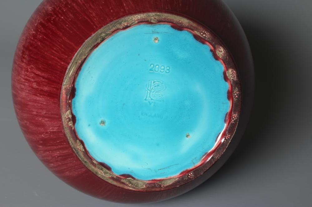 A PILKINGTON POTTERY LARGE VASE, 1906, of baluster form, in a matt streaky red glaze, turquoise base impressed, shape 2098, 10" high (Est. plus 24% premium inc. VAT)