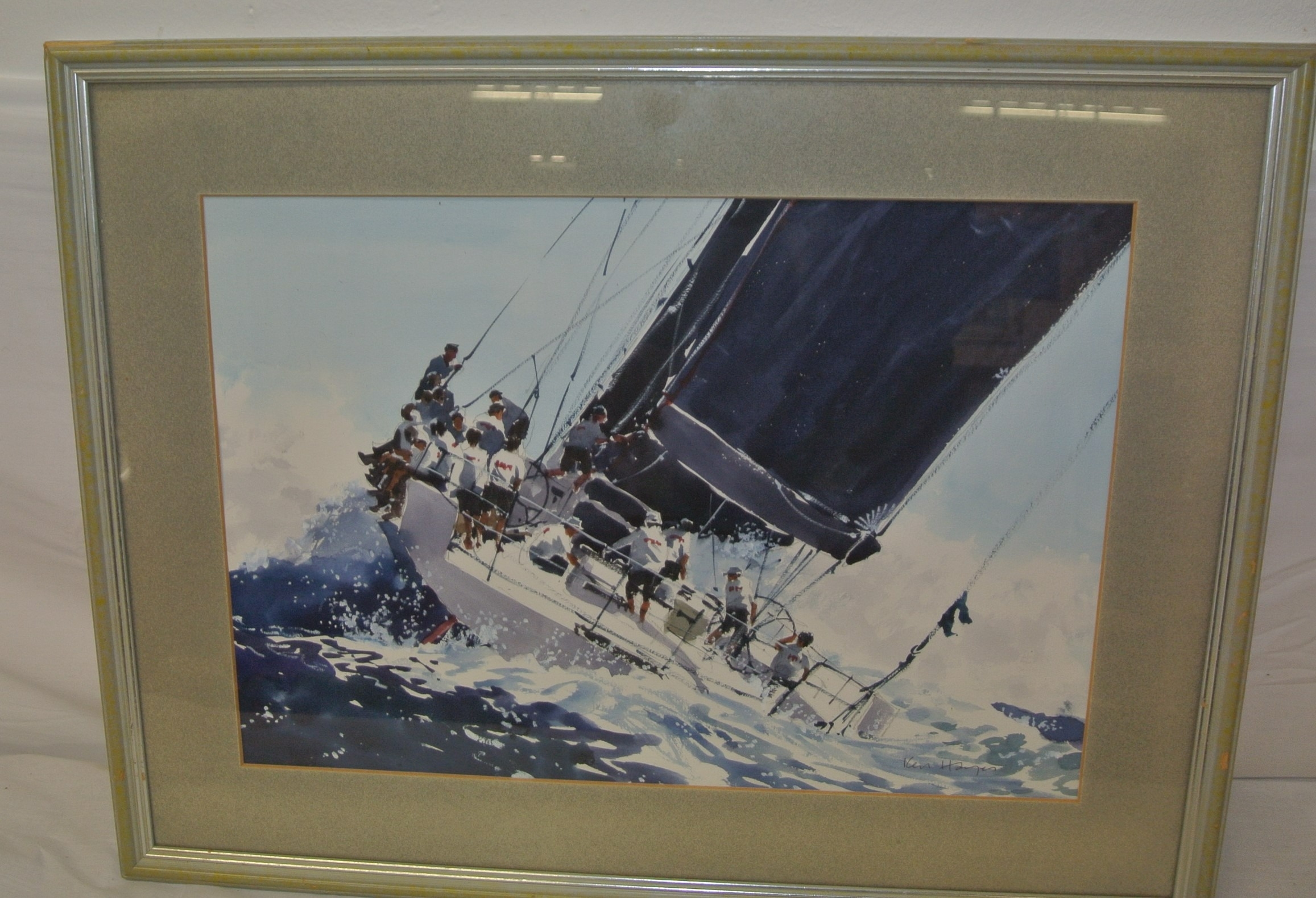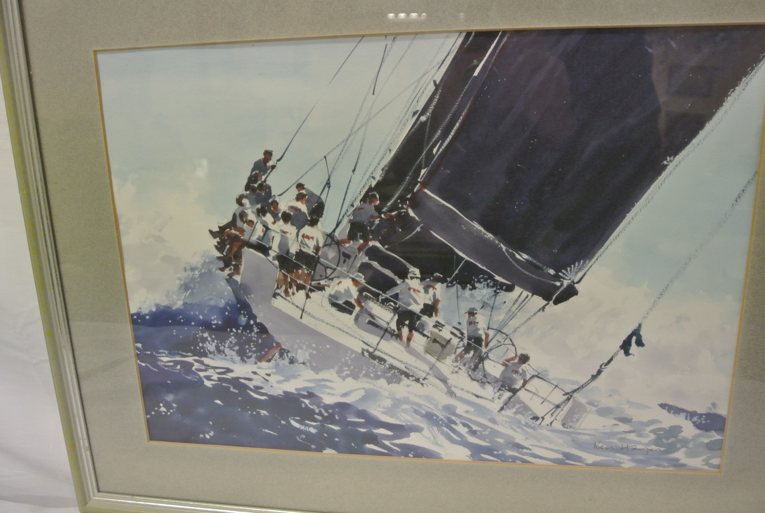 Ken Hayes 'Yacht under sail' watercolour 32x47cm signed