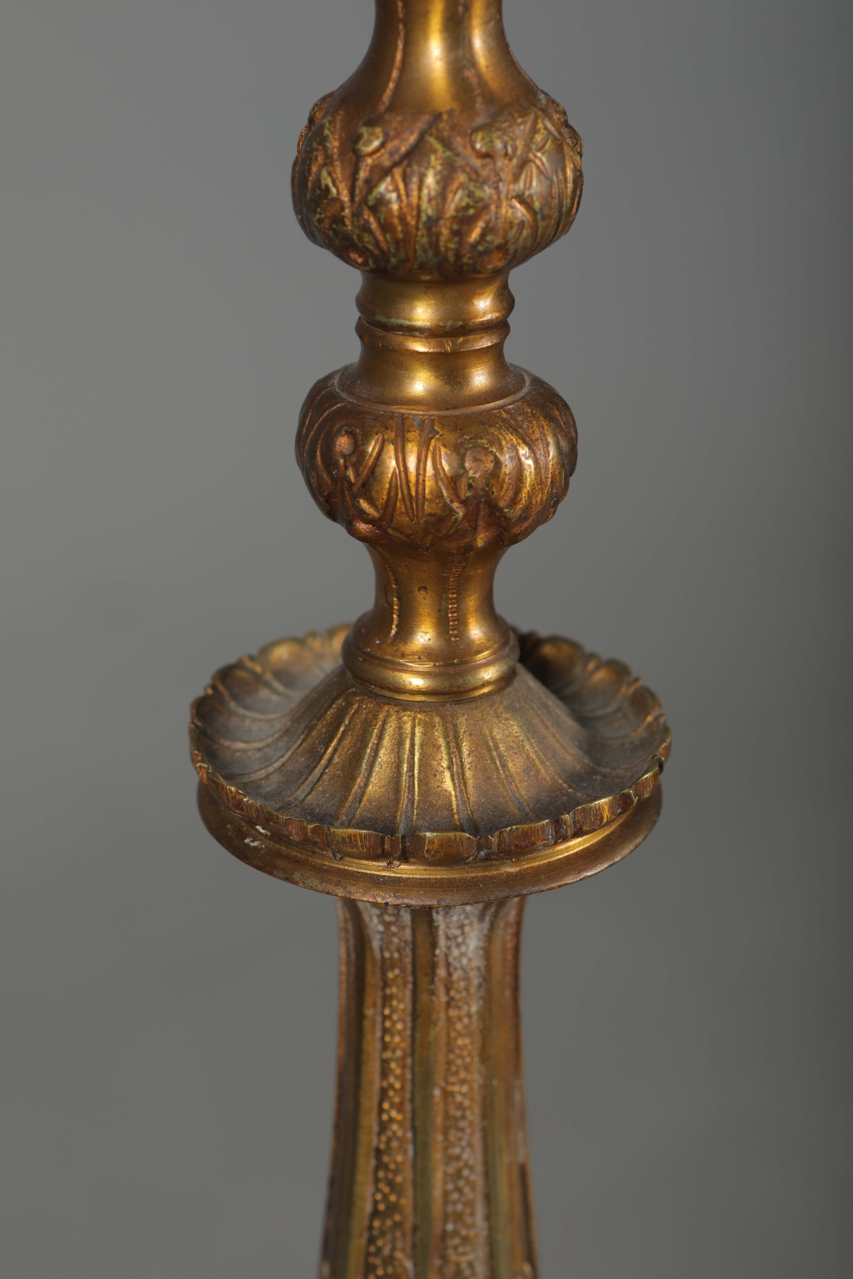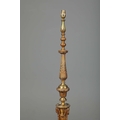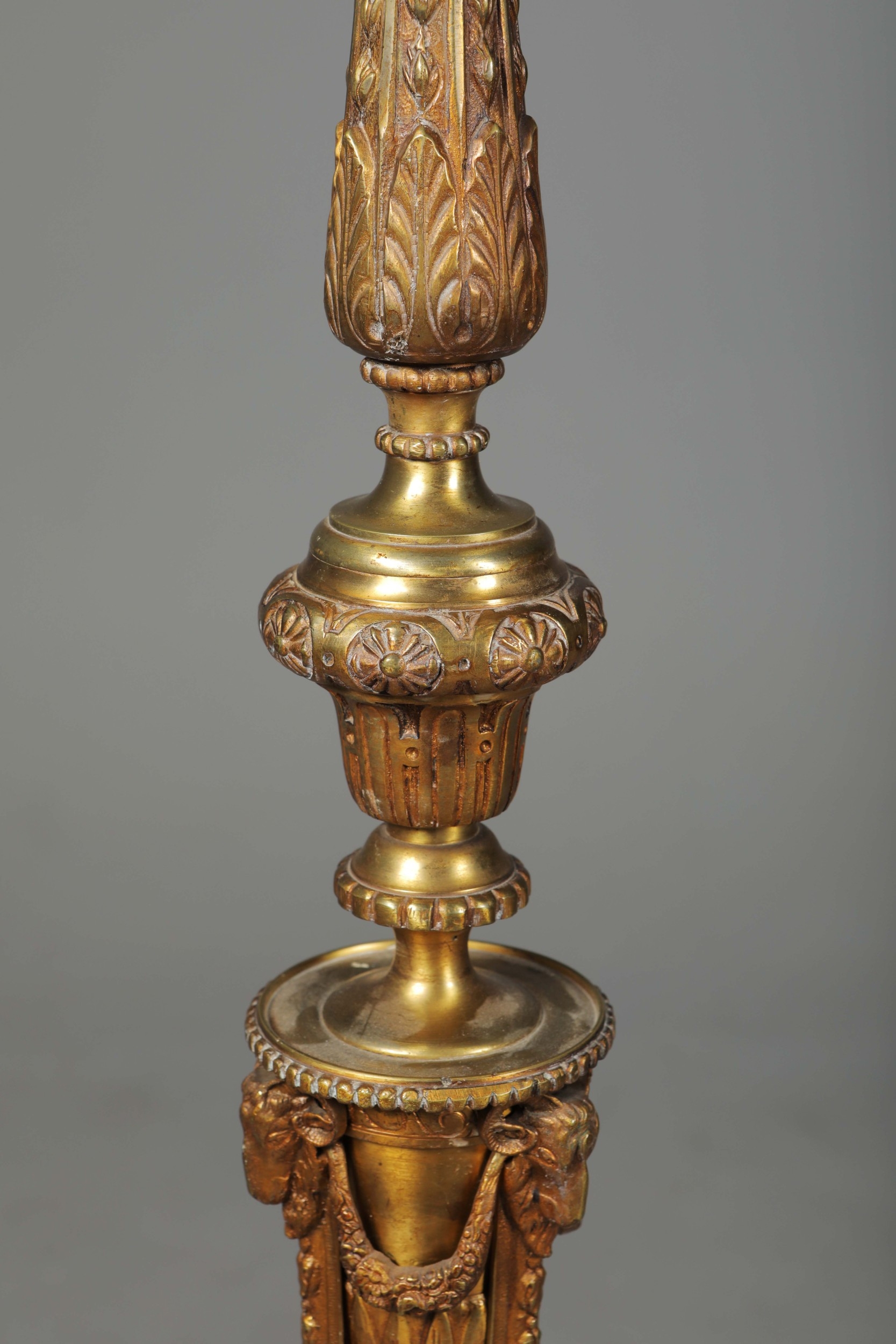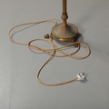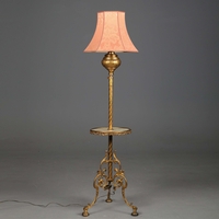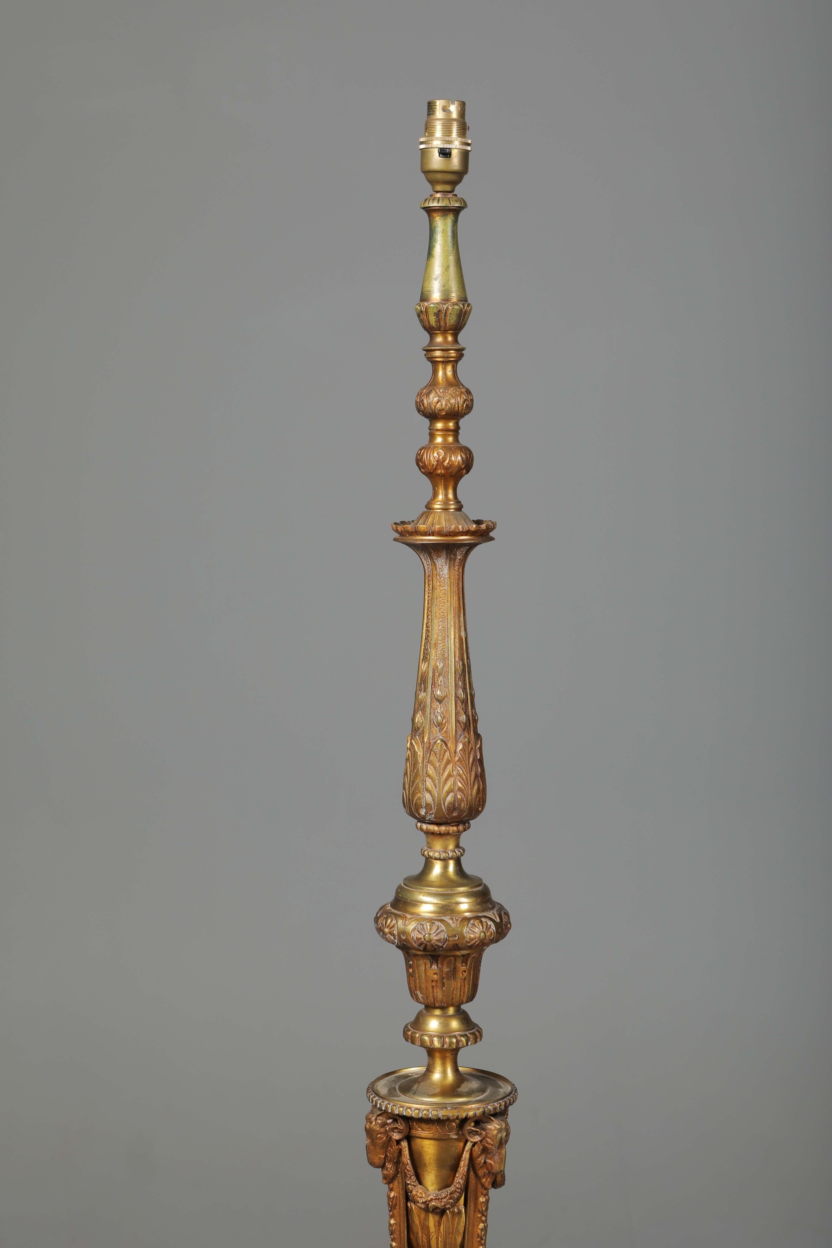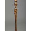BRASS STANDARD LAMP. with swag detail and three paw supports 155cm t.