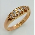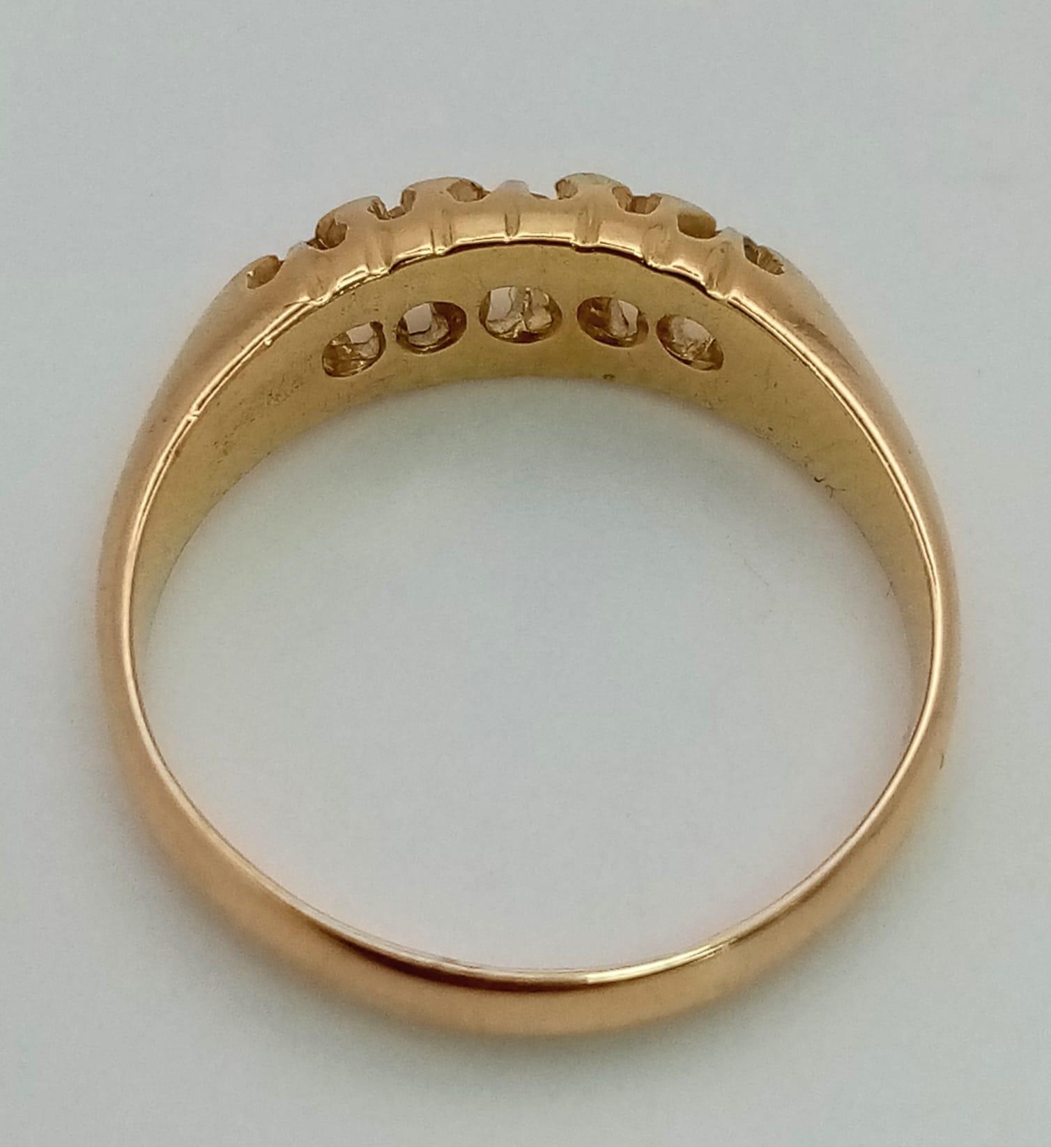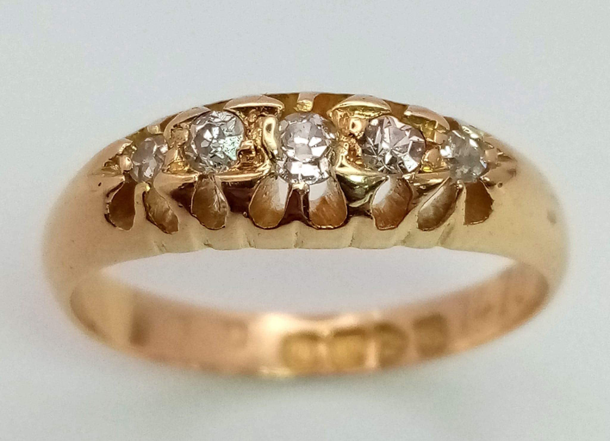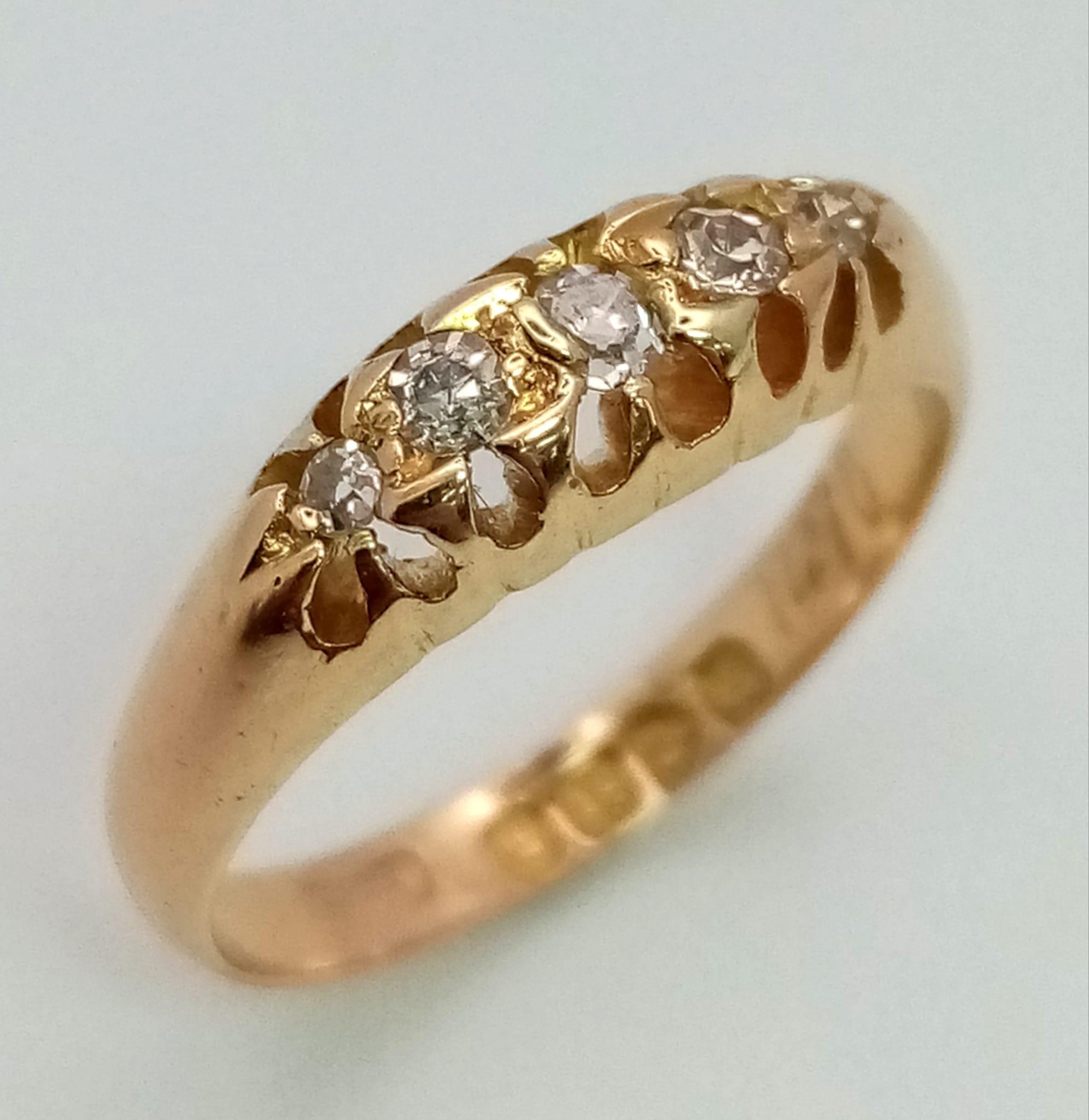 AN ANTIQUE 18K YELLOW GOLD OLD CUT DIAMOND RING, WITH 5 STONE OF APPROX 0.20CT DIAMONDS, WEIGHT 3.6G SIZE N HALLMARKED CHESTER 1919