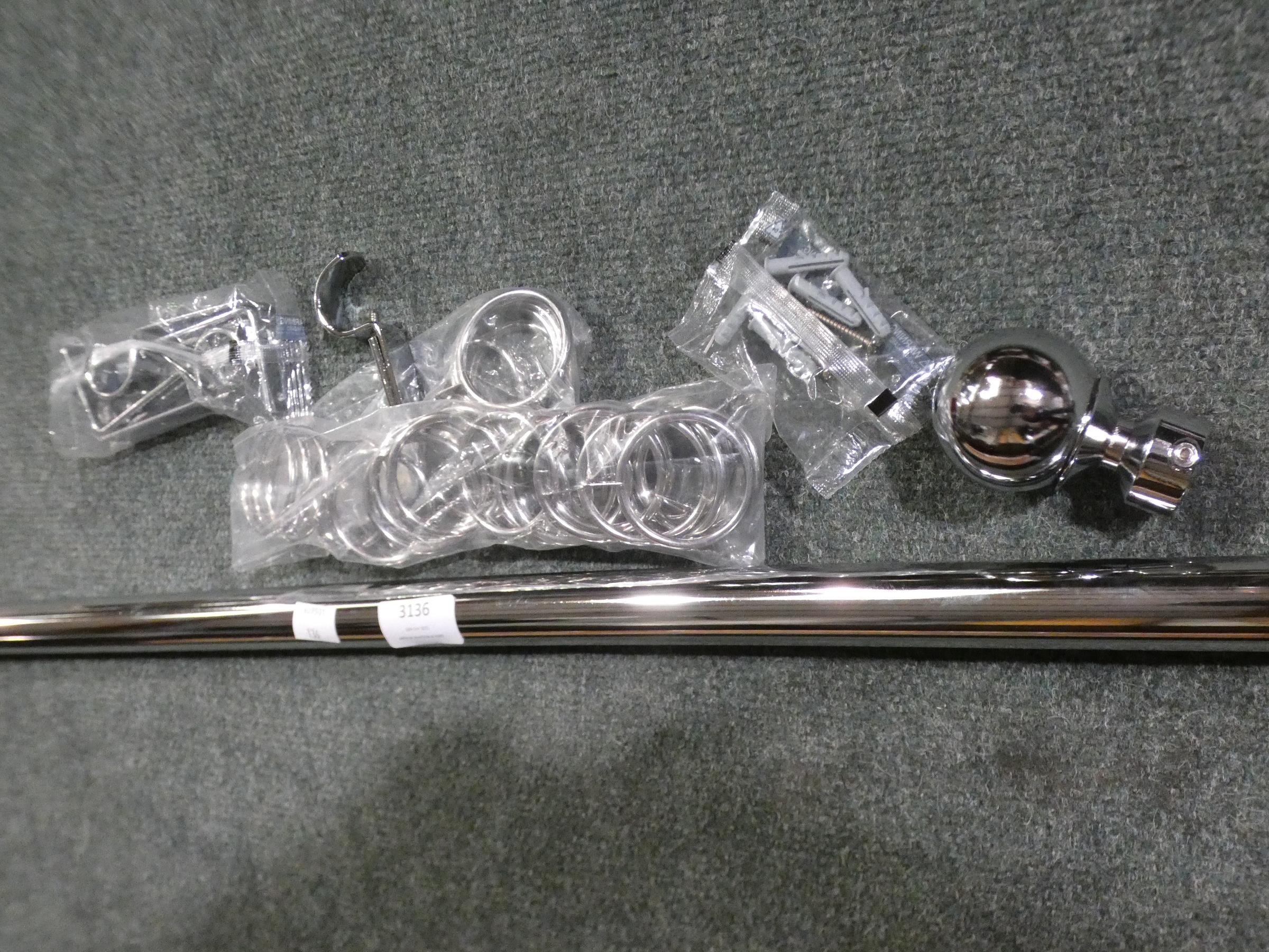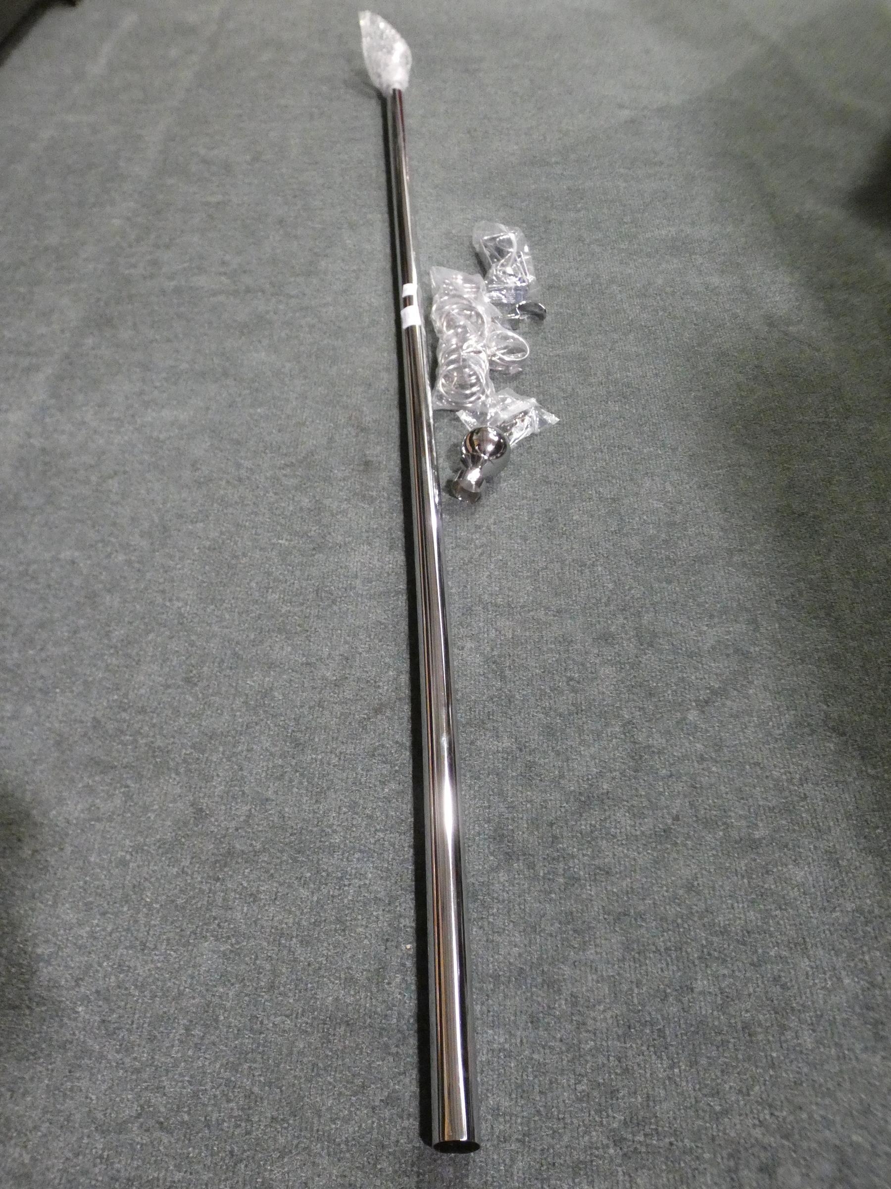 A chrome curtain pole and curtain hoops, 157cm long * this l...