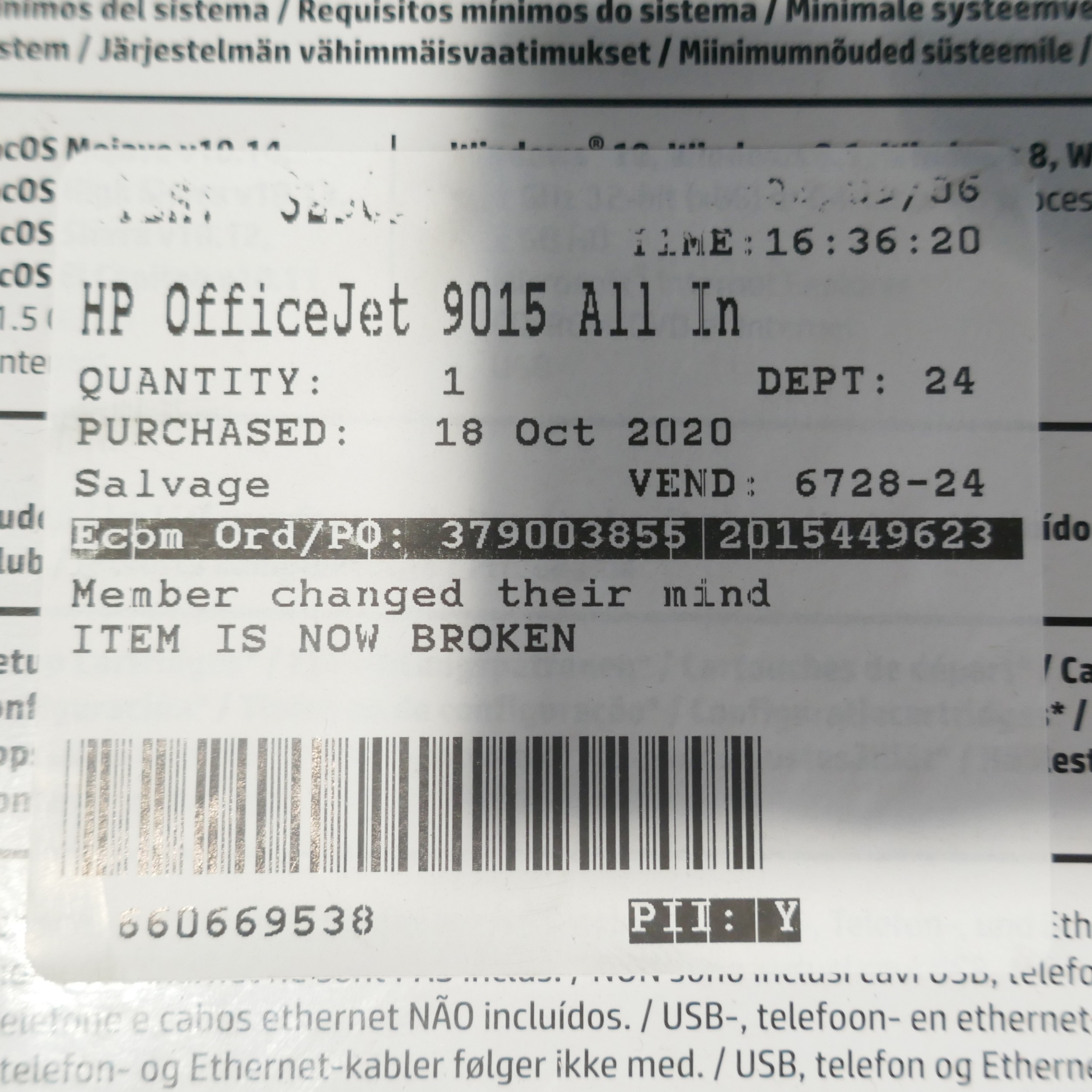 HP OfficeJet Pro printer 9015 , original RRP £116.66 + VAT (372-144) *This lot is subject to VAT