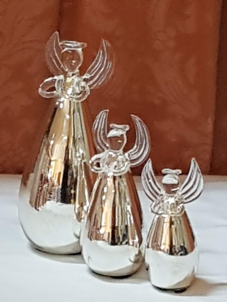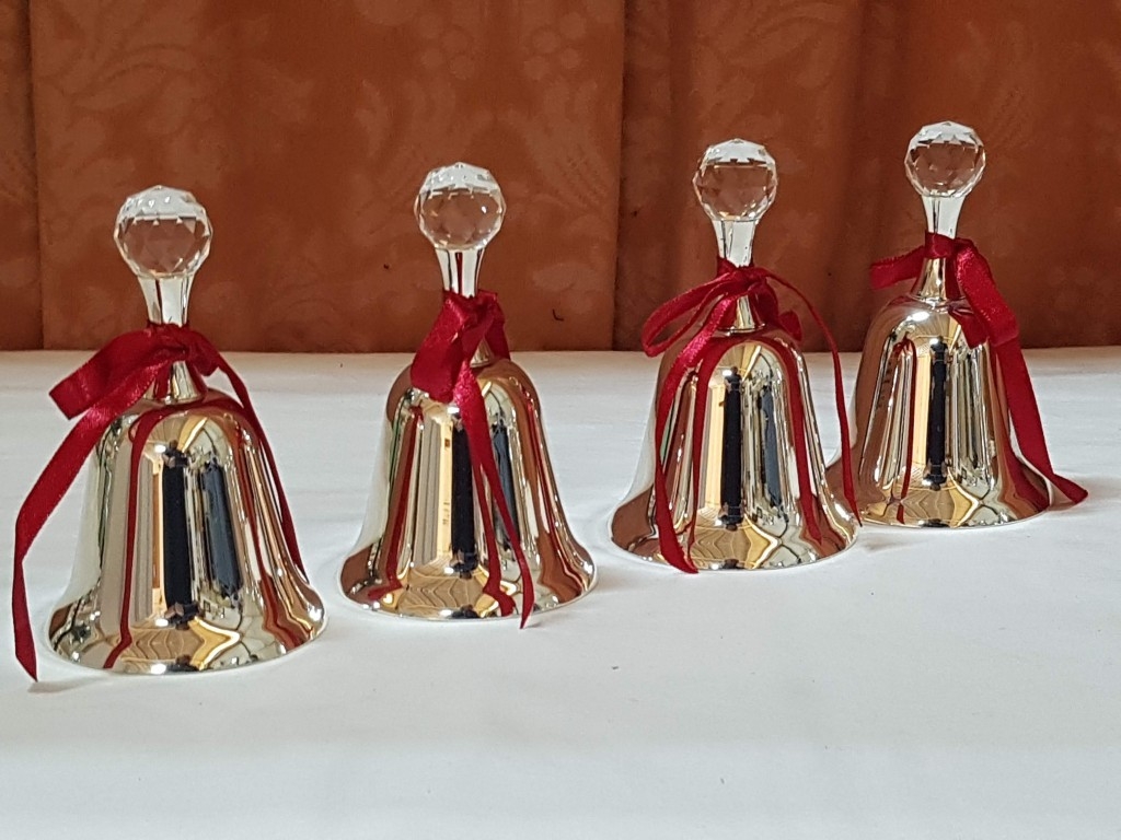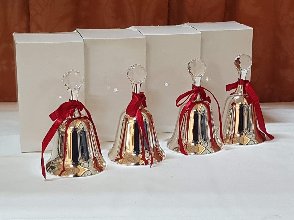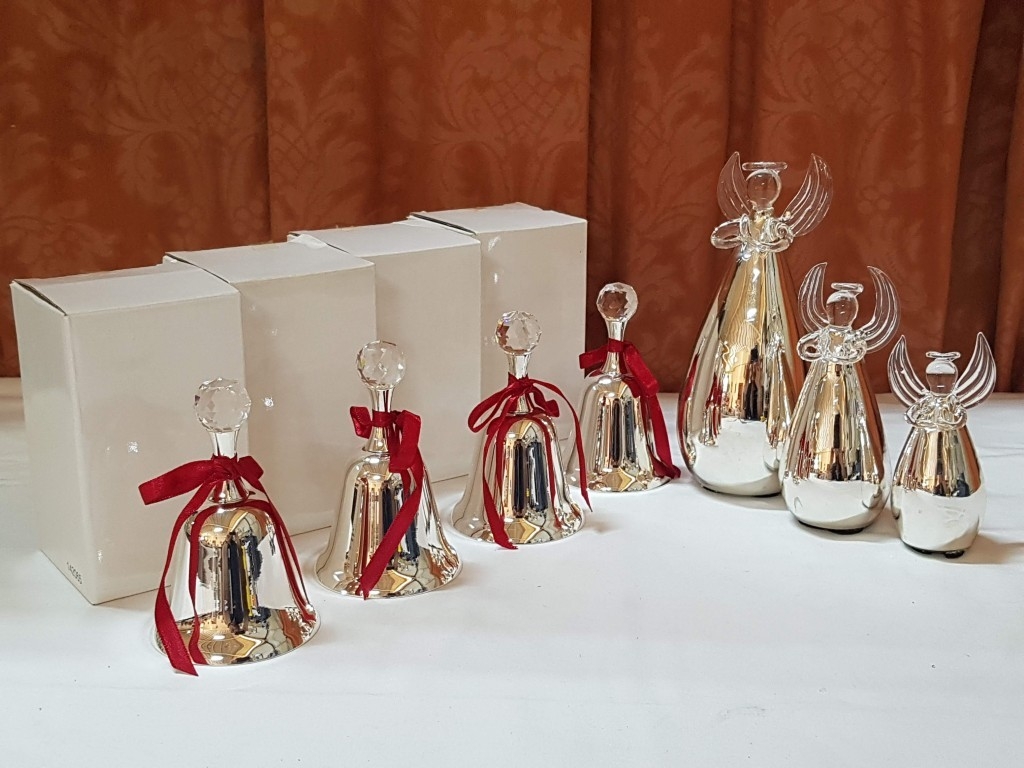 Christmas Ornaments in Silver Tone; 3x Angels (Approx. H:17cm/ H: 13cm/ H: 11cm) and 4x Bells with Crystal Ball on Handles (Approx. H: 10.5cm Each). (7)