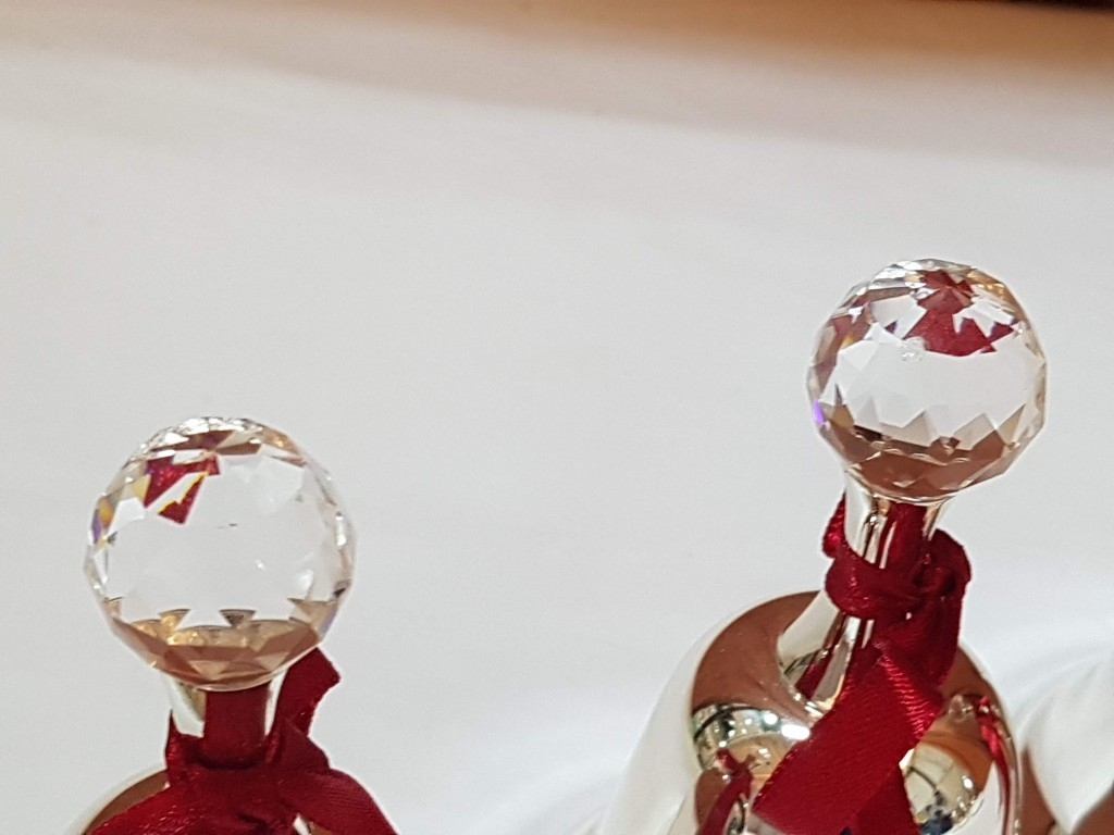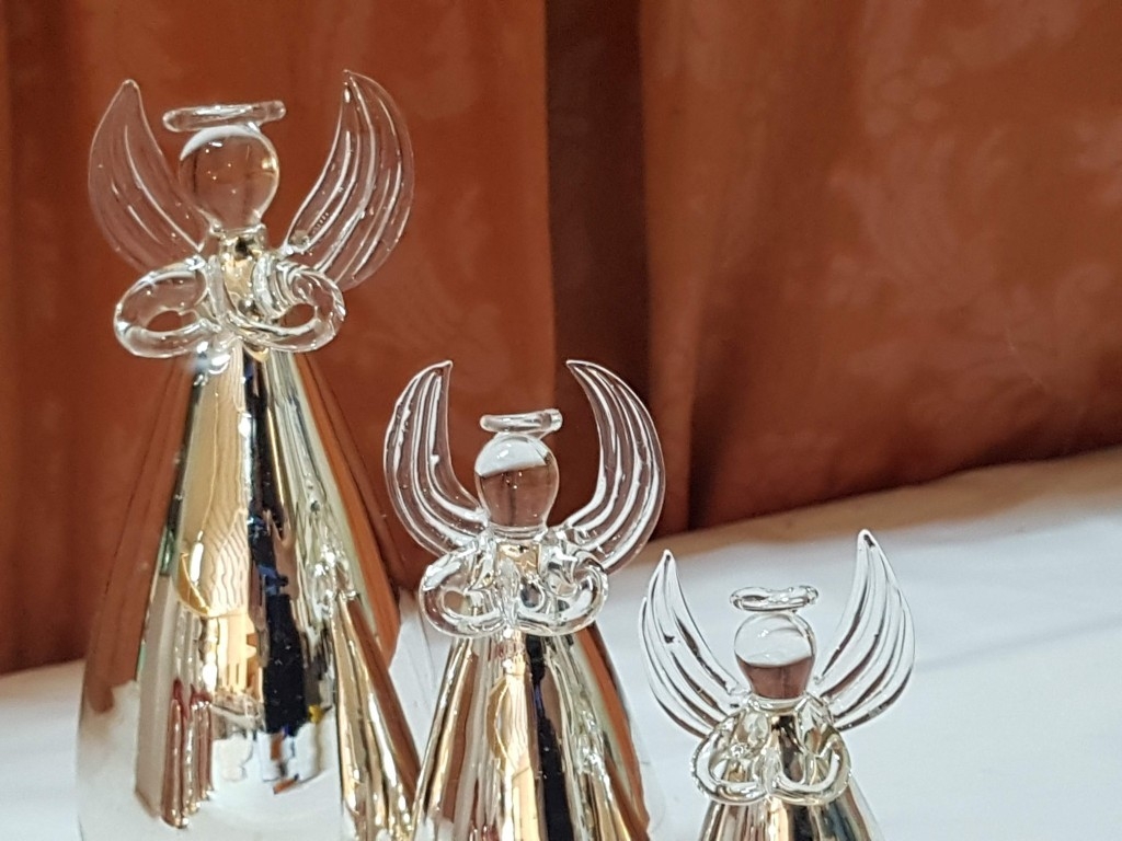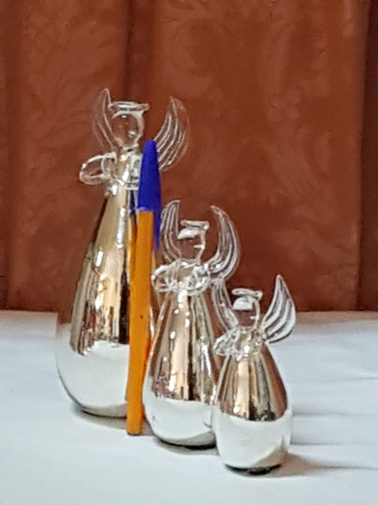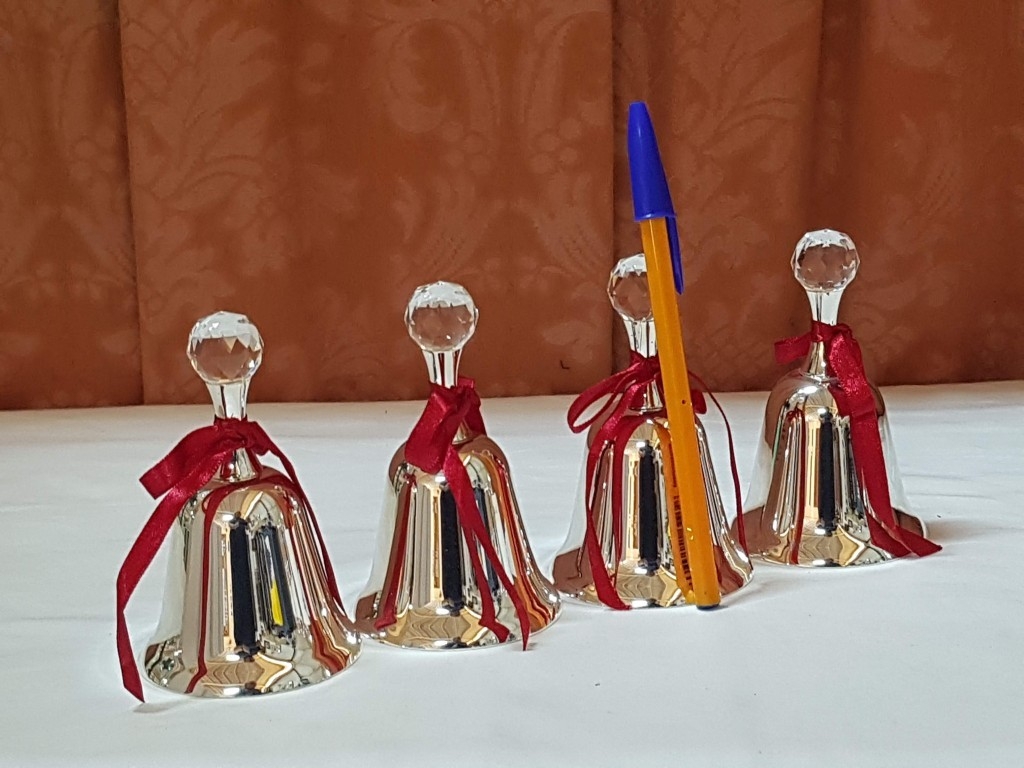Christmas Ornaments in Silver Tone; 3x Angels (Approx. H:17cm/ H: 13cm/ H: 11cm) and 4x Bells with Crystal Ball on Handles (Approx. H: 10.5cm Each). (7)