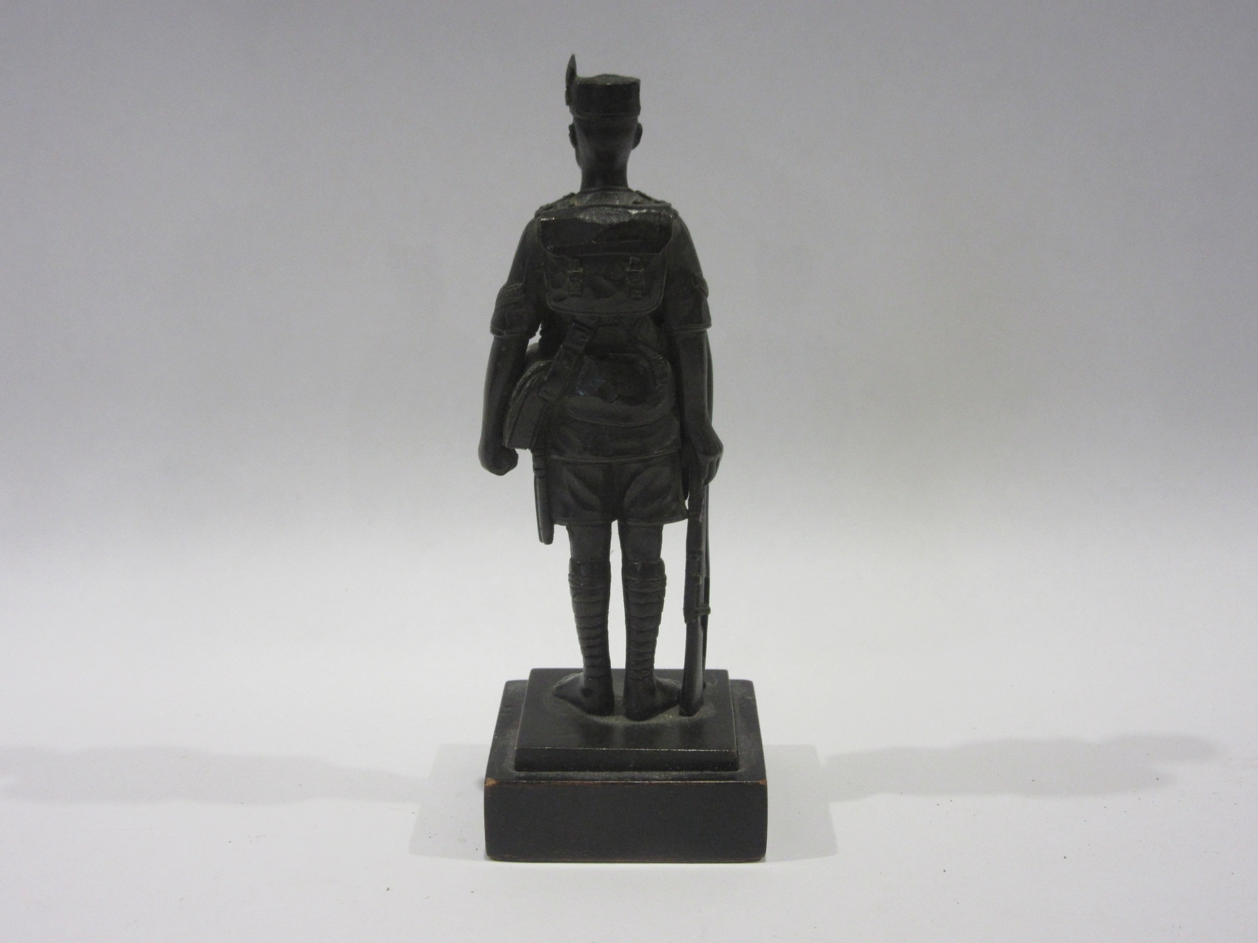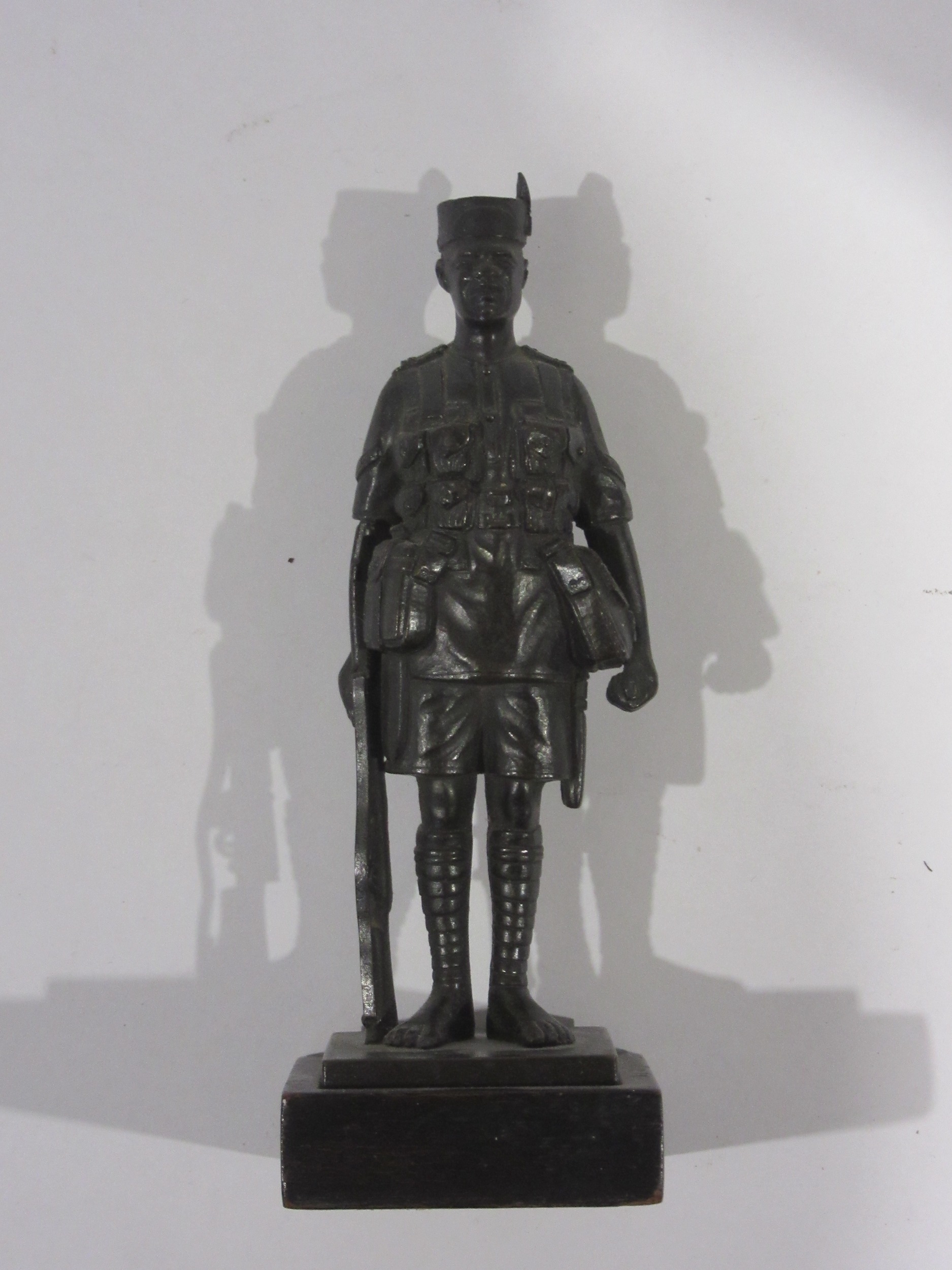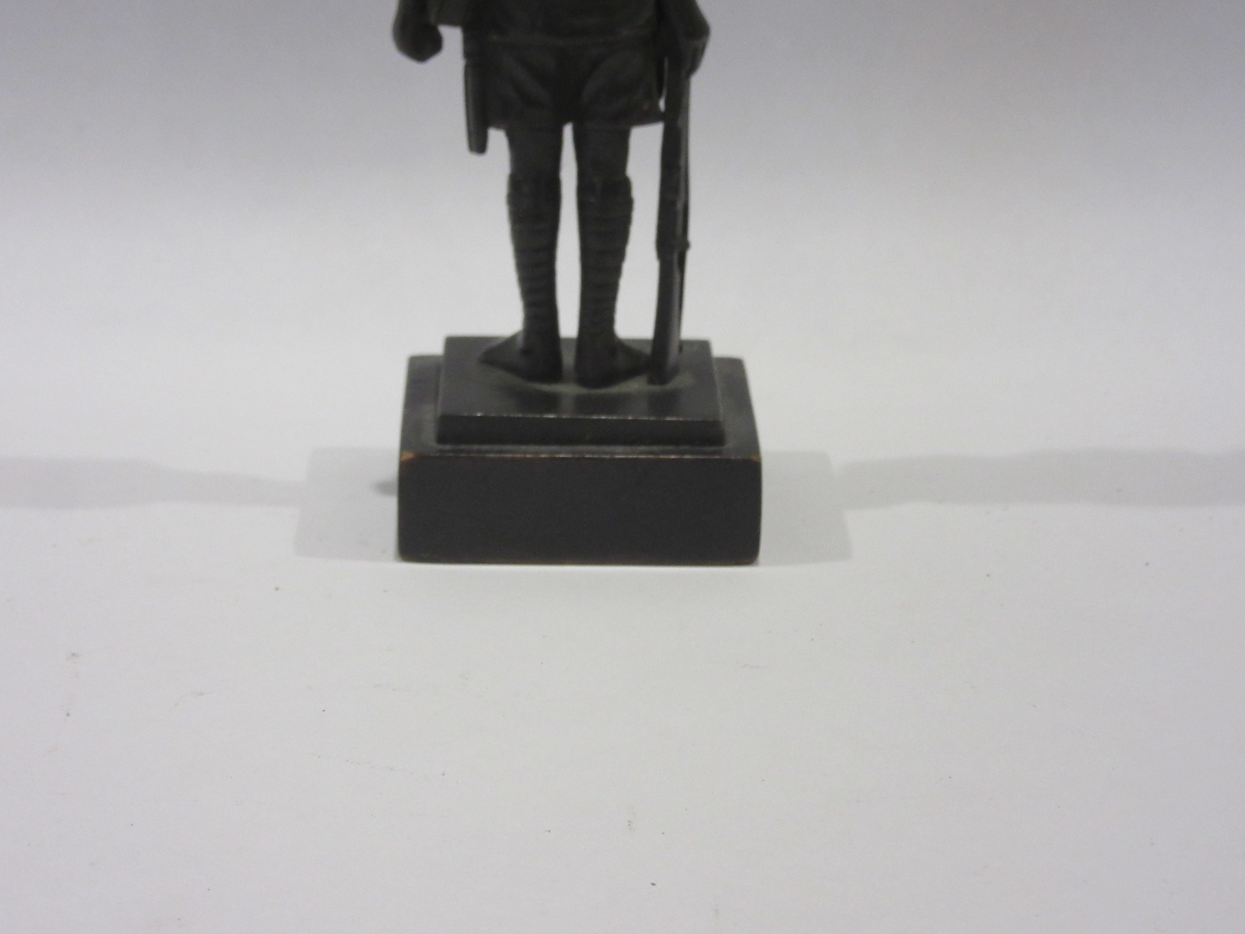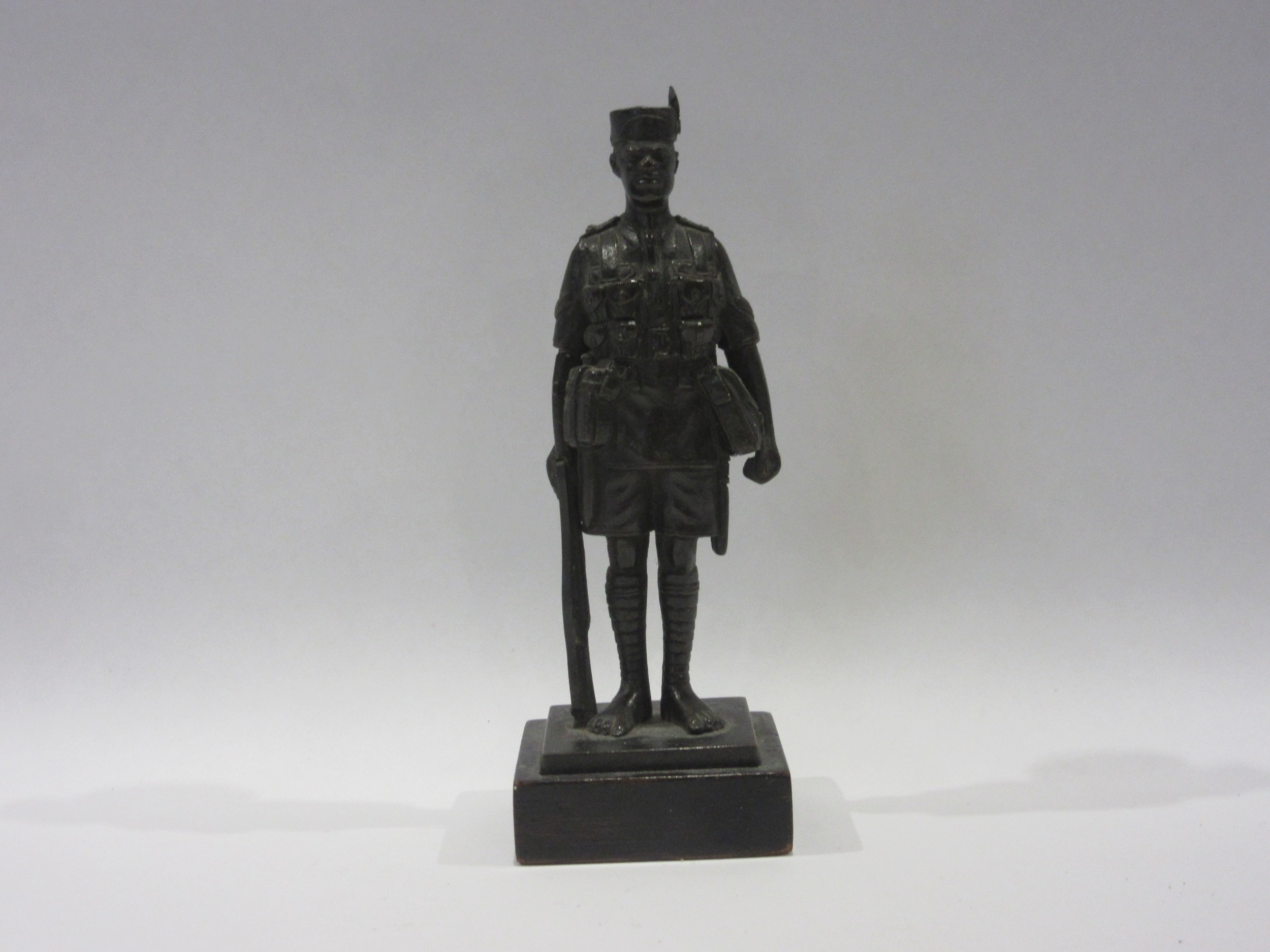 A Goldsmiths & Silversmiths Company bronze statuette of an Askari of the 1st (Central Africa) Battalion, King's African Rifles, 13cm tall