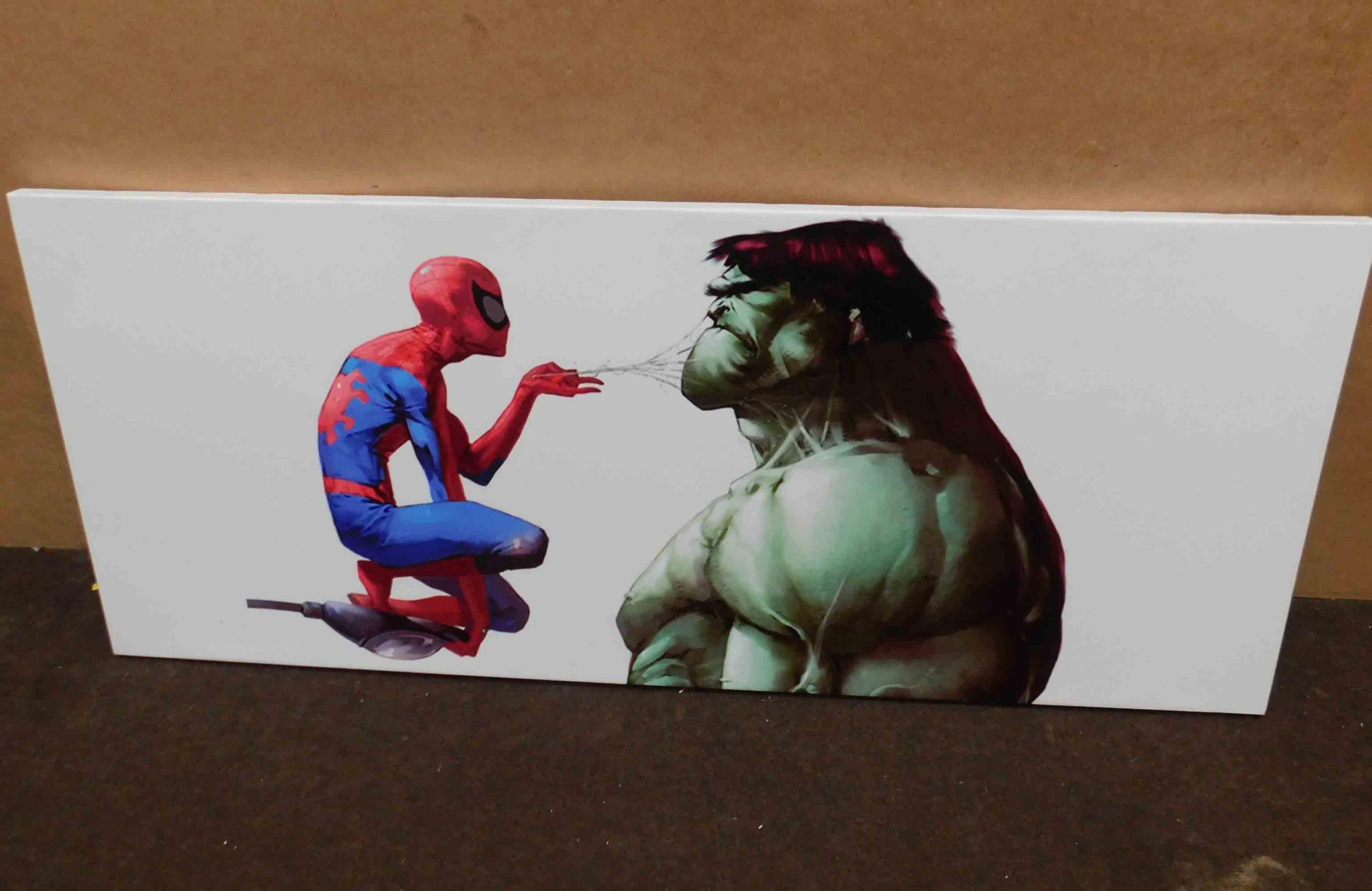 Large Spiderman and Hulk Marvel canvas - approx. 20" x 47.5"