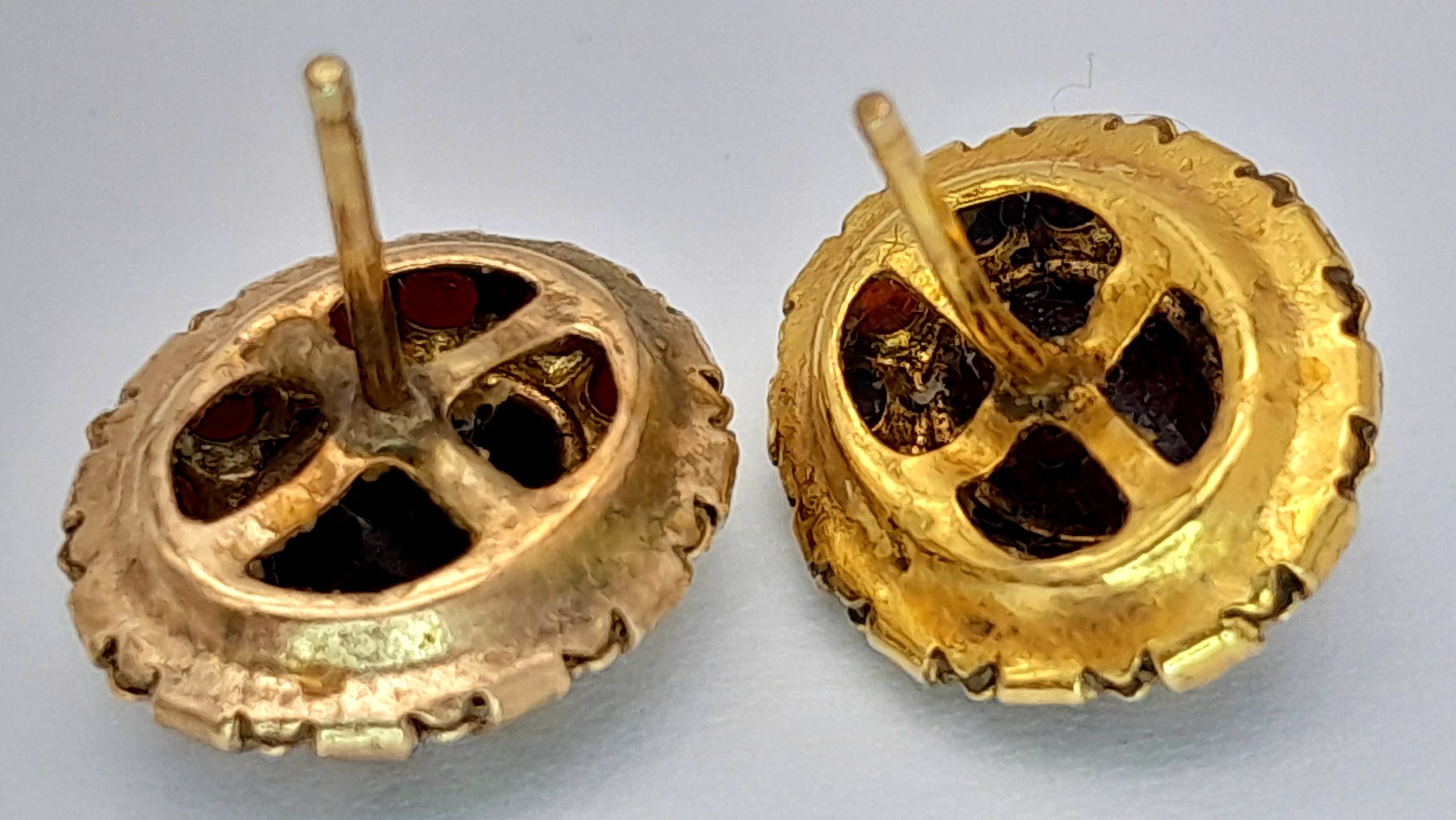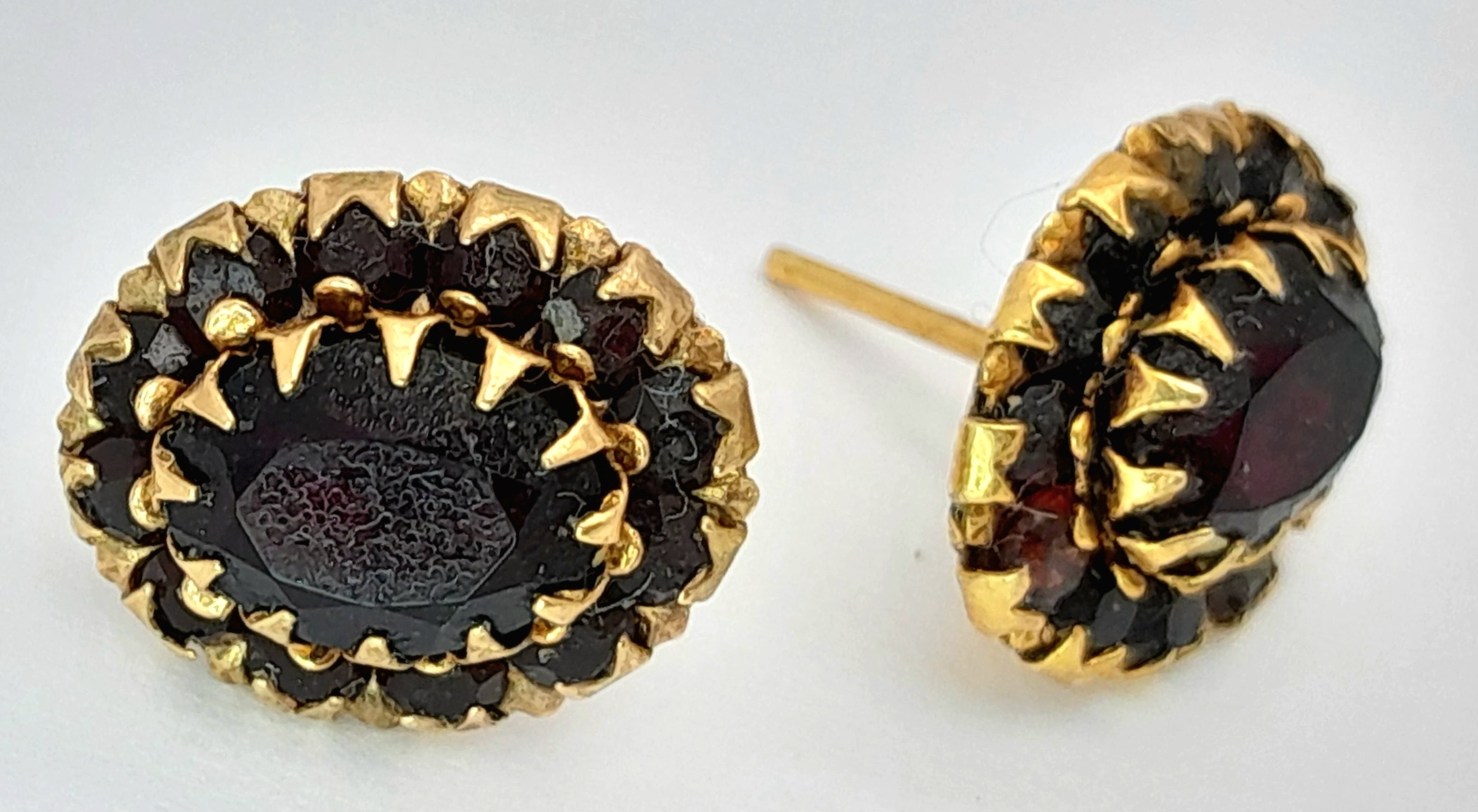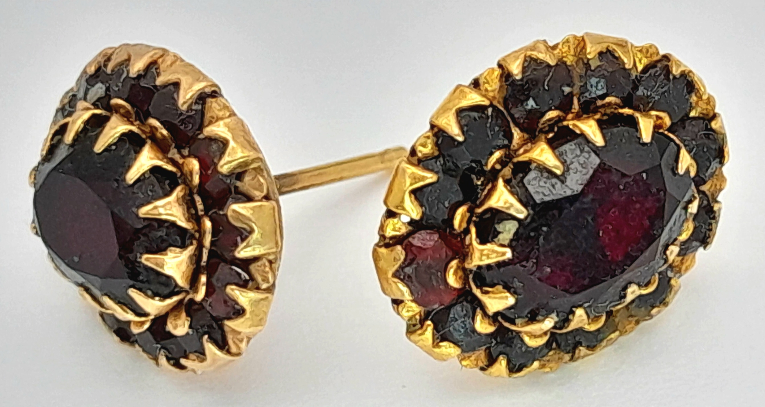 A Pair of 18K Gold (tests as) Garnet Cluster Stud Earrings. 1.95g.