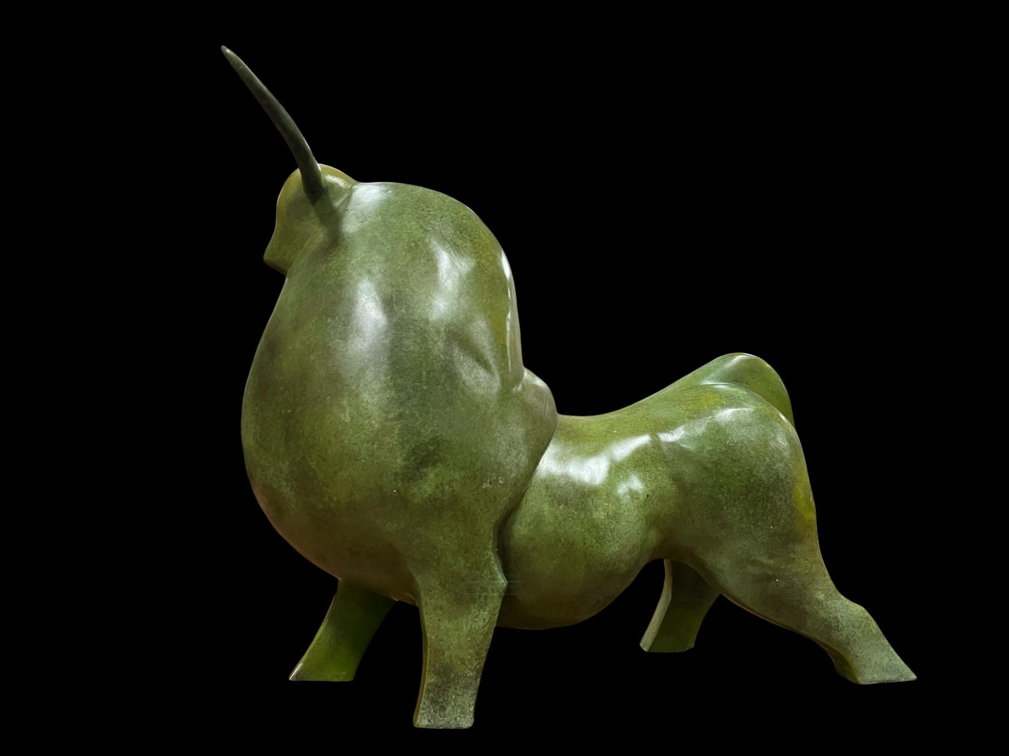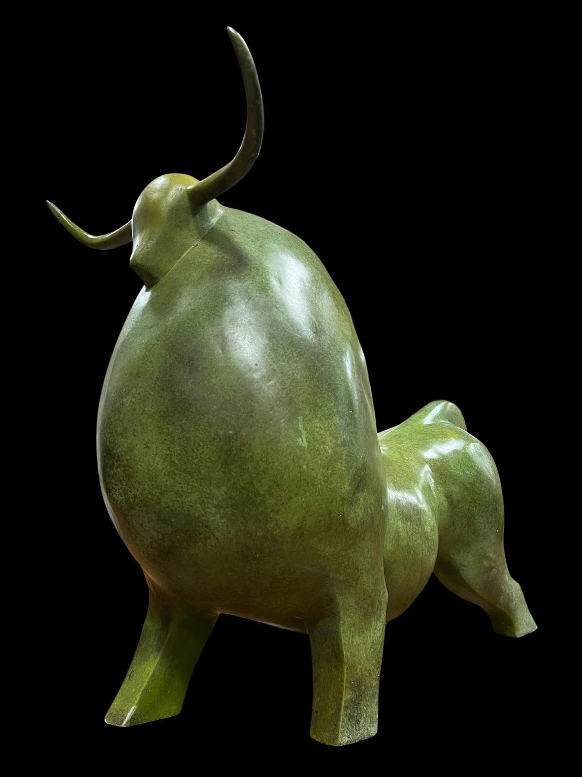 after FERNANDO BOTERO An abstract bronze bull sculpture inscribed 'The Bull' 58cm (h) x 67cm (w)
