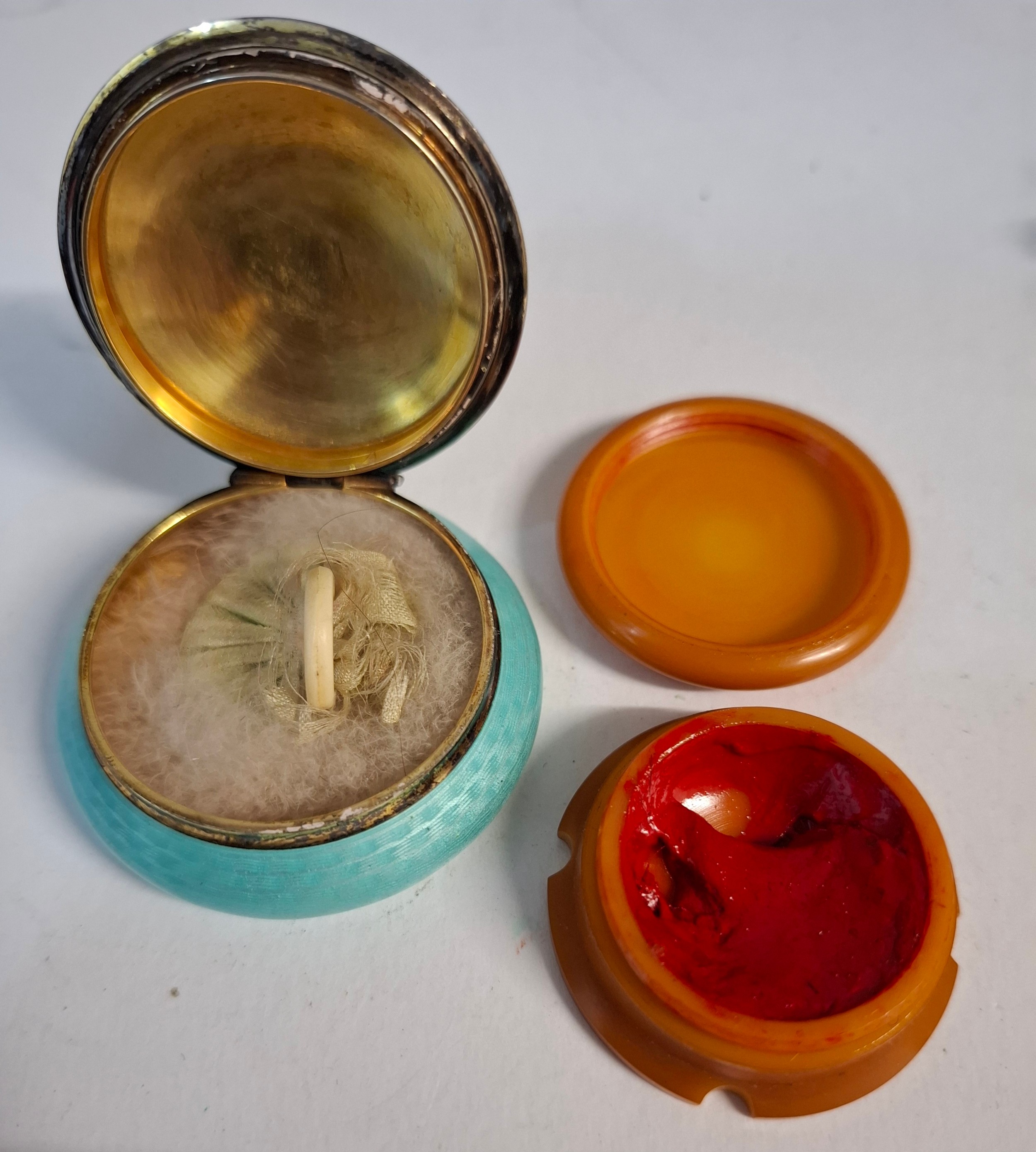 There is tarnishing to the metalwork, some small marks to the enamel. No apparent serious damage.