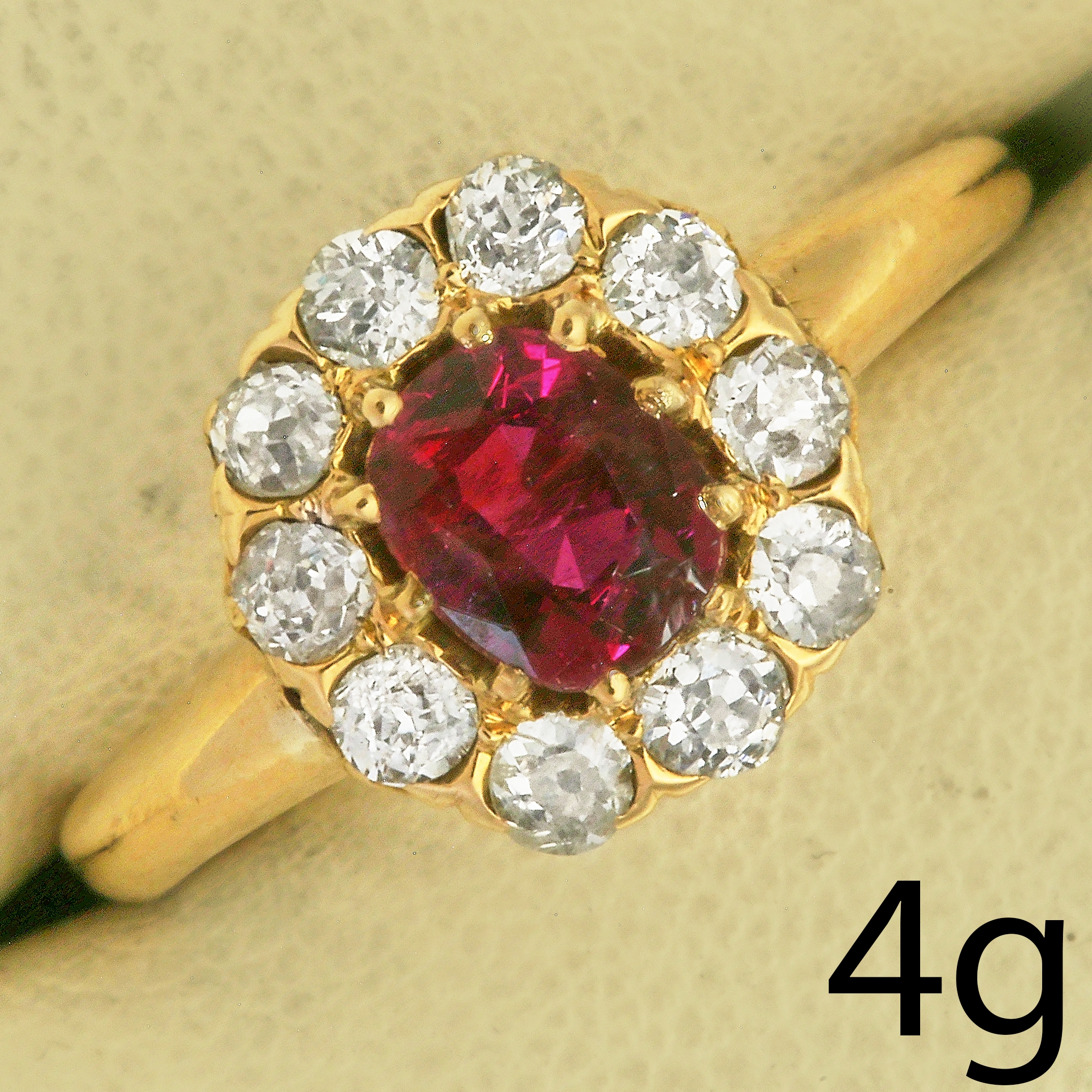 ANTIQUE RUBY AND DIAMOND CLUSTER RING