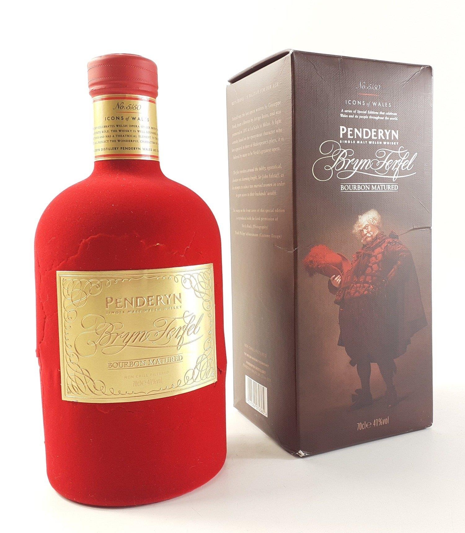 PENDERYN BRYN TERFEL Bourbon Matured Welsh Single Malt 70cl in Icons of Wales 5/50 box. Minor wear noted to internal soft red slip
