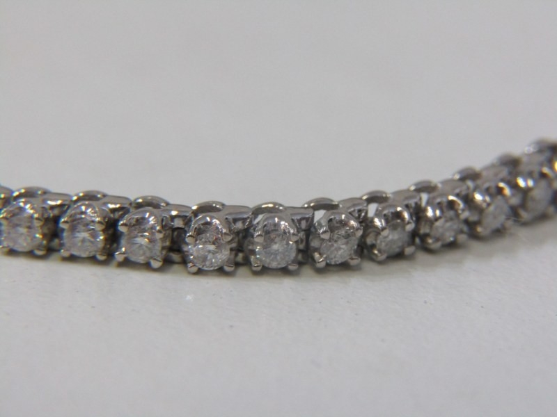 Lot 30: The bracelet is in good condition throughout, the diamonds are well matched of even colour and clarity, the clasp works well.