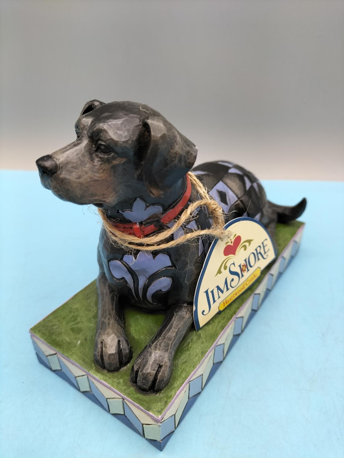 Boxed Jim Shore Heartwood Creek 'Onyx' Black Labrador Figure. 10cm x 14.5cm. Nip to Ear.
