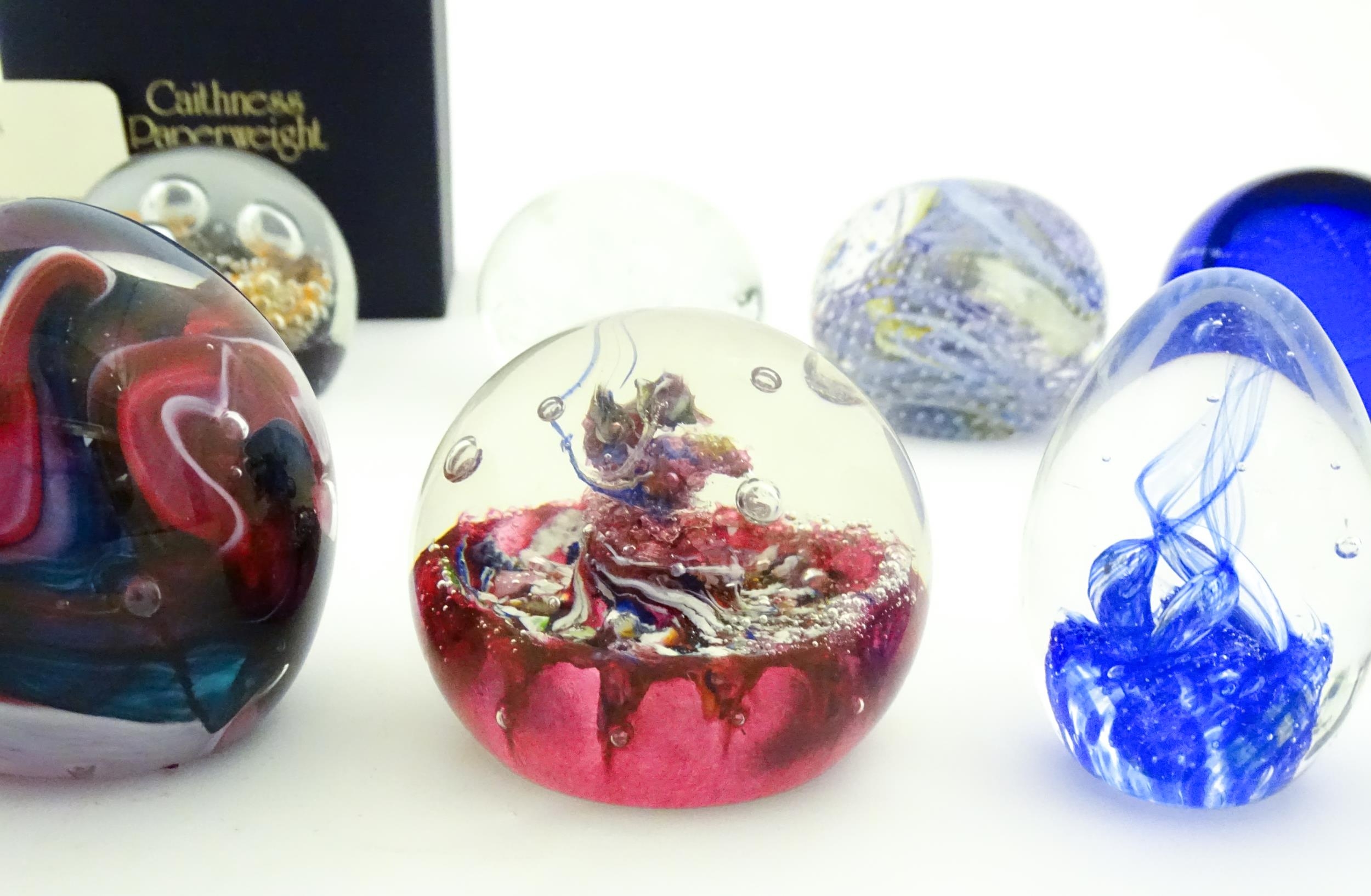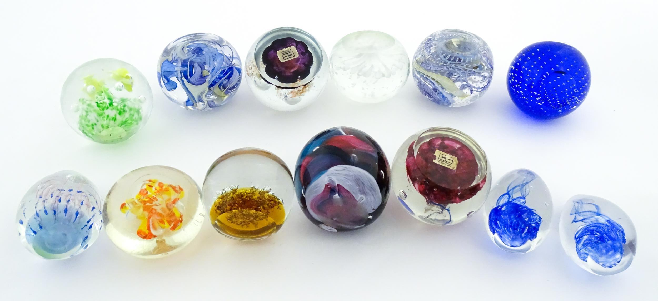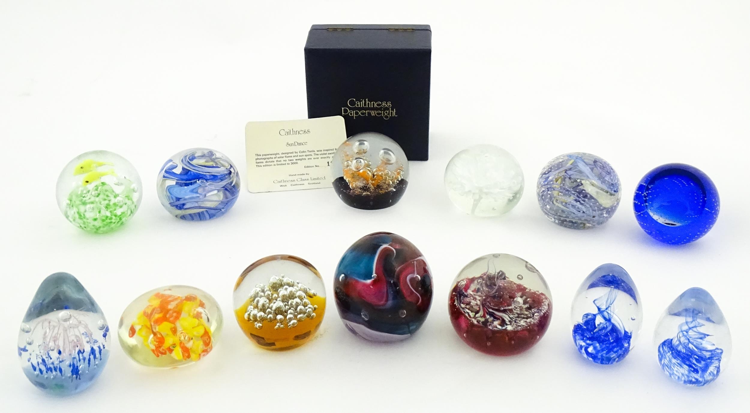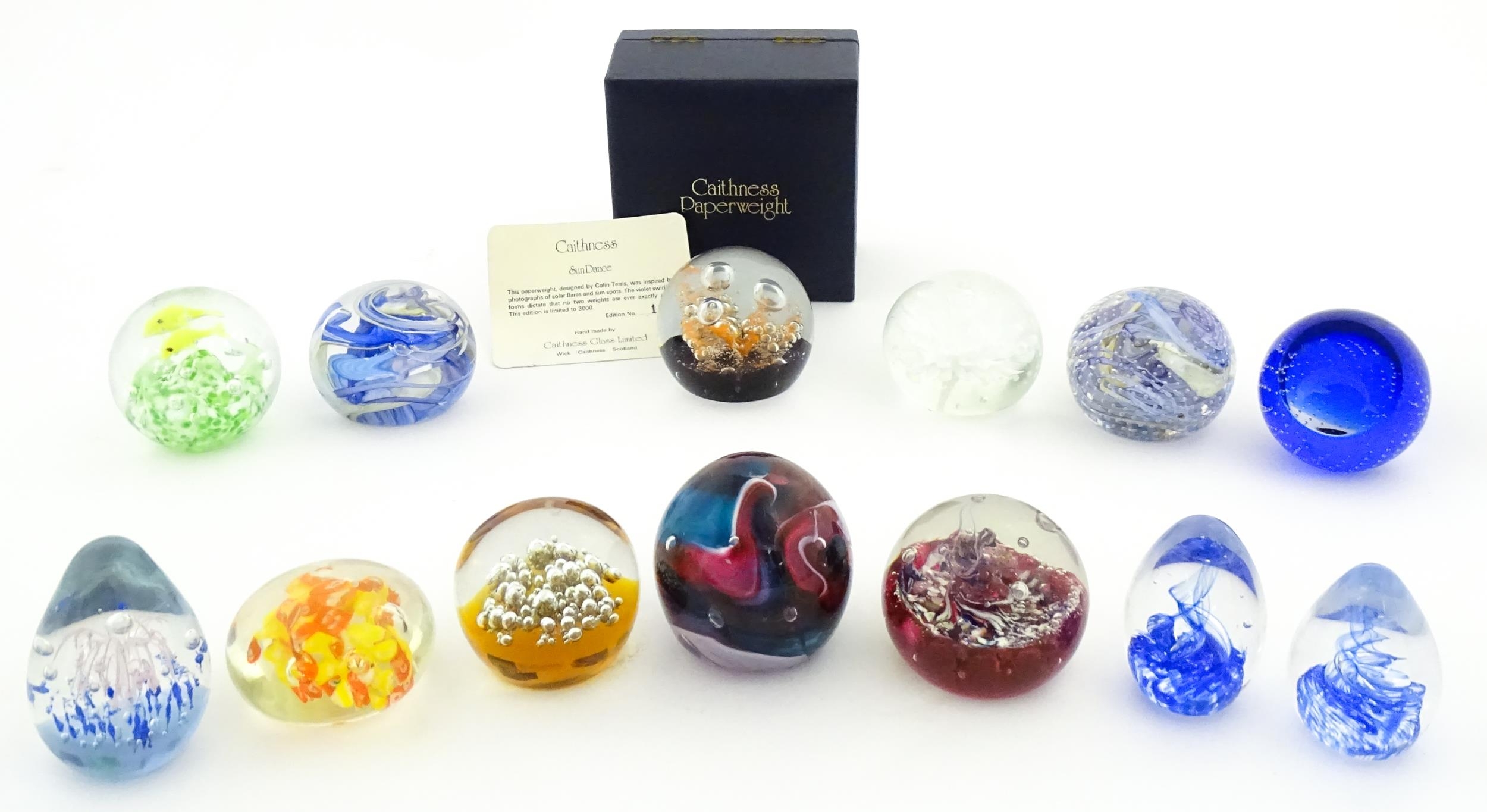A quantity of assorted collector's paperweights to include Caithness Sundance, etc. Largest approx. 3 1/4" wide (13)