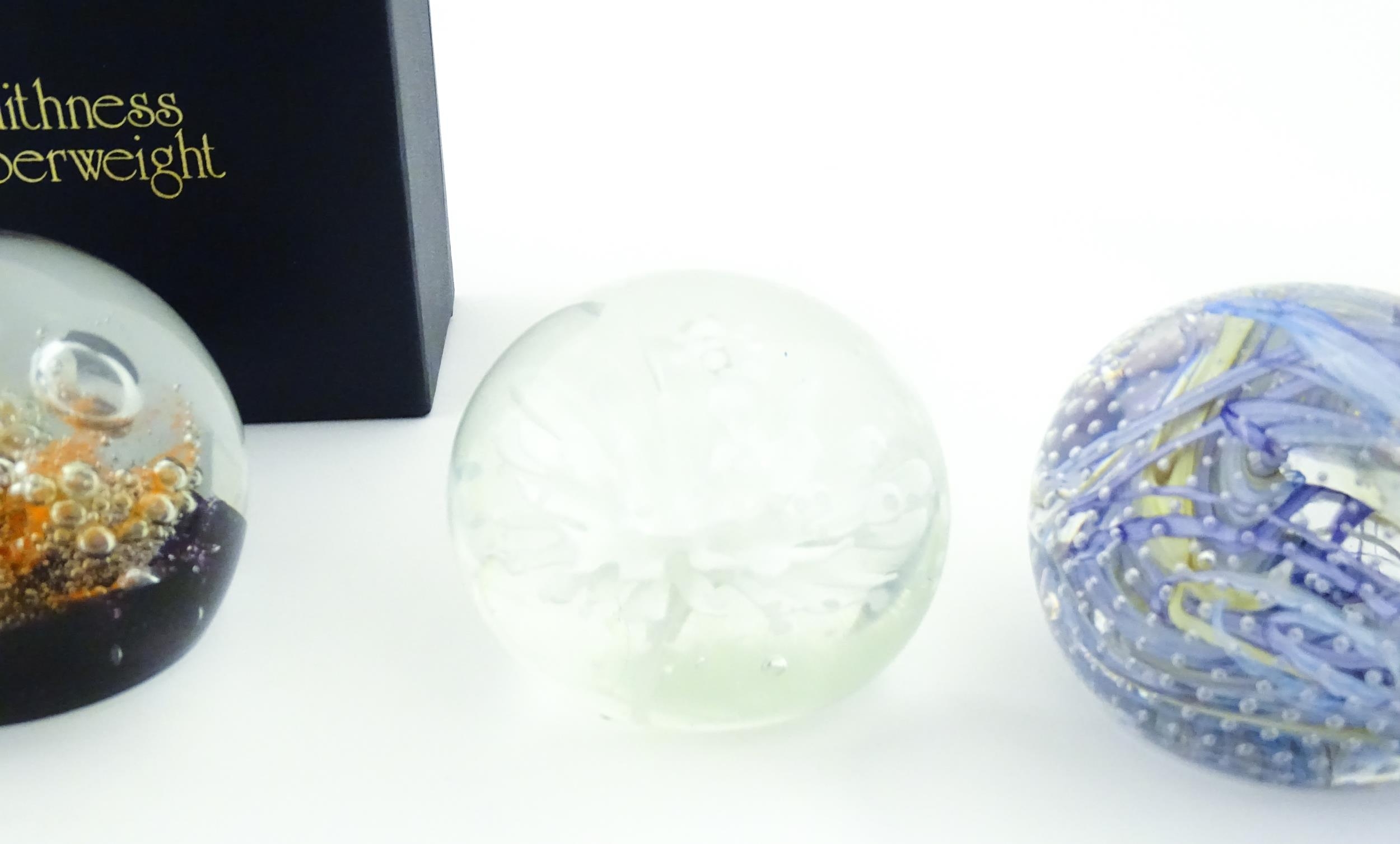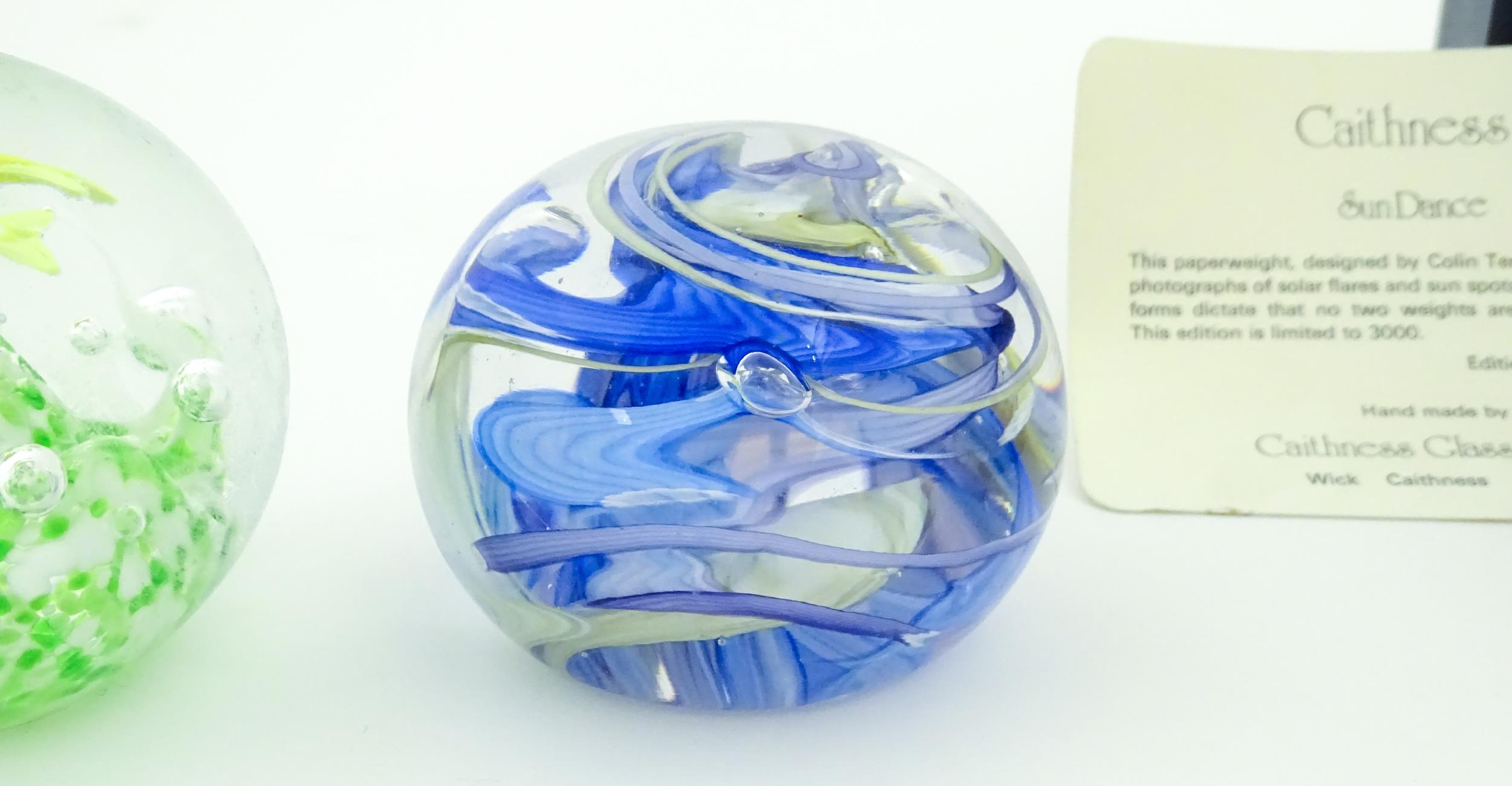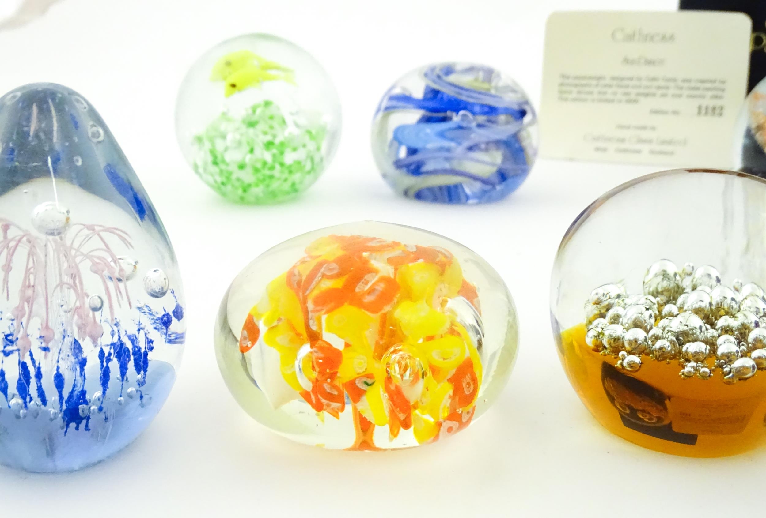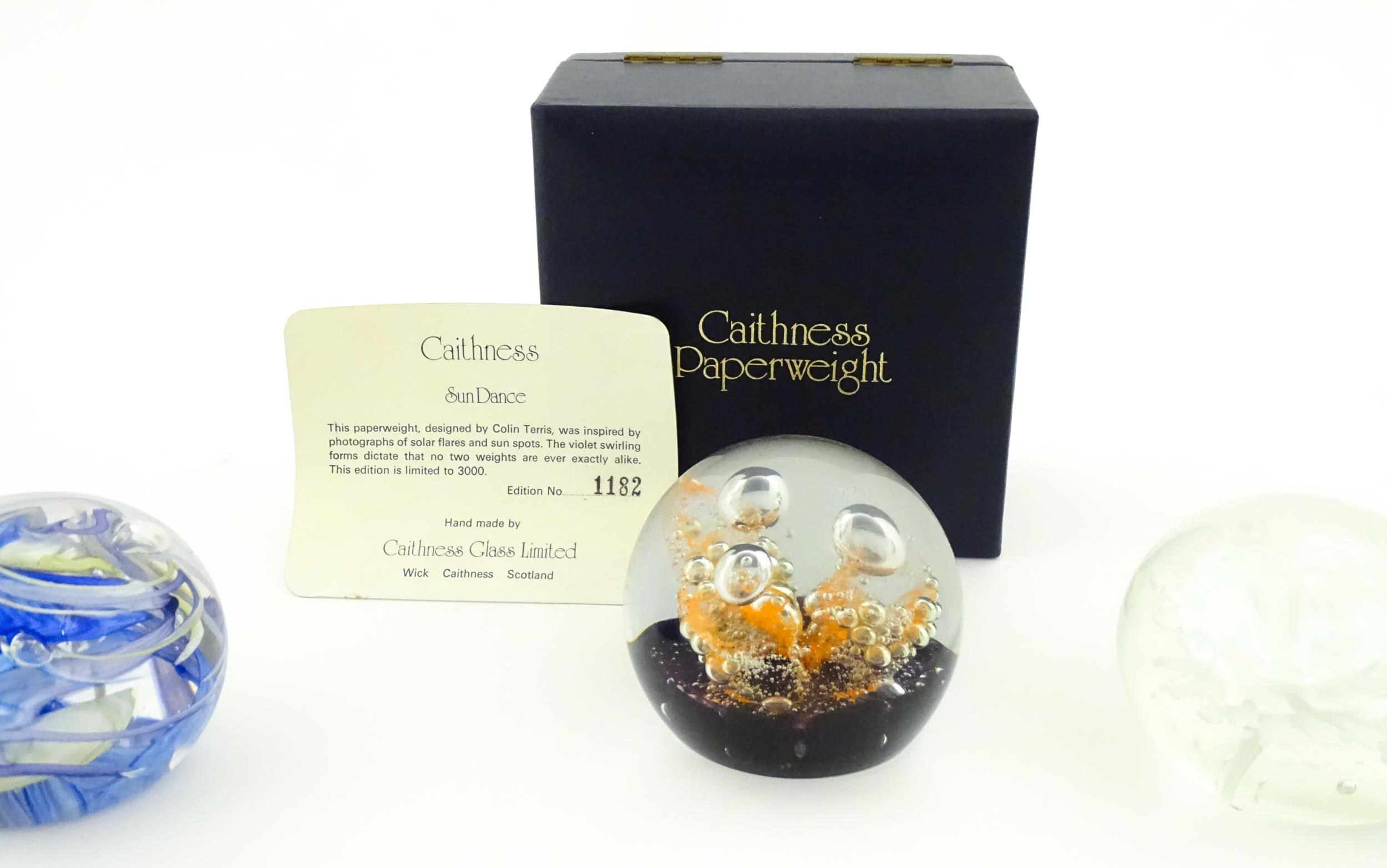 A quantity of assorted collector's paperweights to include Caithness Sundance, etc. Largest approx. 3 1/4" wide (13)