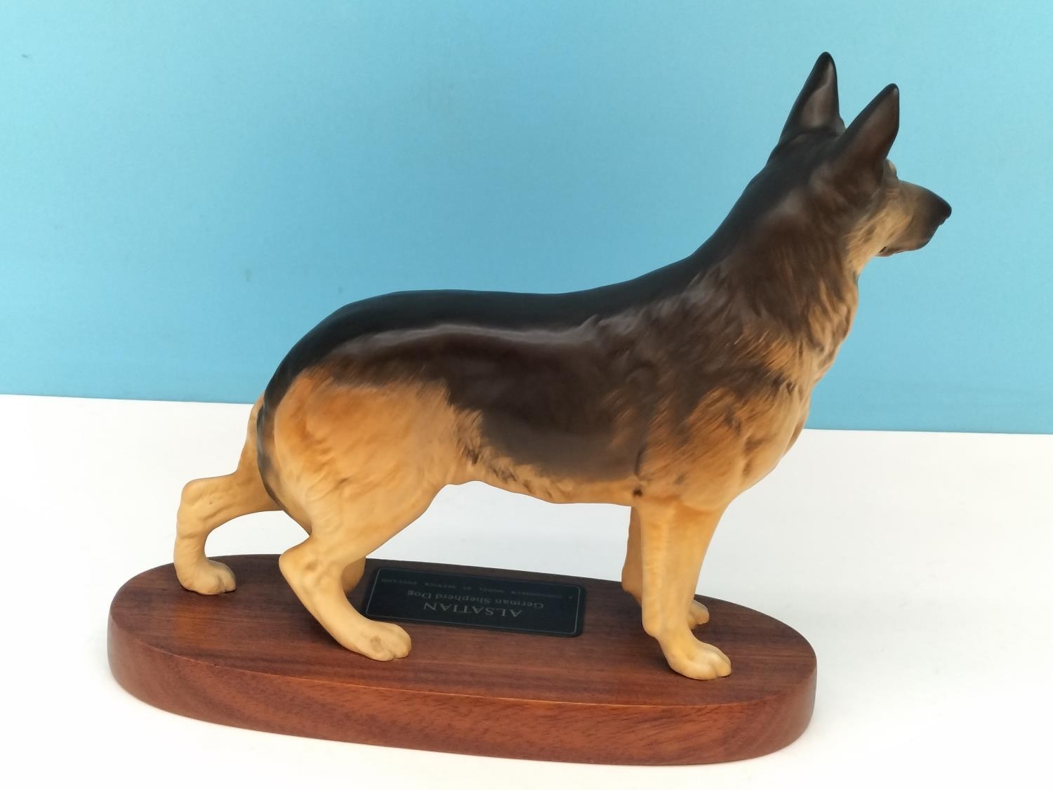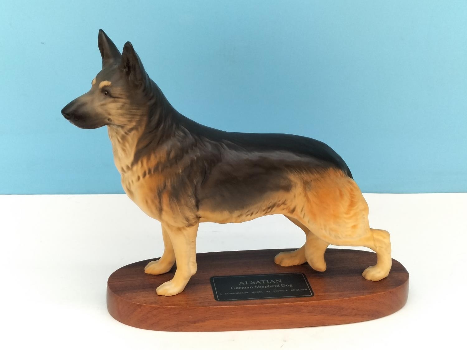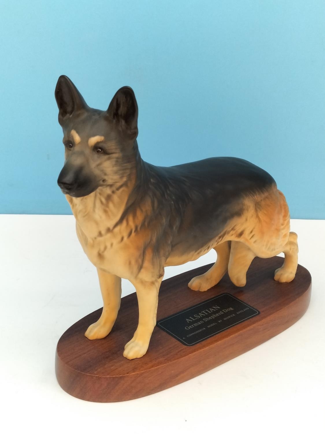 Beswick Connoisseur Alsatian/German Shepherd Dog on Plinth. 22cm High x 24cm.