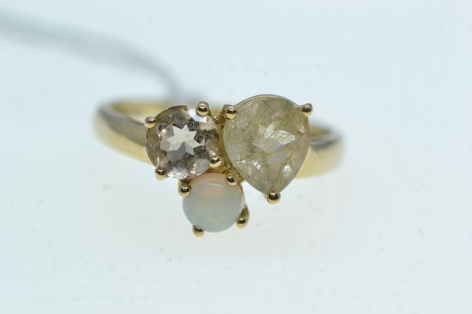 9ct gold & three gem ring, size R, 2.7 grams