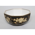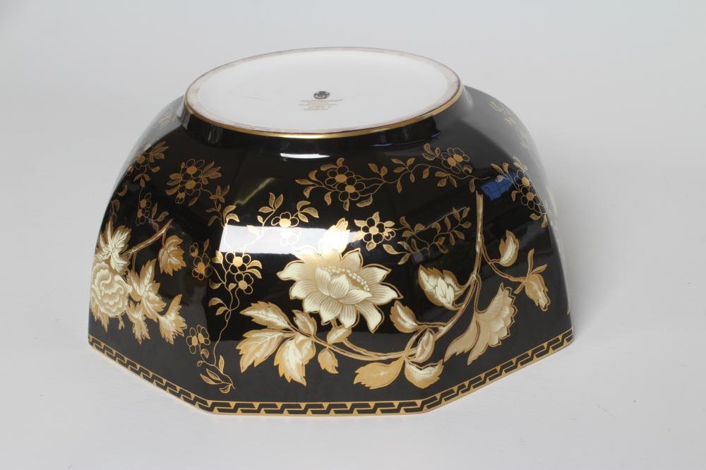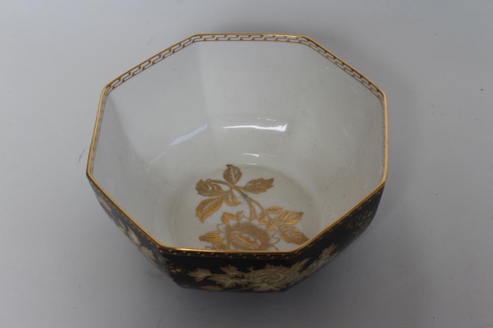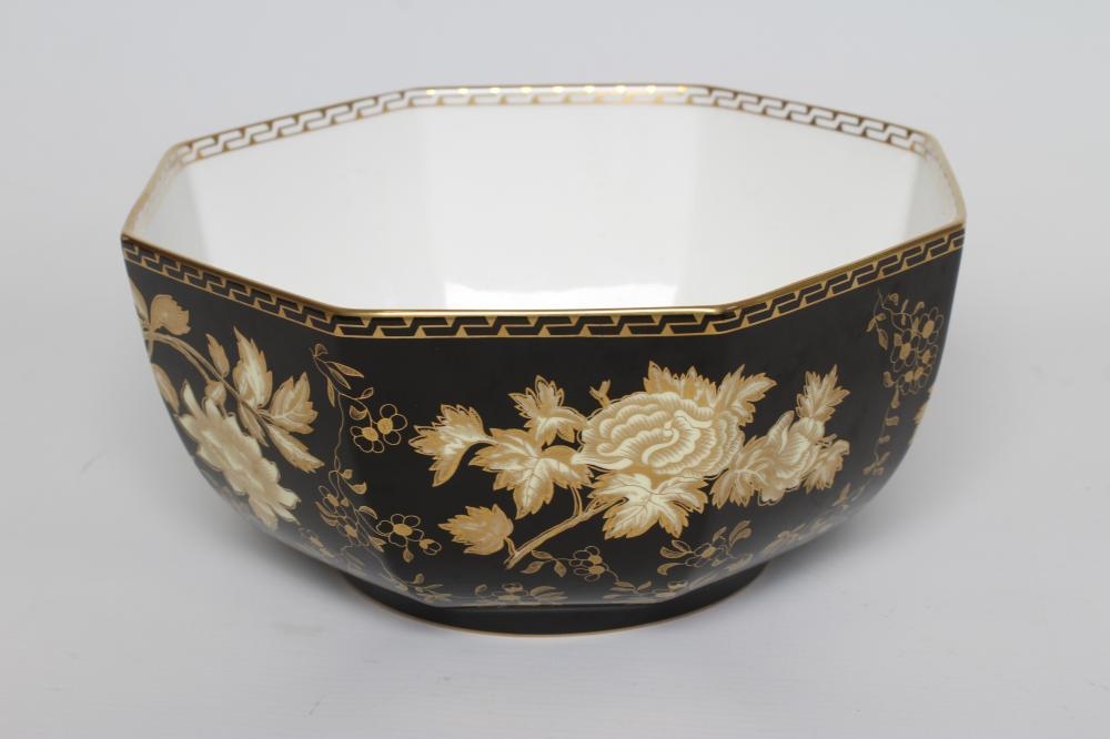 A WEDGWOOD CHINA BOWL of octagonal form, printed in ecru and gilt with the "Black Tonquin" pattern, printed marks, 9" diameter (Est. plus 21% premium inc. VAT)