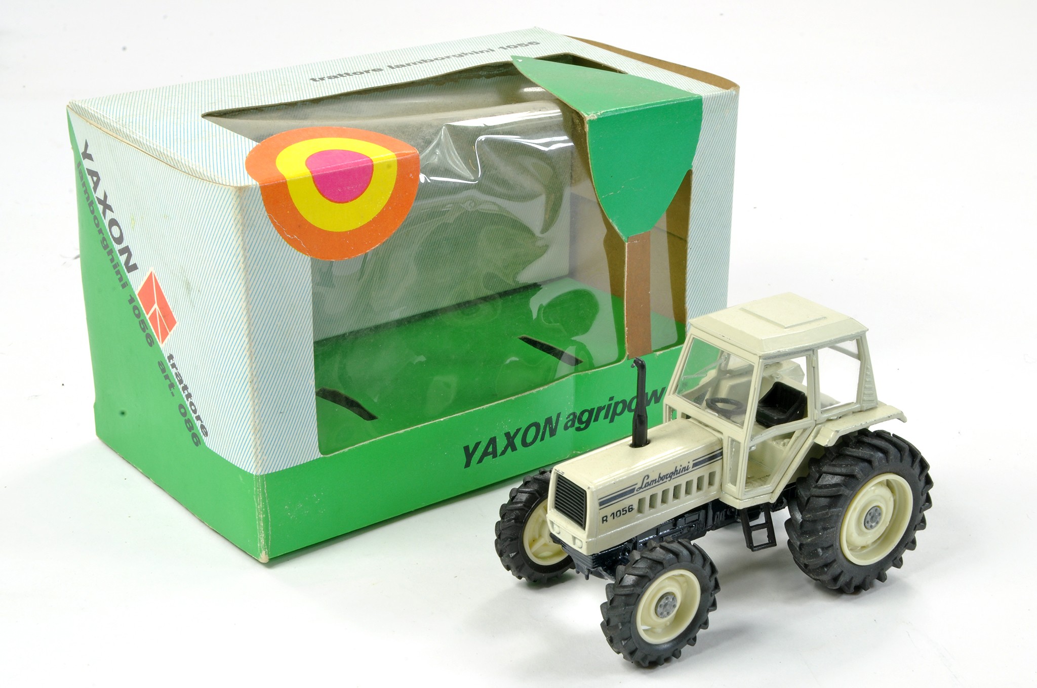 Yaxon 1/43 Model Farm Issue comprising Lamborghini R1056 Tractor. Excellent, no obvious sign of fault in good original box, some minor crushing and storage wear.