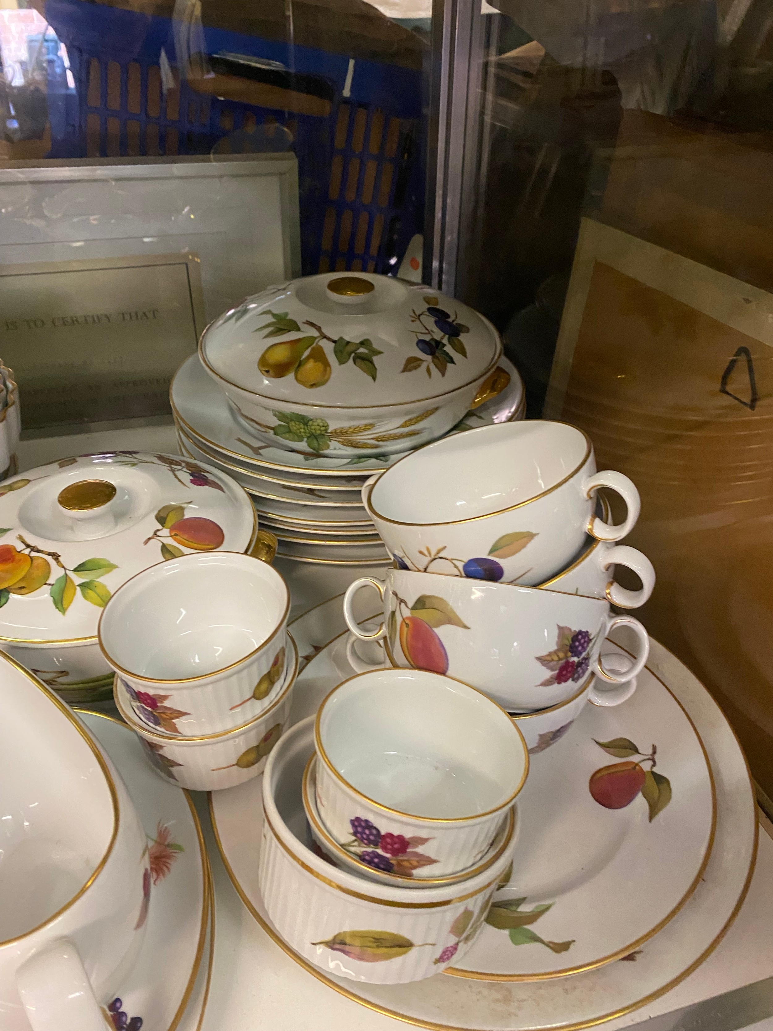 TWO SHELVES OF ROYAL WORCESTER EVESHAM TABLE SERVICE