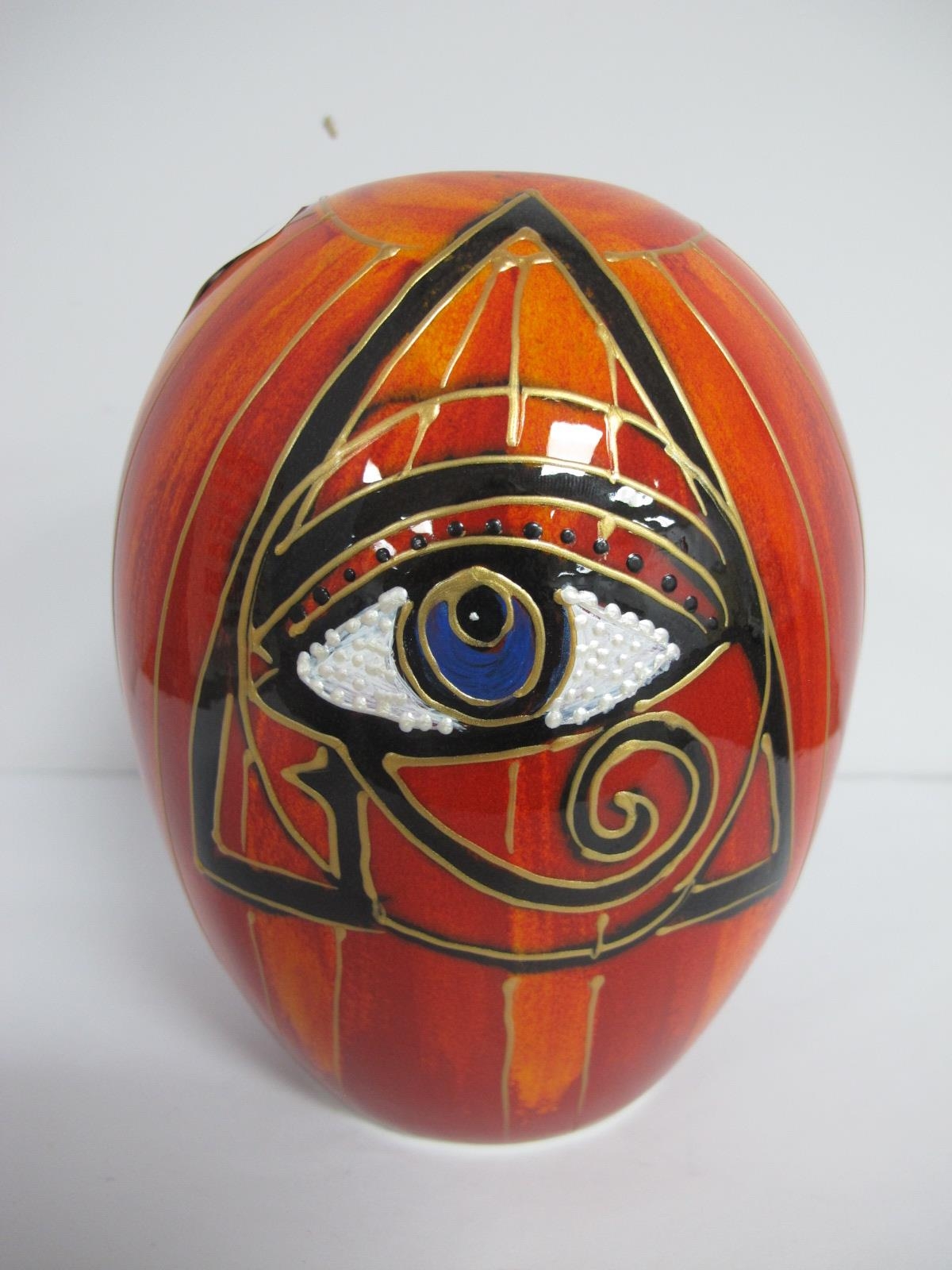 An Anita Harris Egyptian 'Eye of Horus' Delta Vase, gold signed, 14.5cm high.