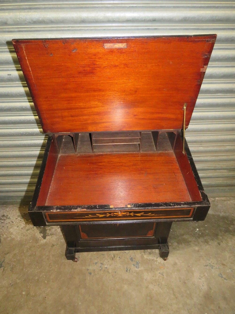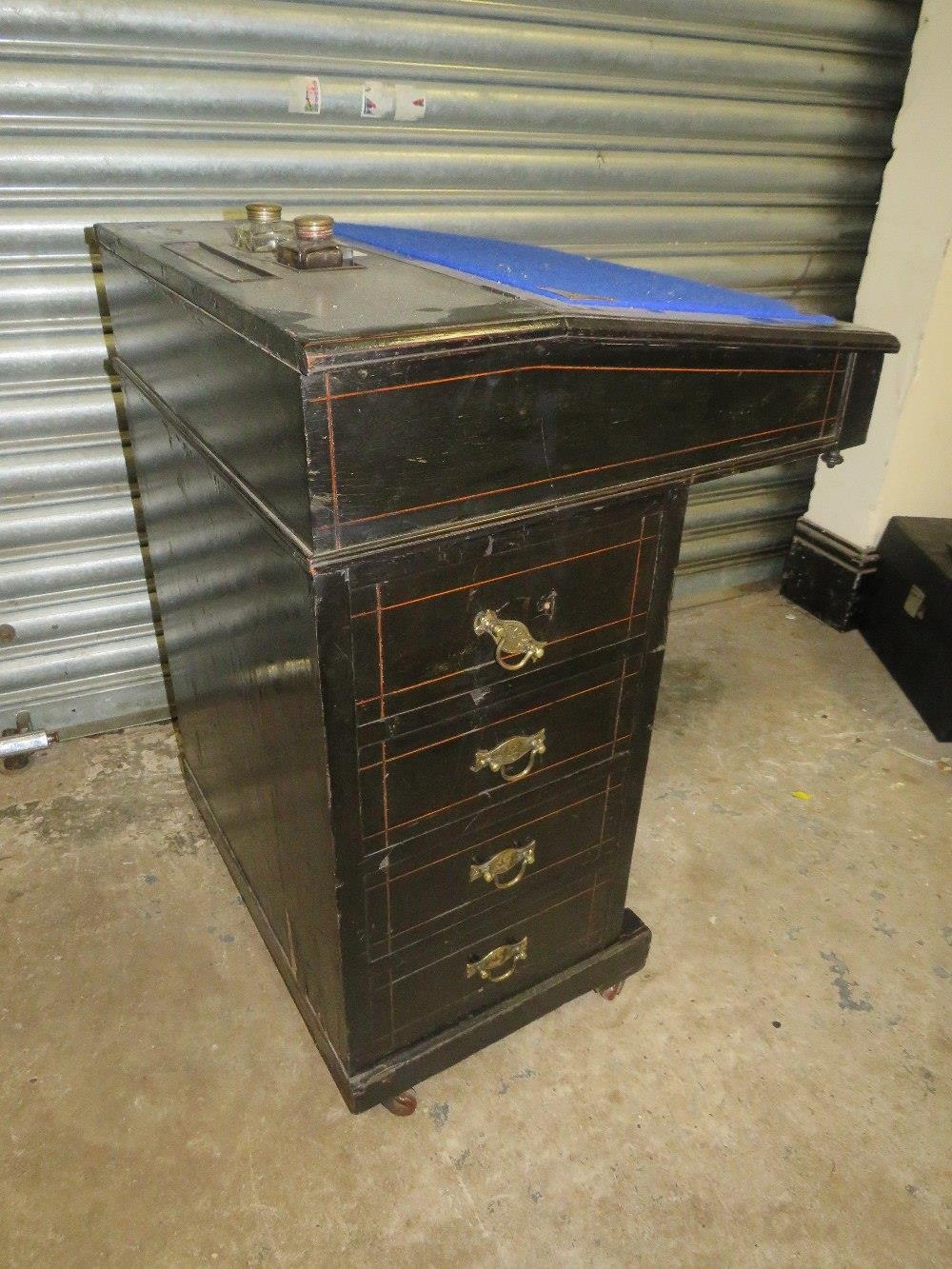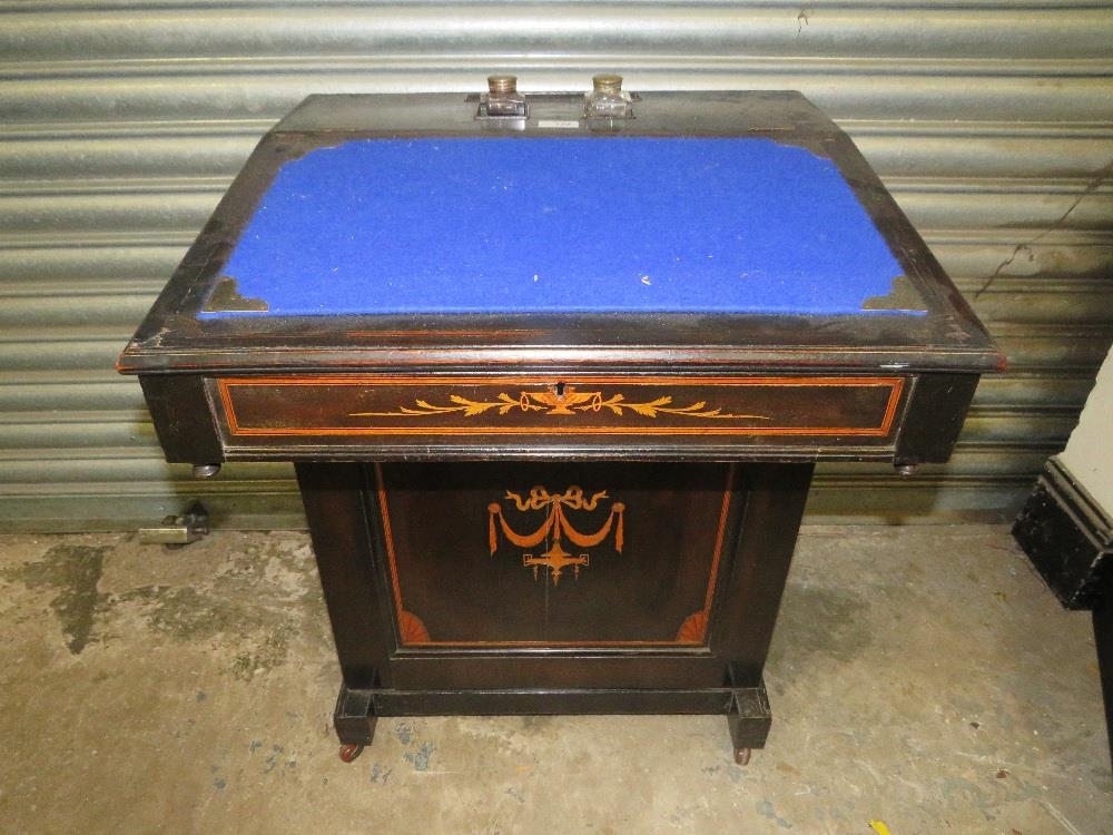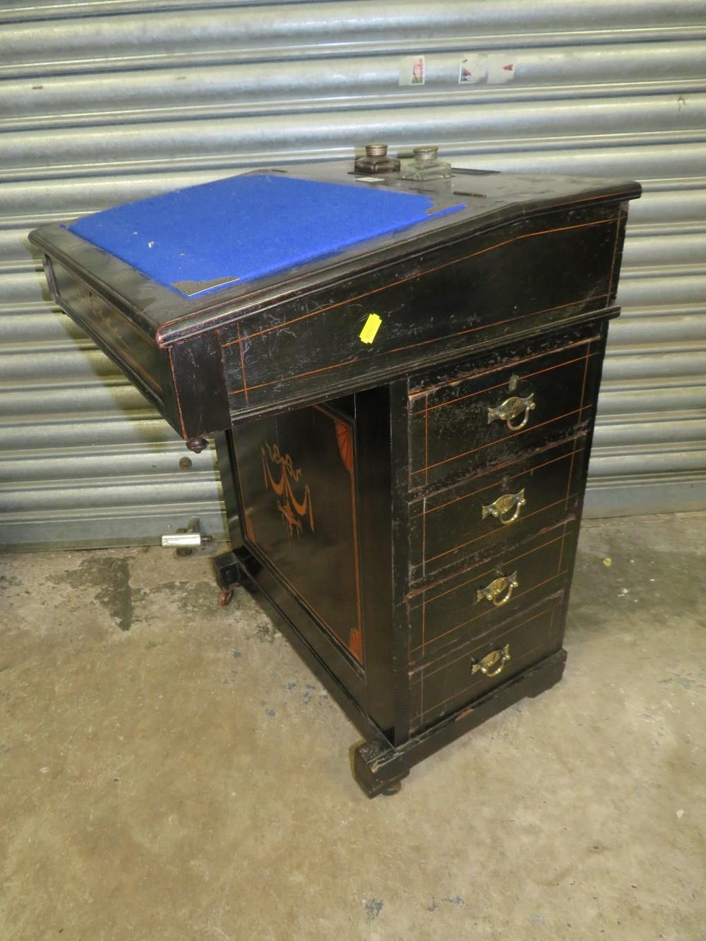 AN EDWARDIAN EBONISED DAVENPORT DESK W-56 CM