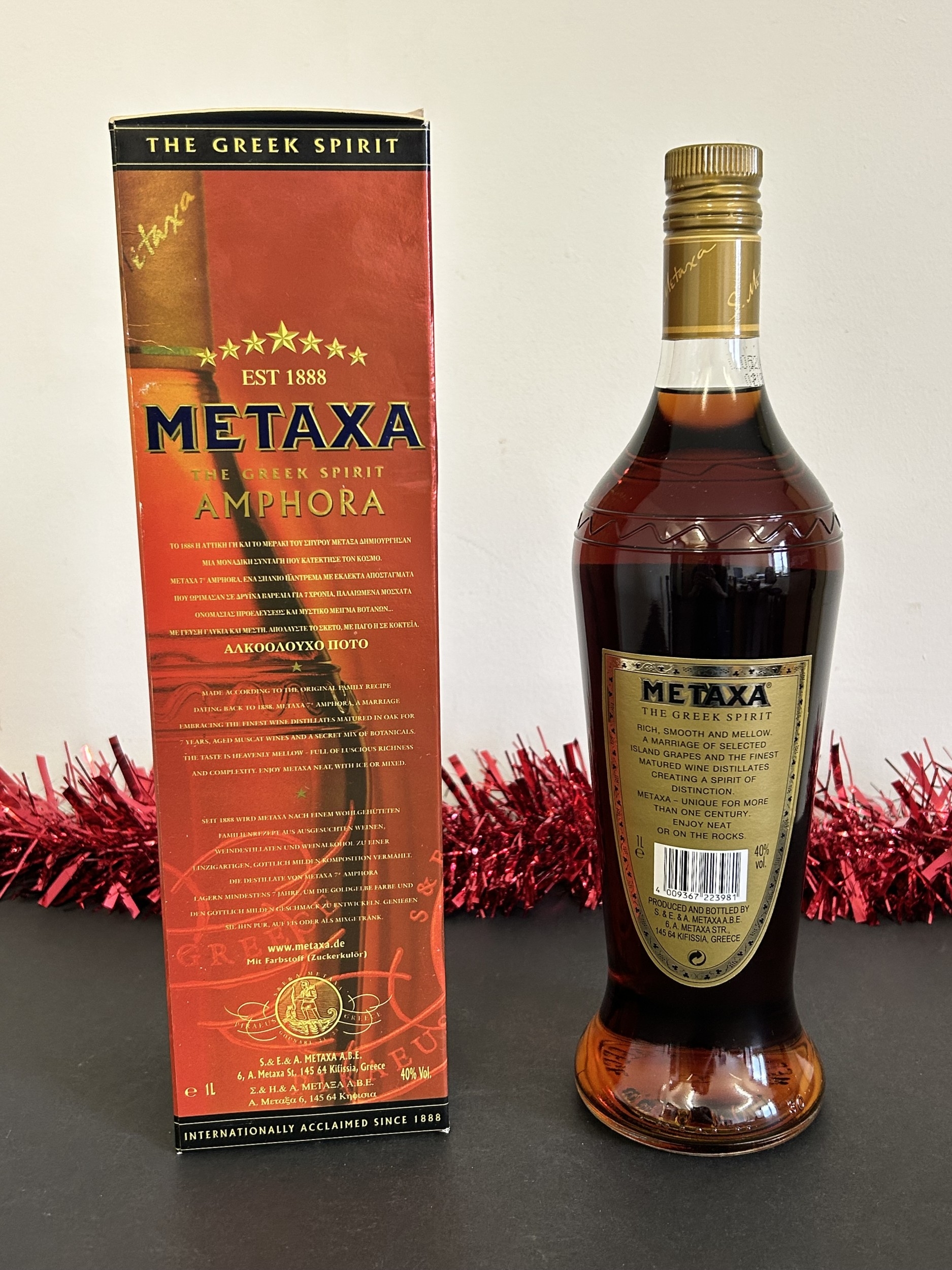 A boxed bottle of Metaxa 'The Greek Spirit Amphora' blended brandy, 1 litre