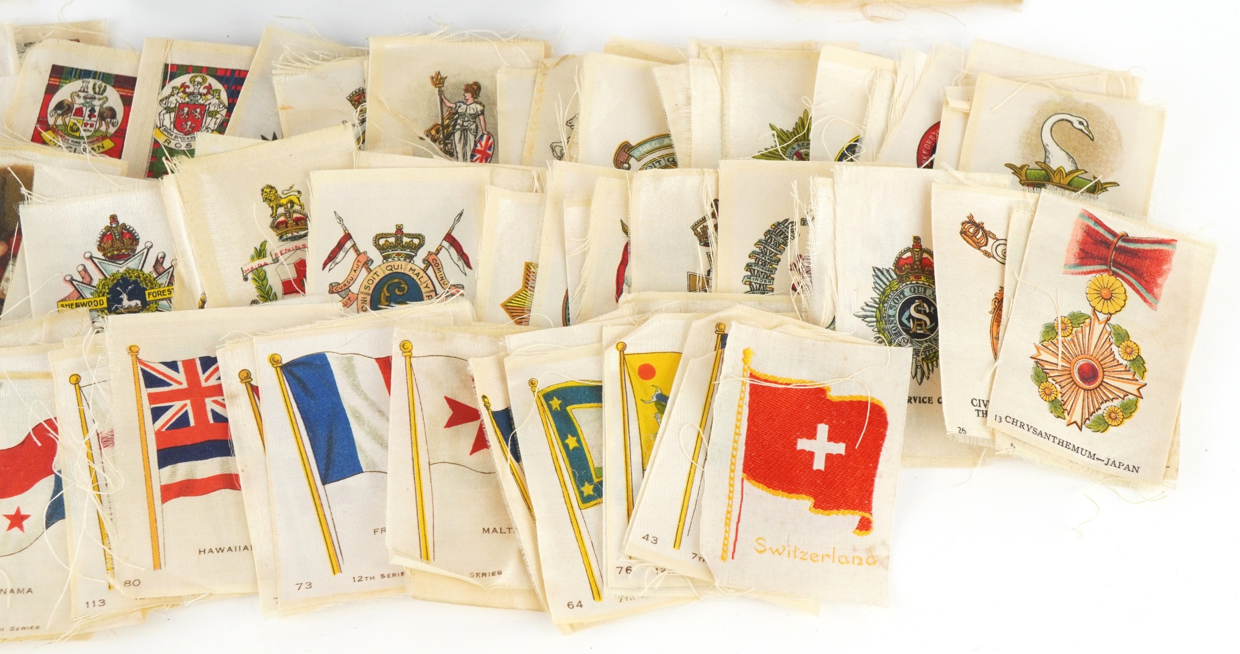 A collection of military interest silk cigarette cards.