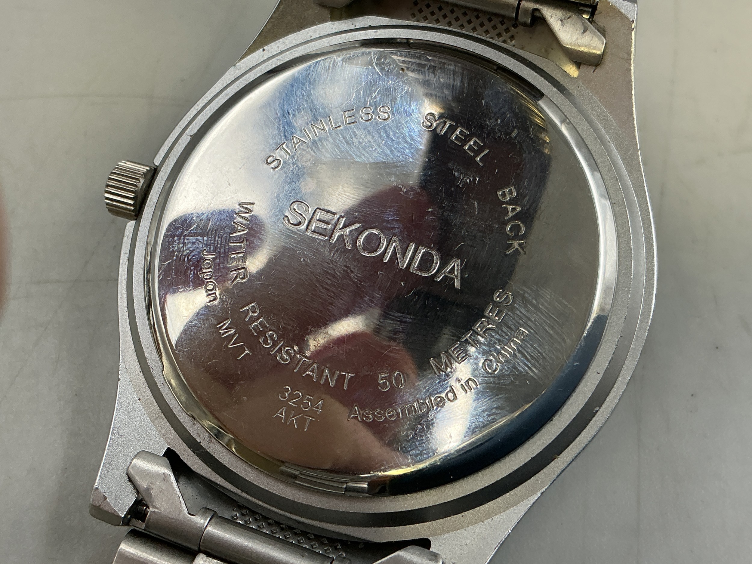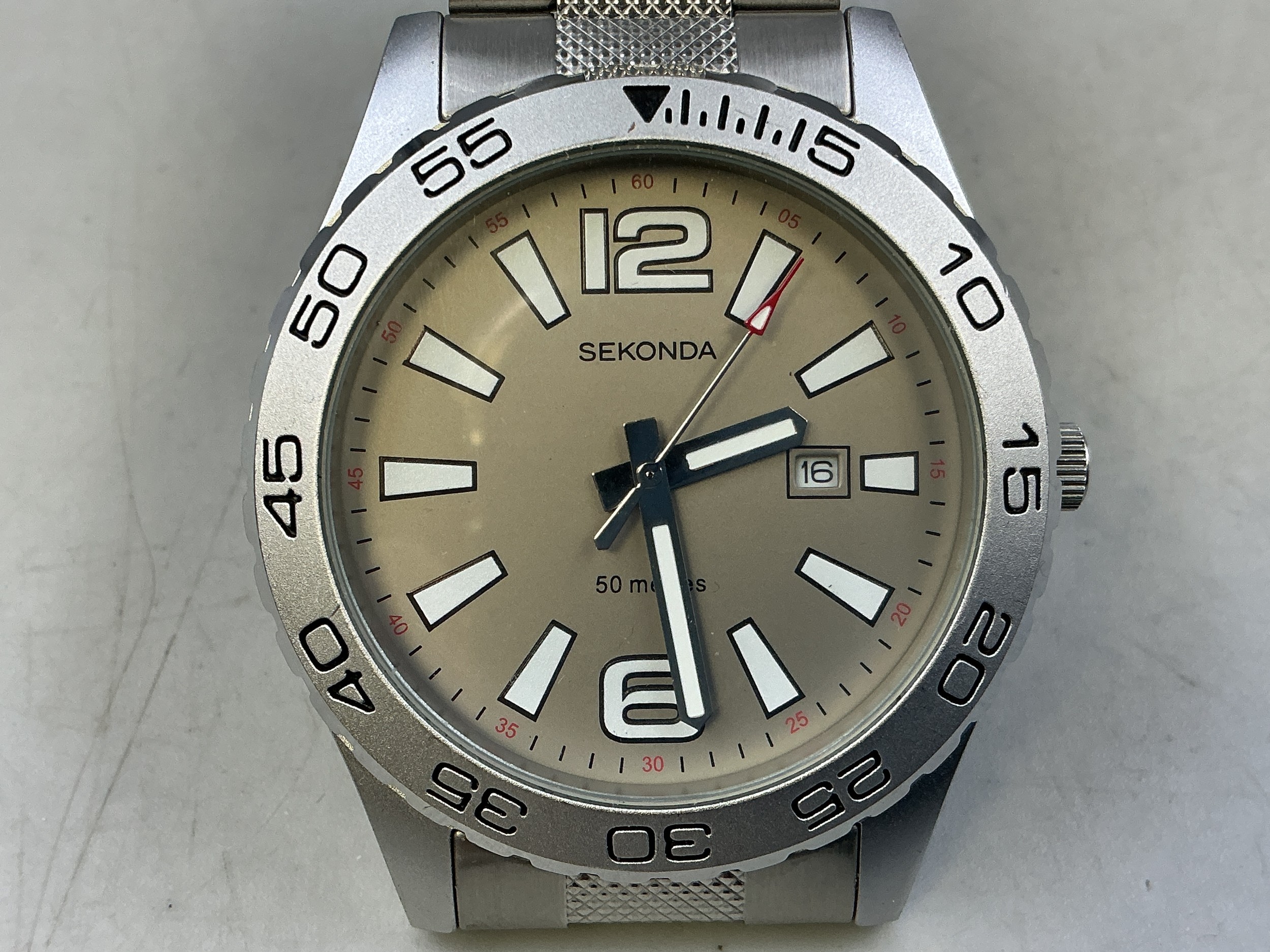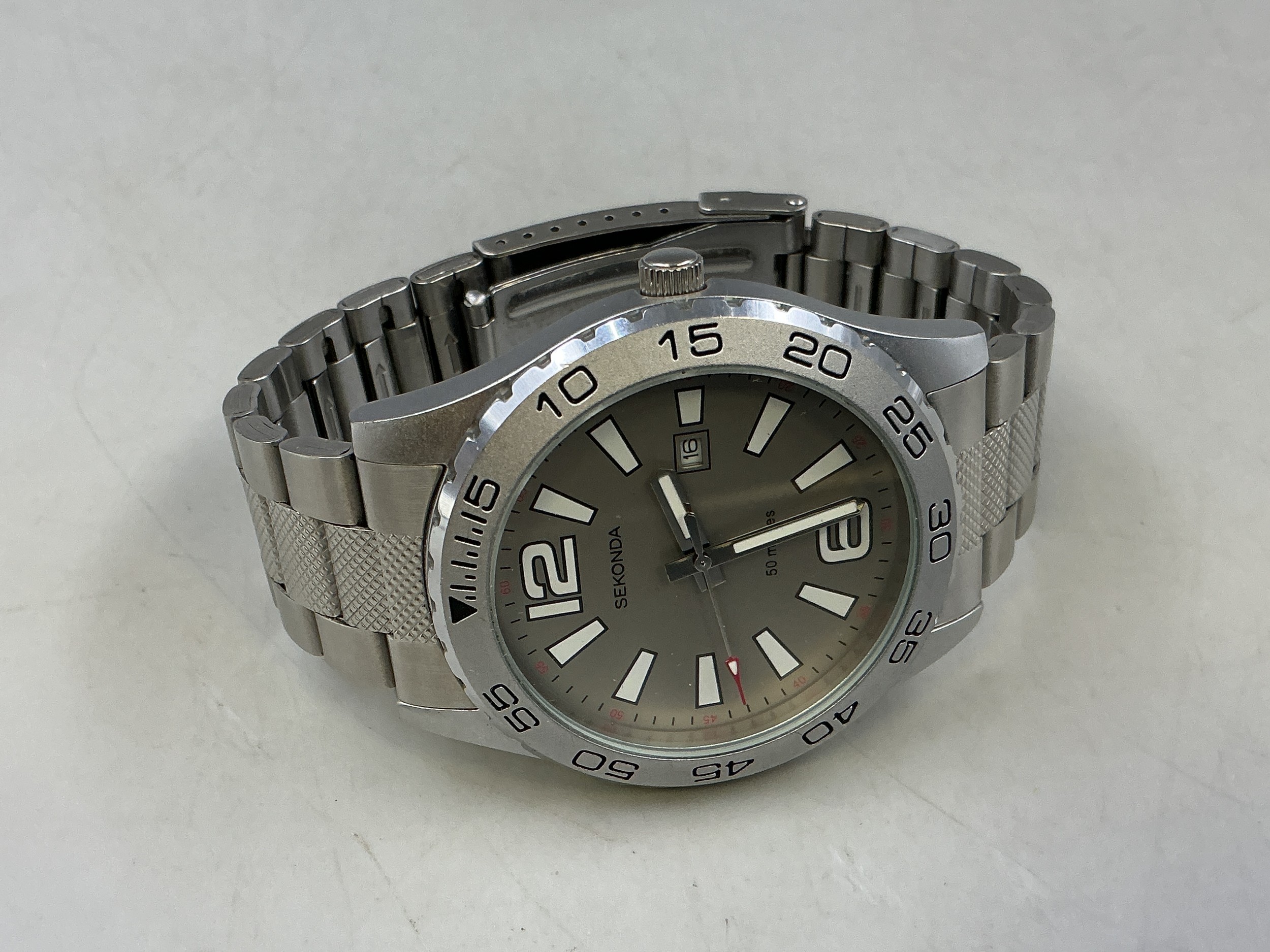 A Sekonda 50mtr Gents Quartz Day/Time Watch - Stainless Steel Dial, Case, And Strap. Working