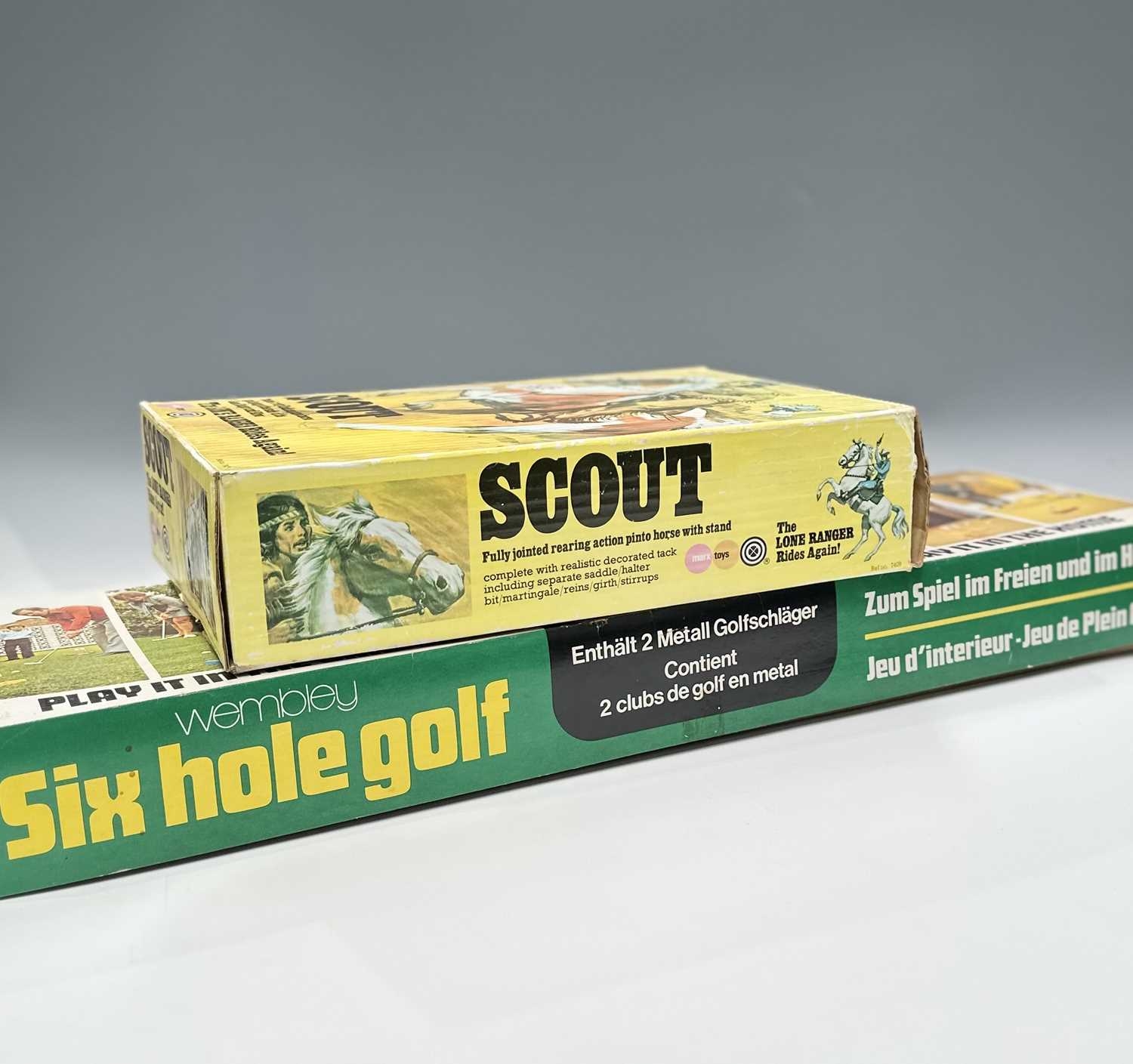 A Marx toy 'Scout' - Tonto's trusty Indian pinto horse, also a 'Wembley' Six hole golf set, both boxed (2)