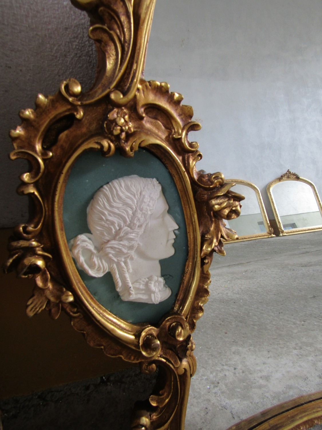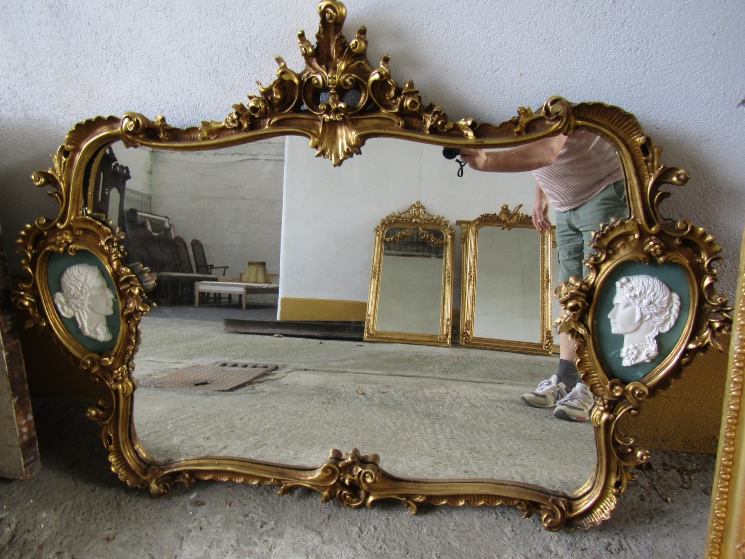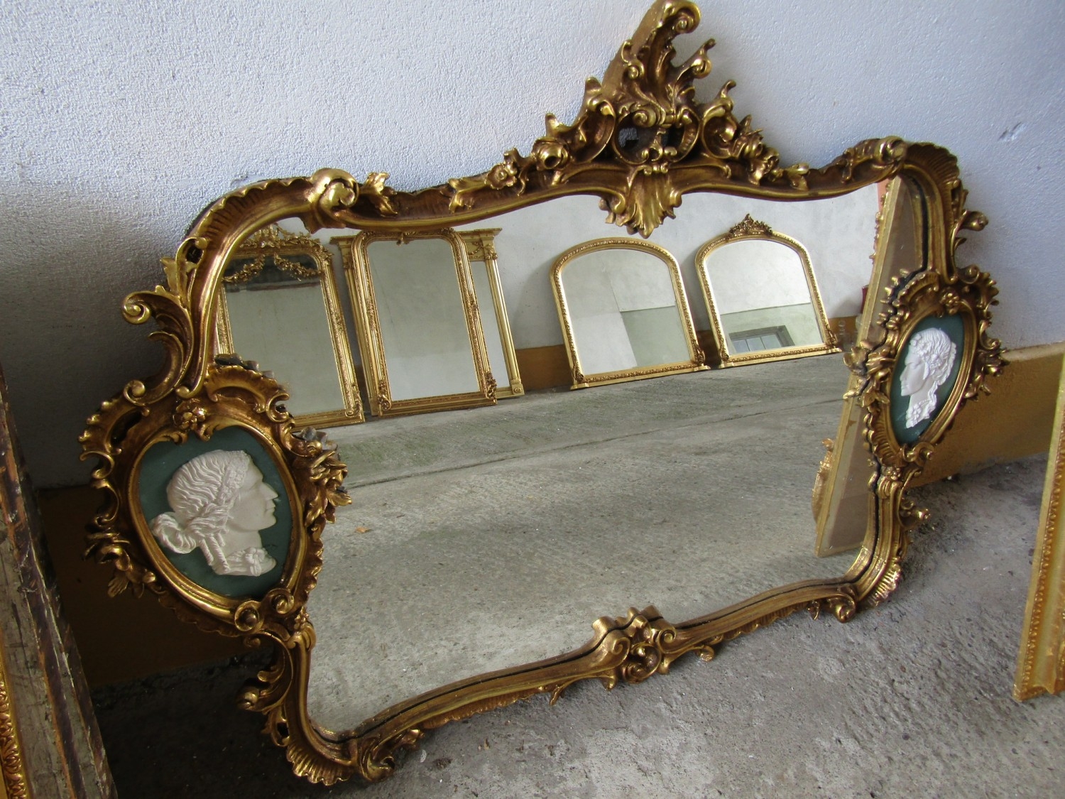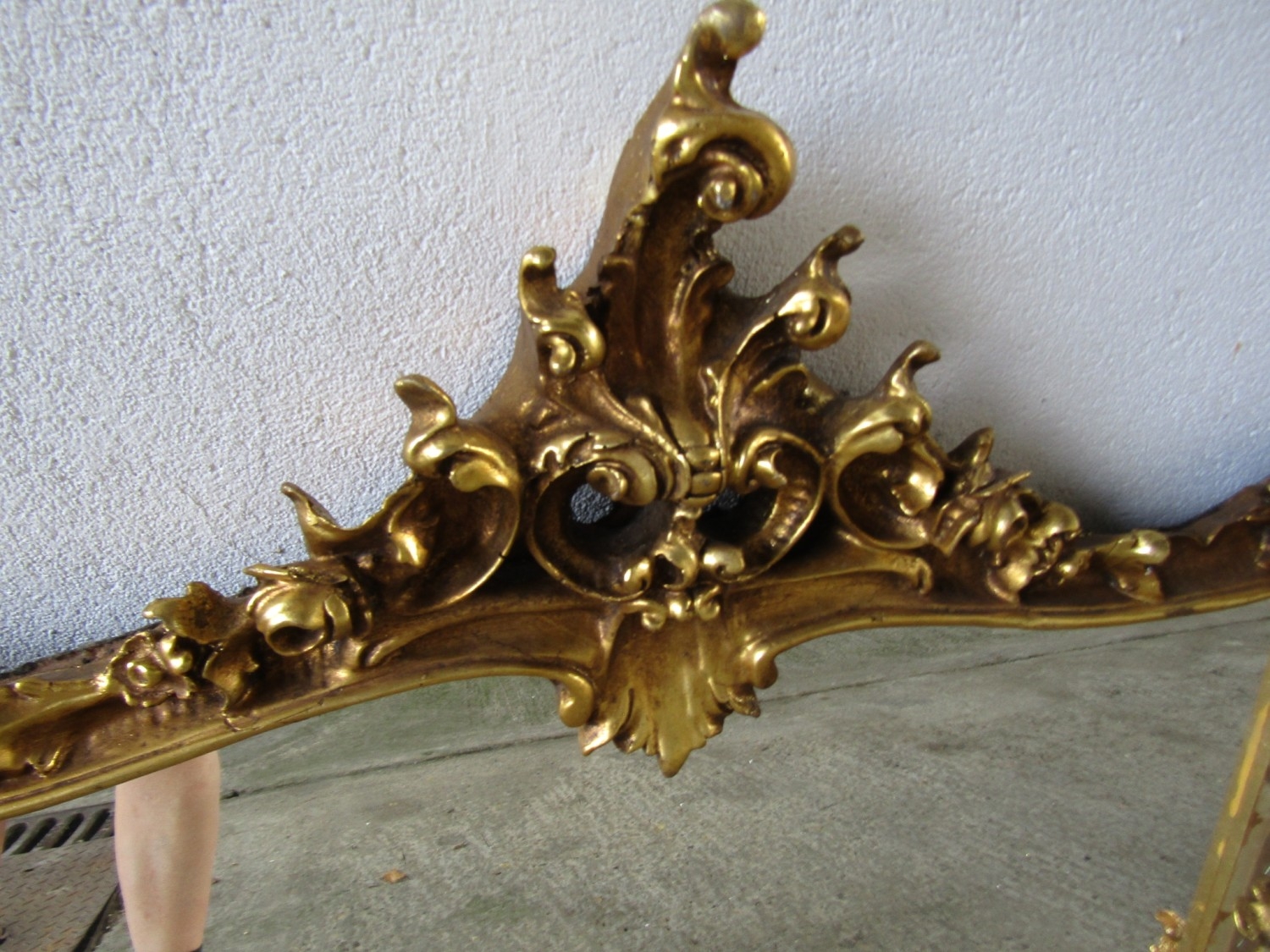 Gilded Shaped Form Wall Mirror Upper Cartouche Decoration with Side Profiles Approximately 4ft 6 Inches Wide x 3ft High