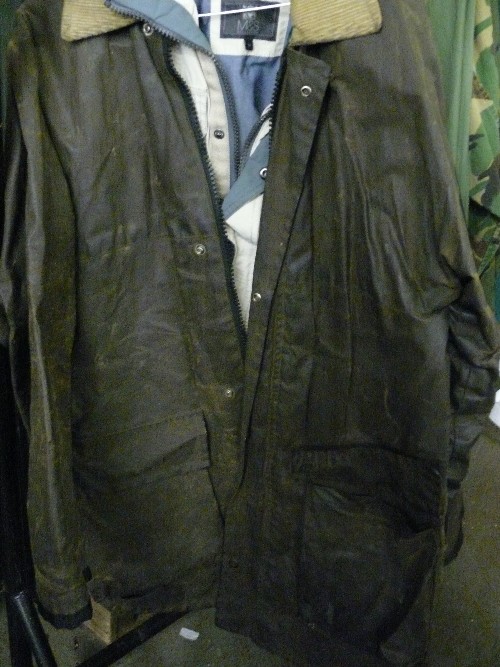 GENTS REGATTA GREEN WAX JACKET WITH REGATTA SOFTSHELL GILET PLUS ANOTHER BROWN WAX JACKET, ALSO WITH GILET