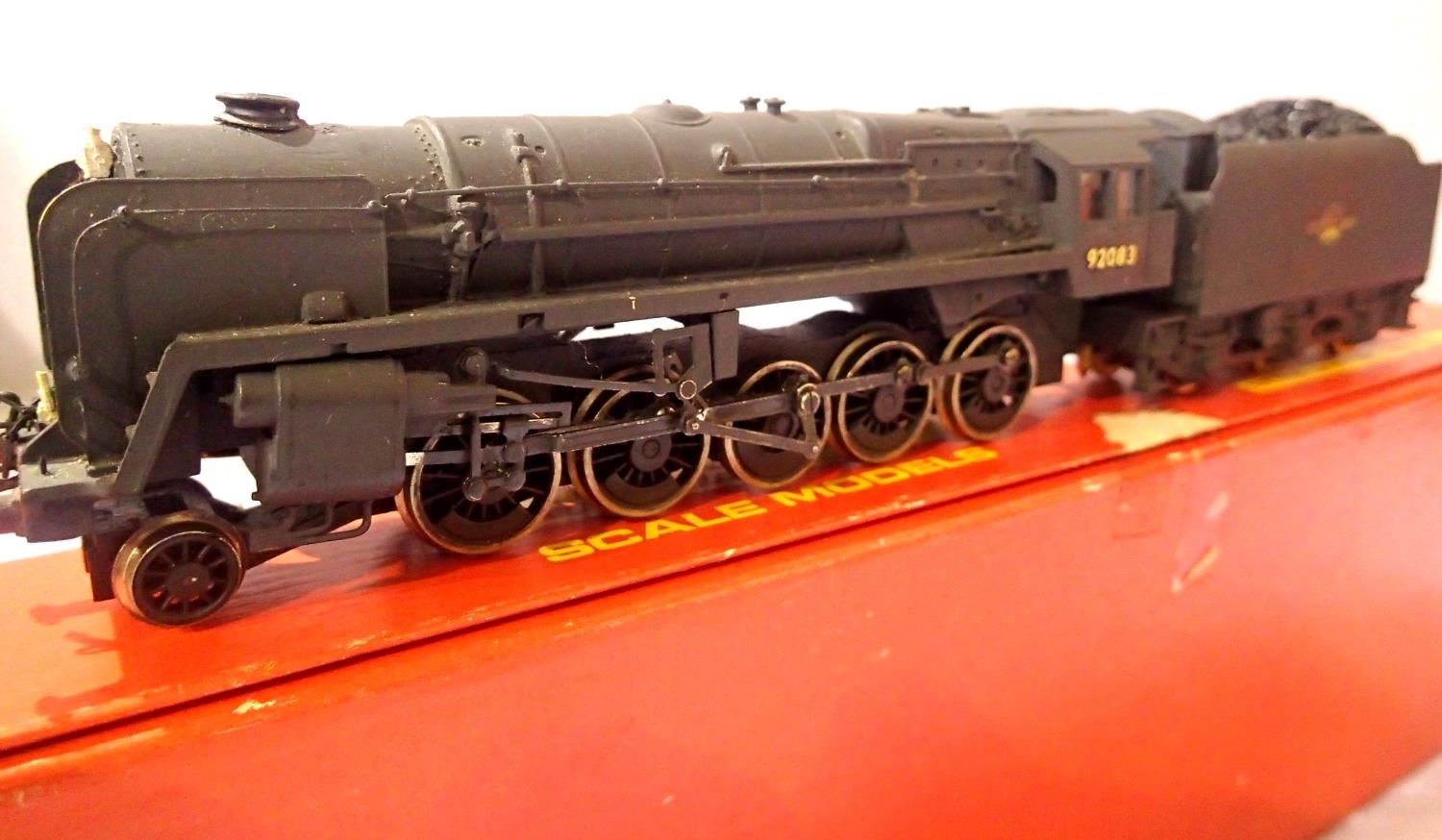 Hornby Class 9F, fitted kit built metal tender top, Black, Late Crest, 92083, detailed and weathered in very good condition, box poor. P&P Group 1 (£14+VAT for the first lot and £1+VAT for subsequent lots)