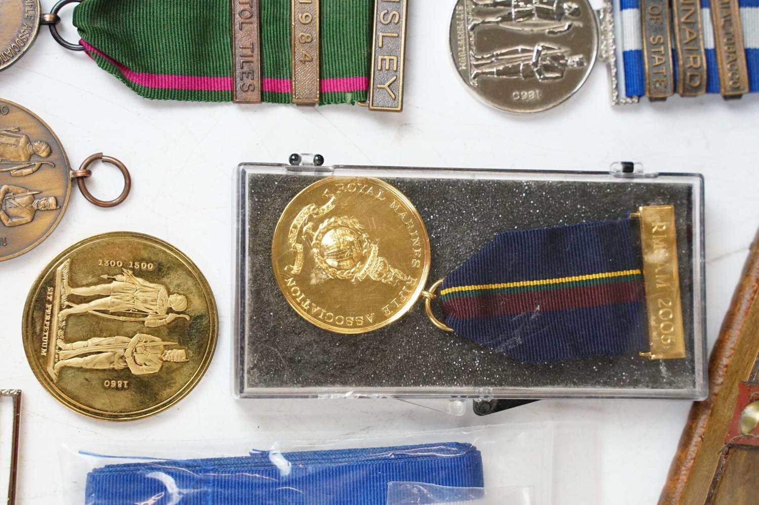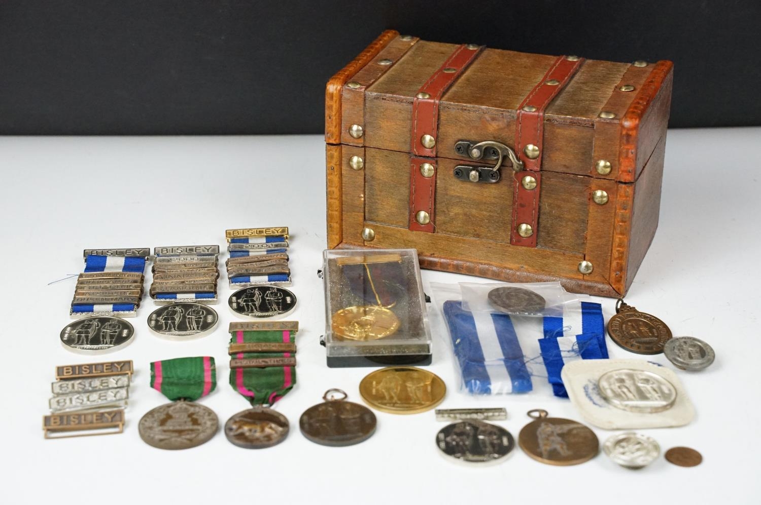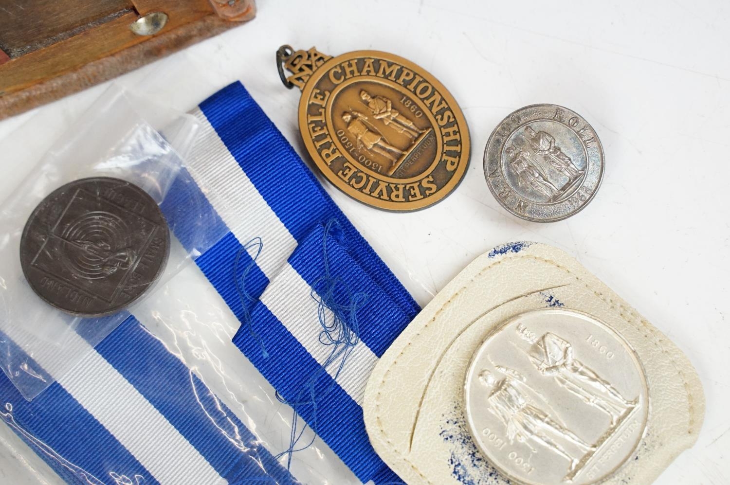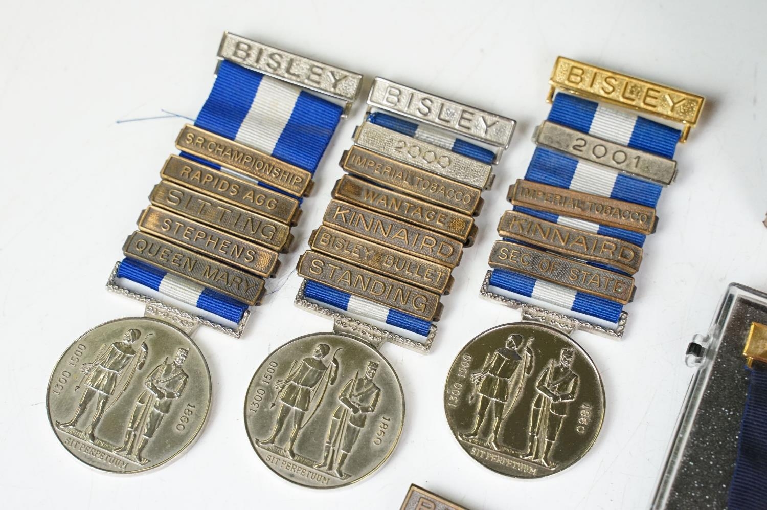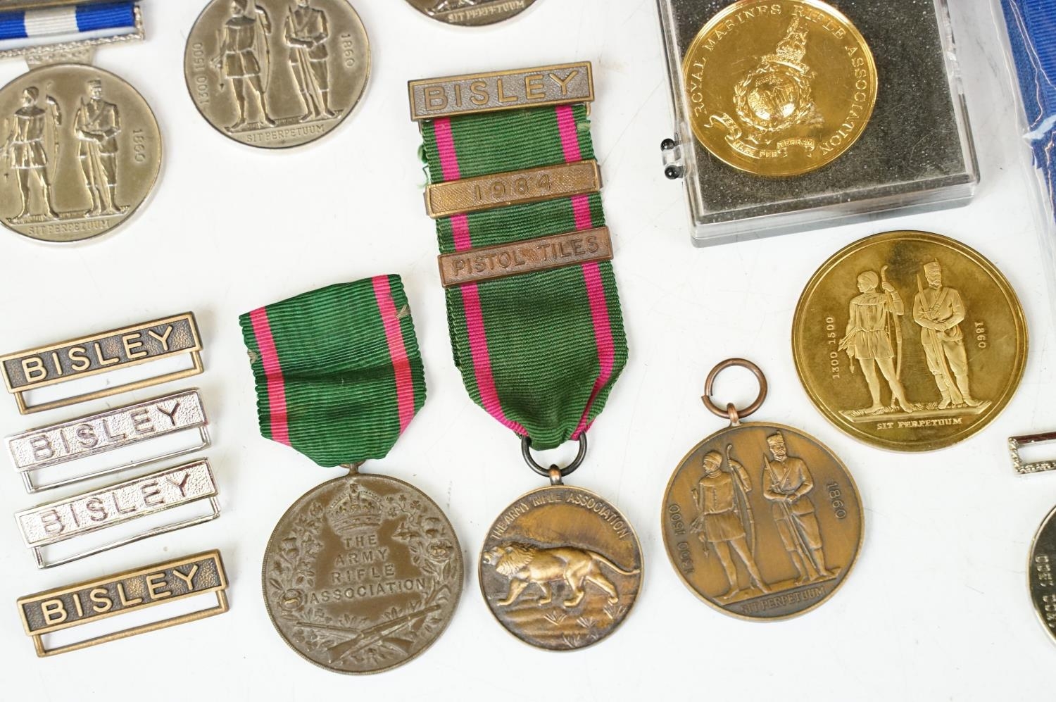Collection of Bisley shooting medals including Royal Marines rifle association, regular army pistol and the army rifle association etc