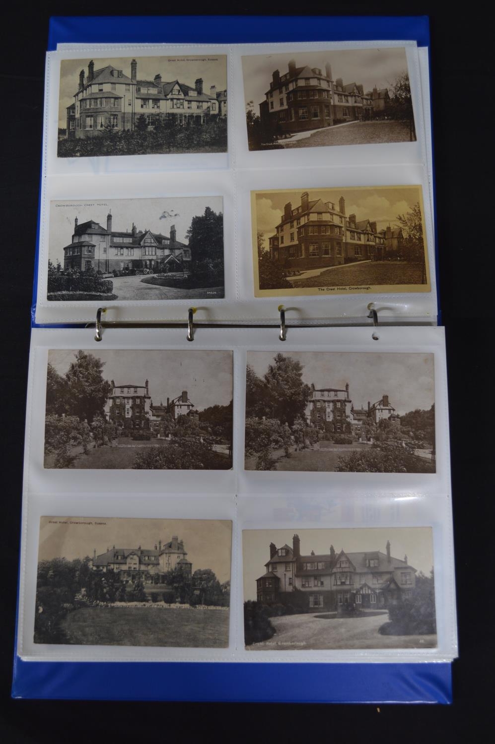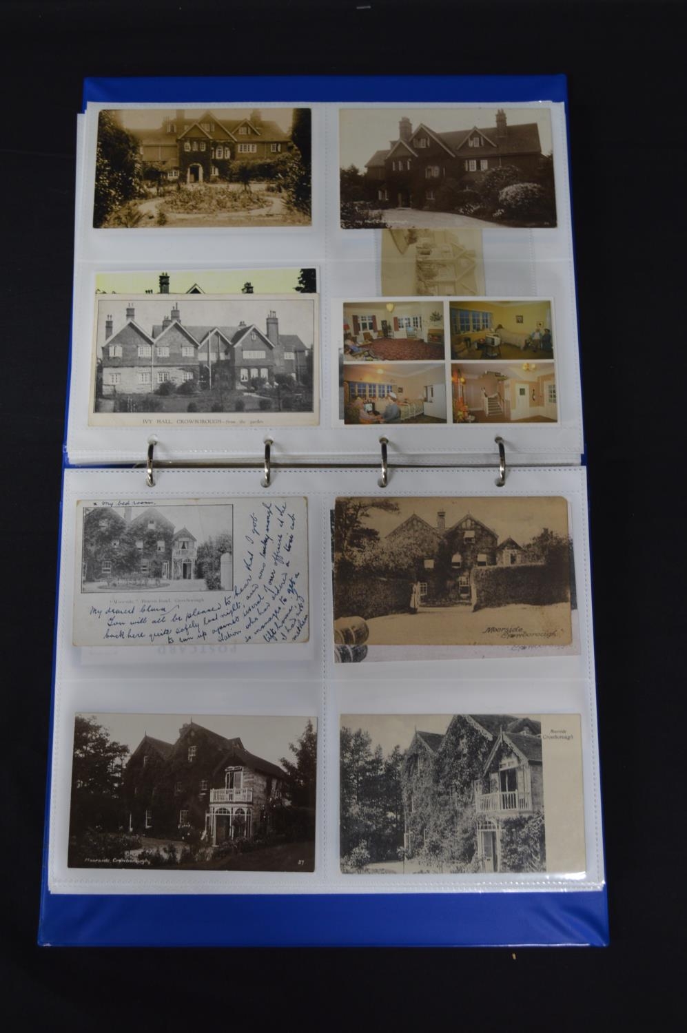 Folder containing approx 200 black & white and colour postcards of mainly hotels and houses in Crowborough