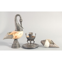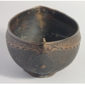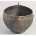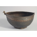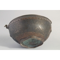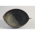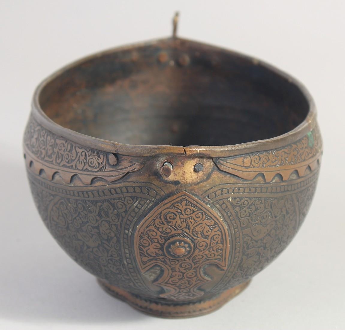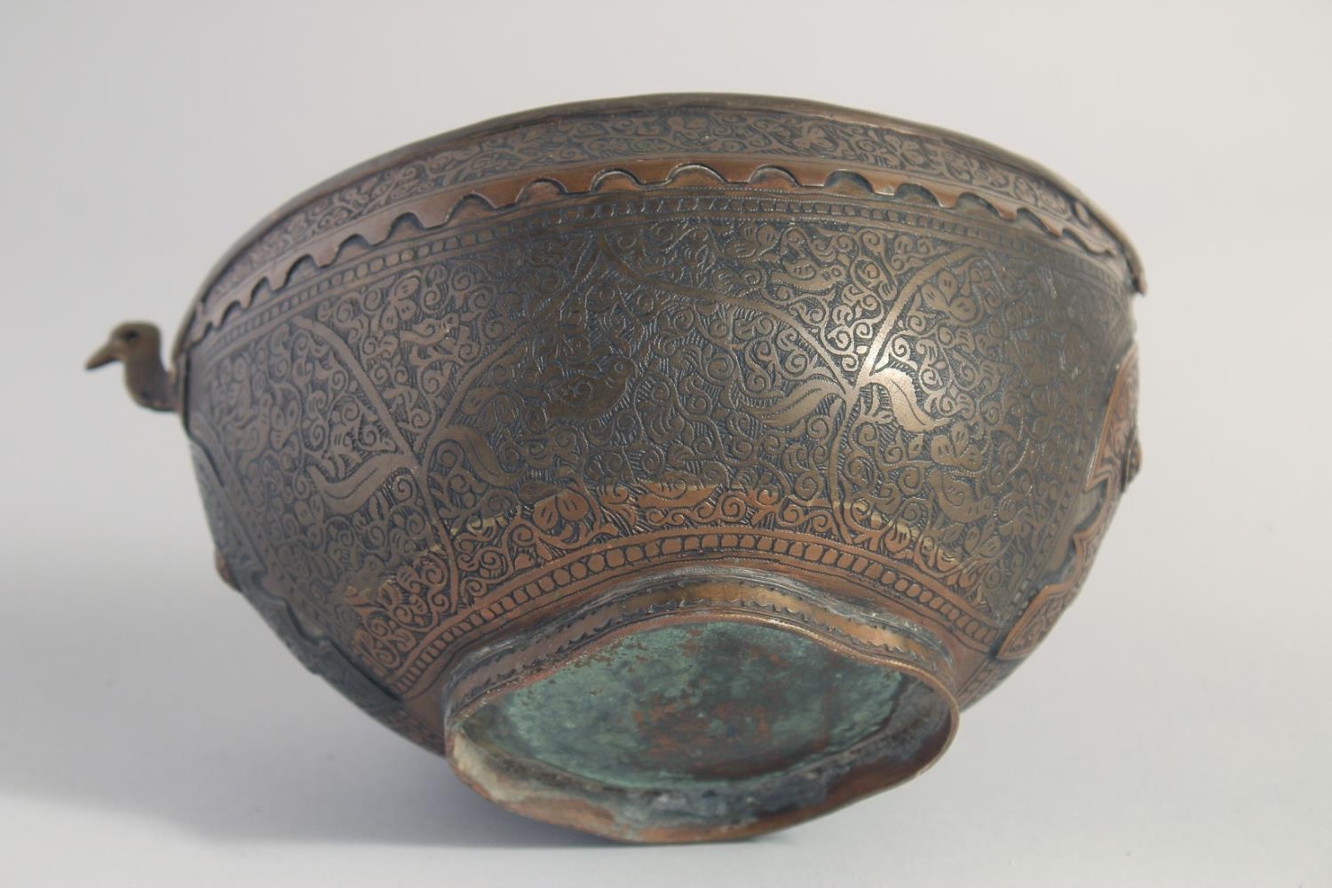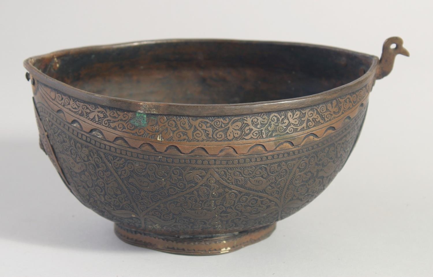 AN ISLAMIC ENGRAVED BRASS KASHKOOL, 20.5cm wide.