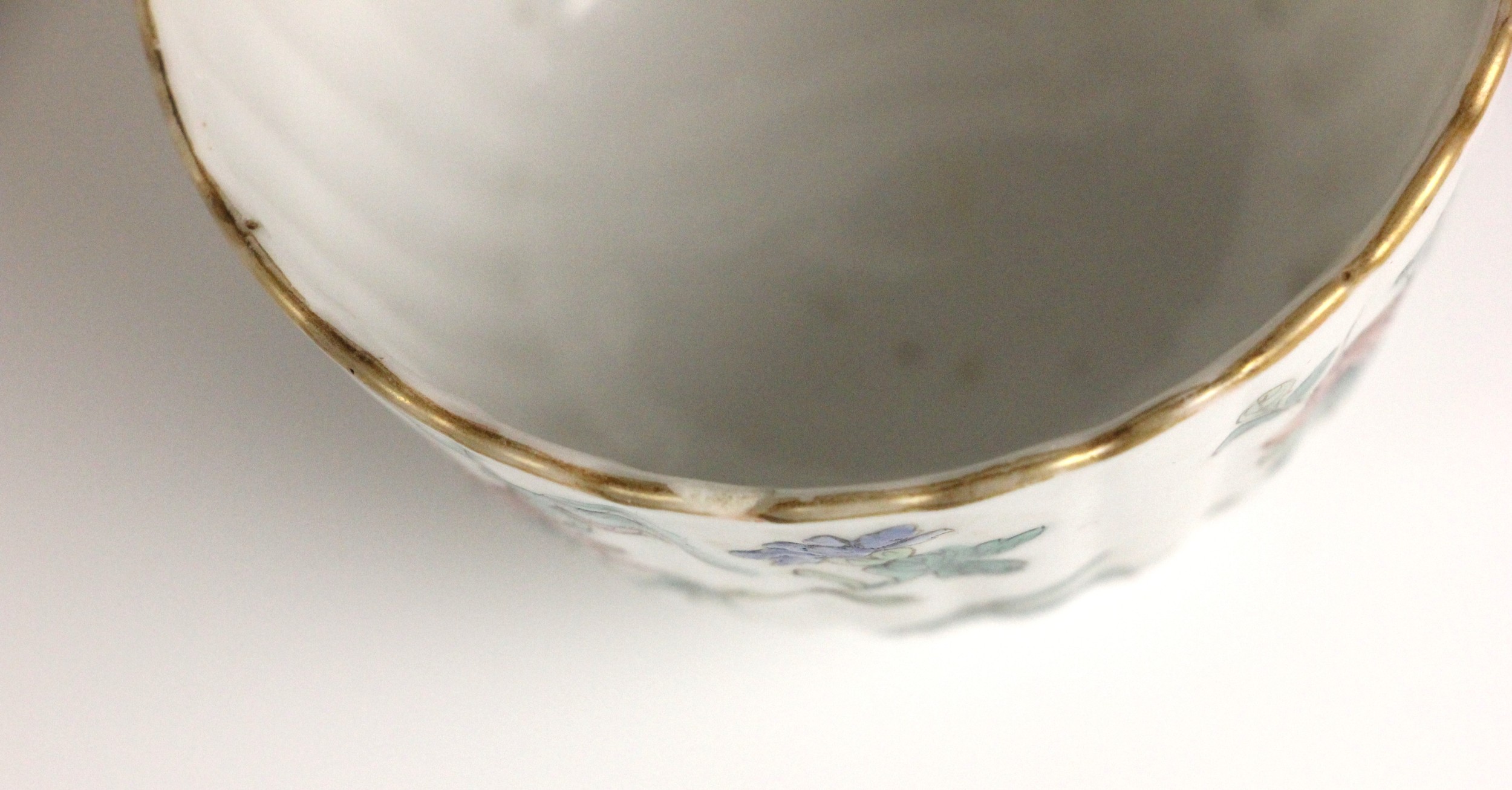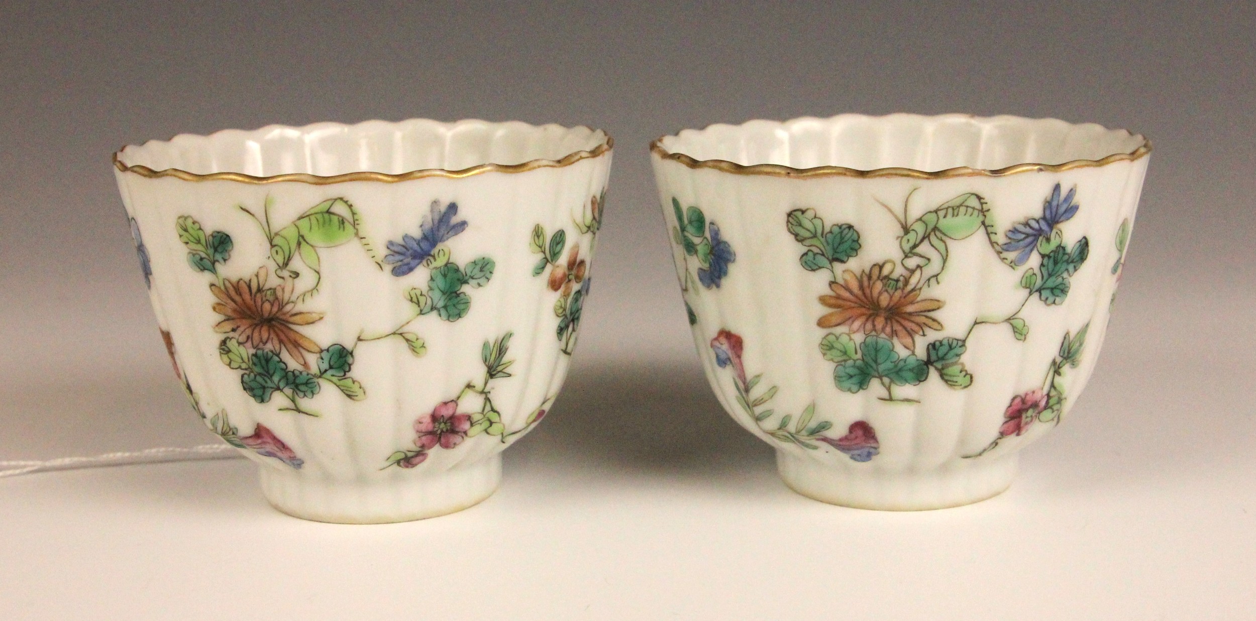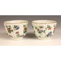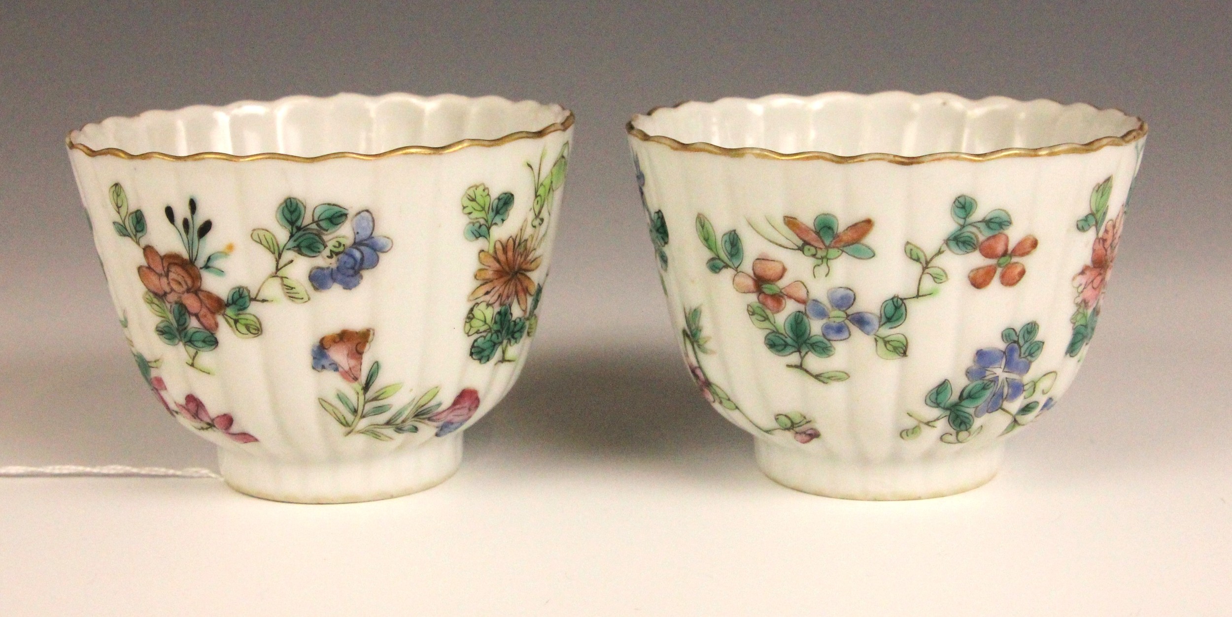 One tea bowl shows a small chip, further nibbles, a small glazing fault and rubbing to the gilt of the rim. The other shows nibbles and rubbing to the rim. Both shows pits and frits to the interiors, and surface wear to the exteriors, but no obvious cracks, crazing or evidence of restoration.