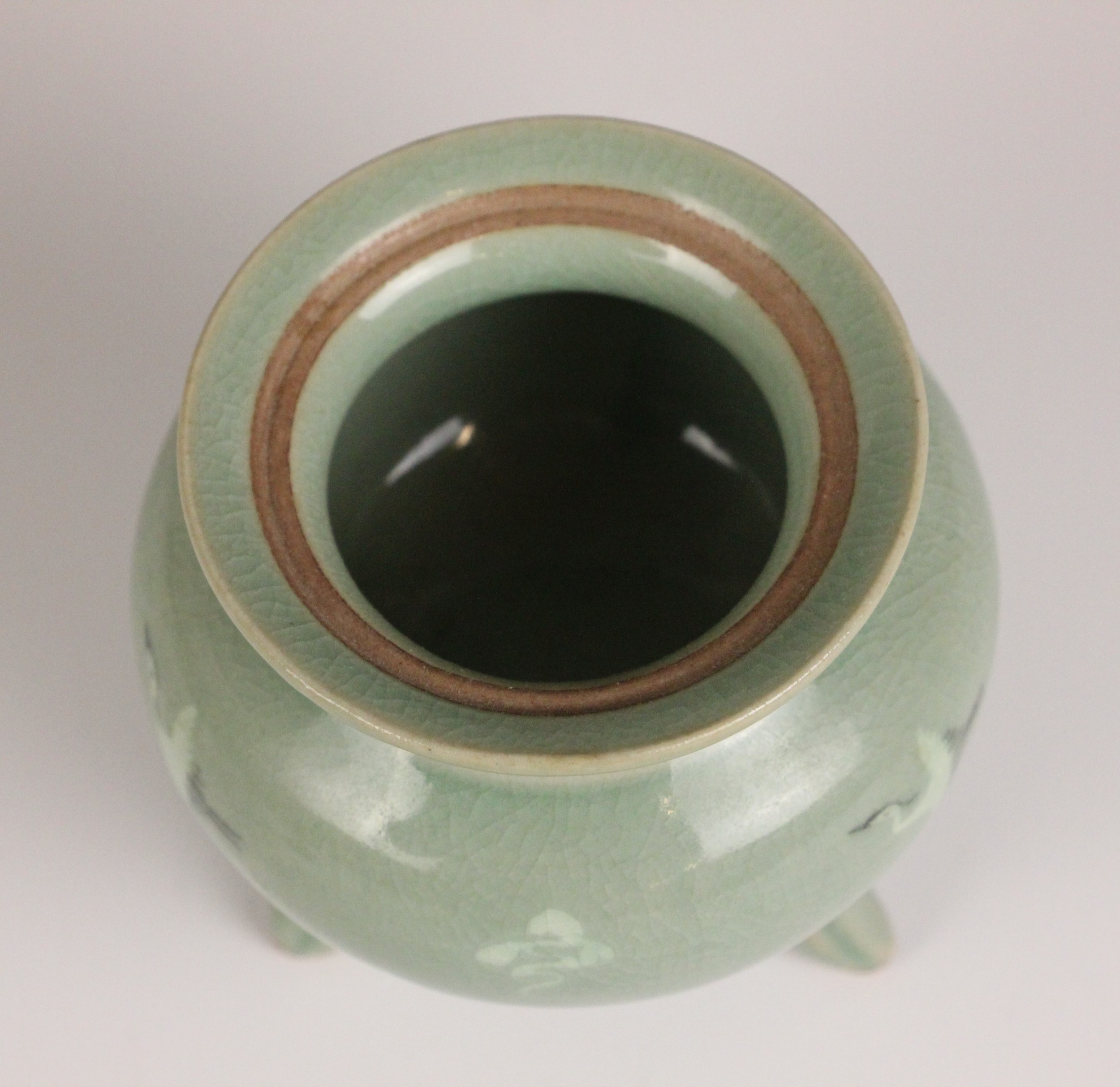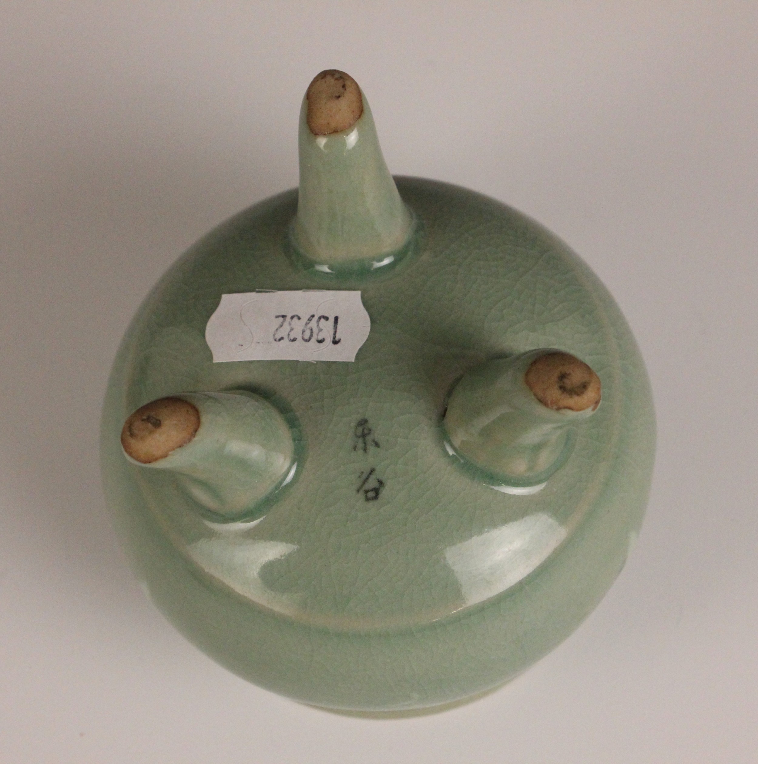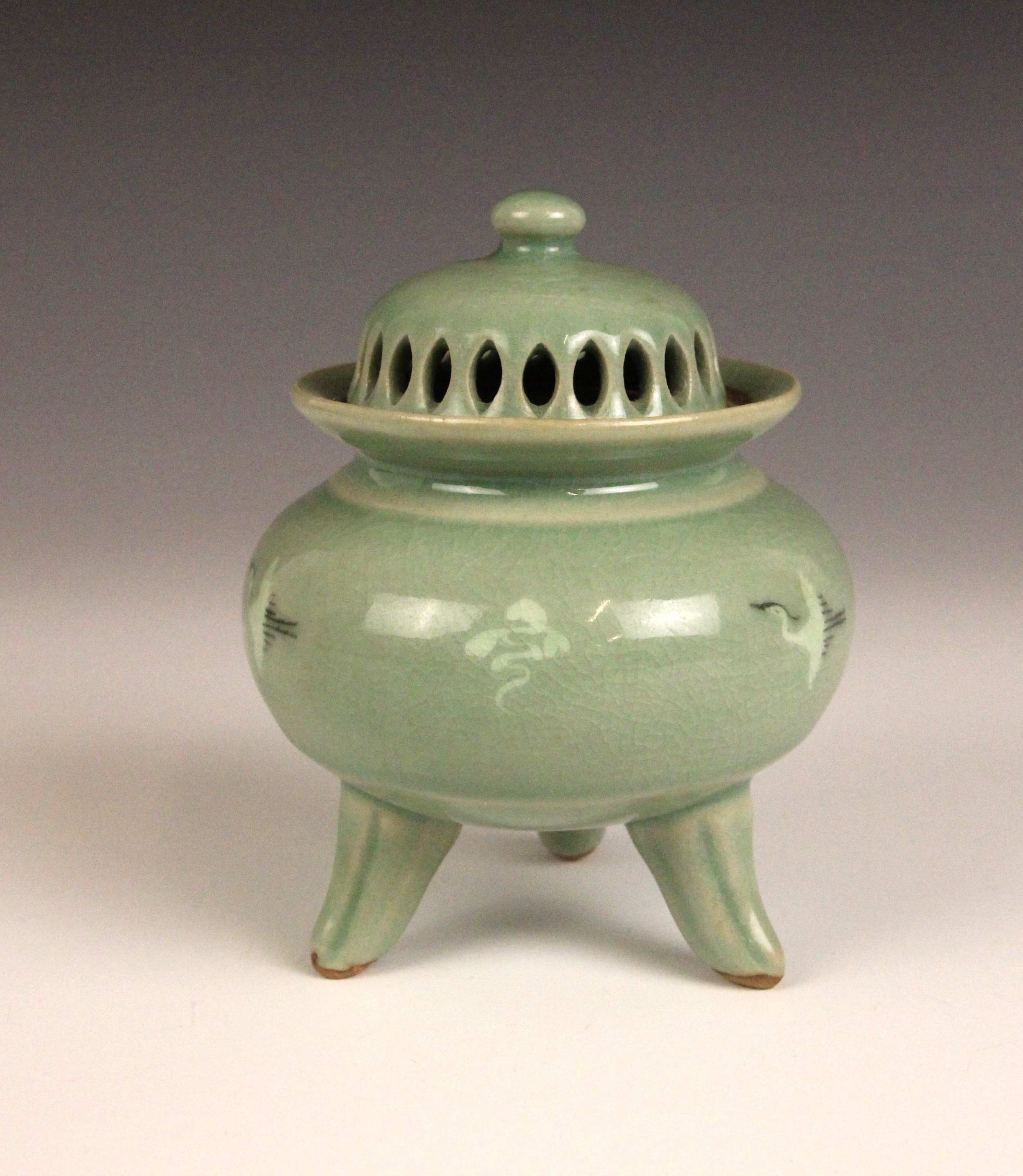 The koro shows crazing throughout and a small unglazed frit to the cover, but no cracks or evidence of restoration.