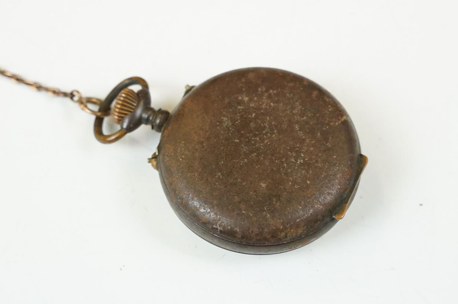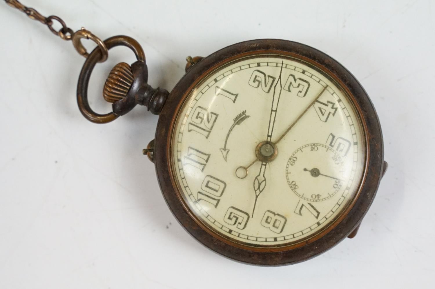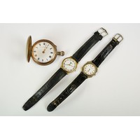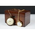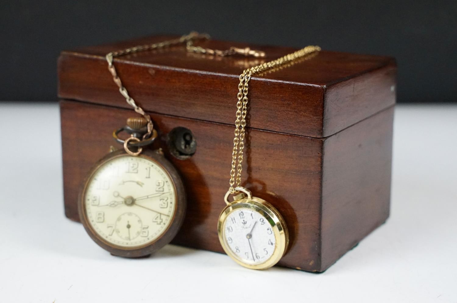 Early 20th century Invincible pocket watch with 9ct gold chain, another pocket watch and a small mahogany box