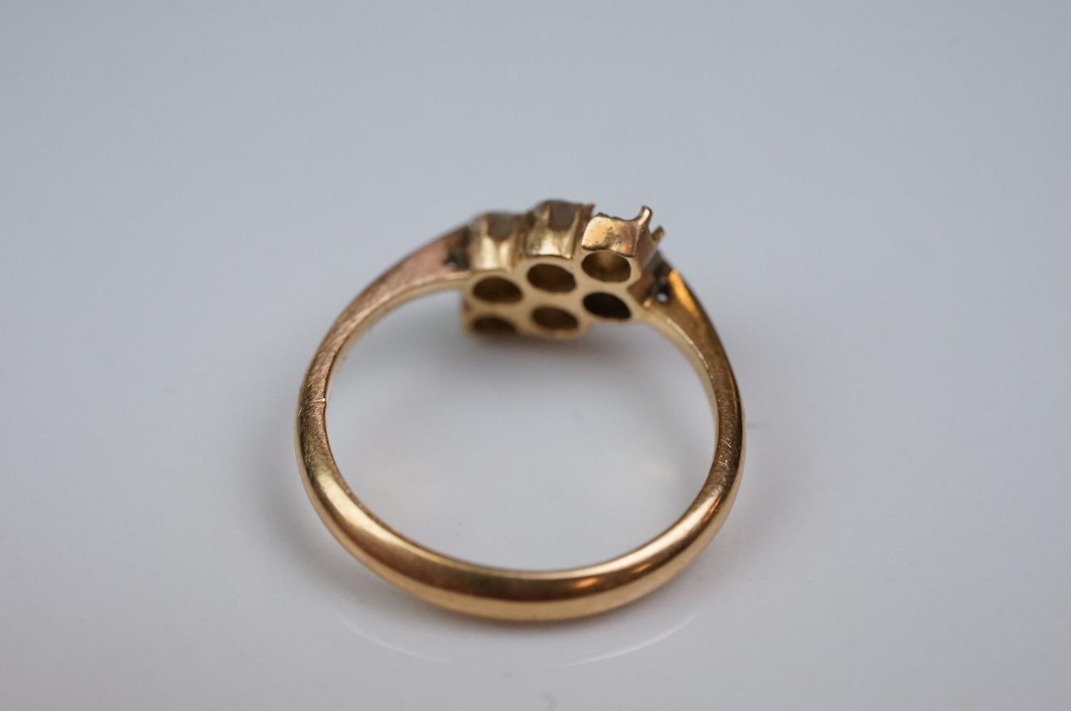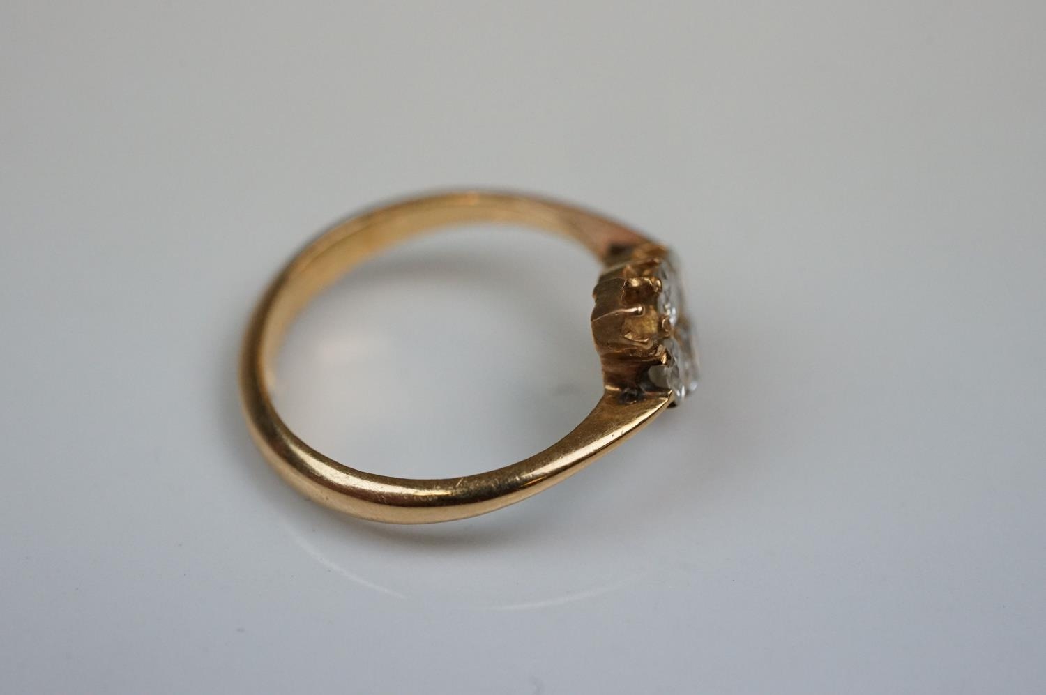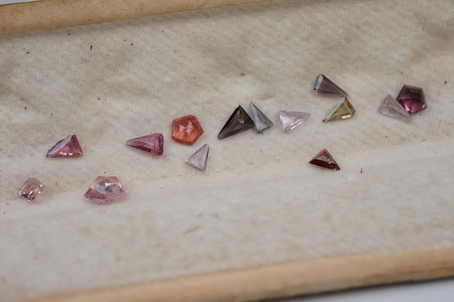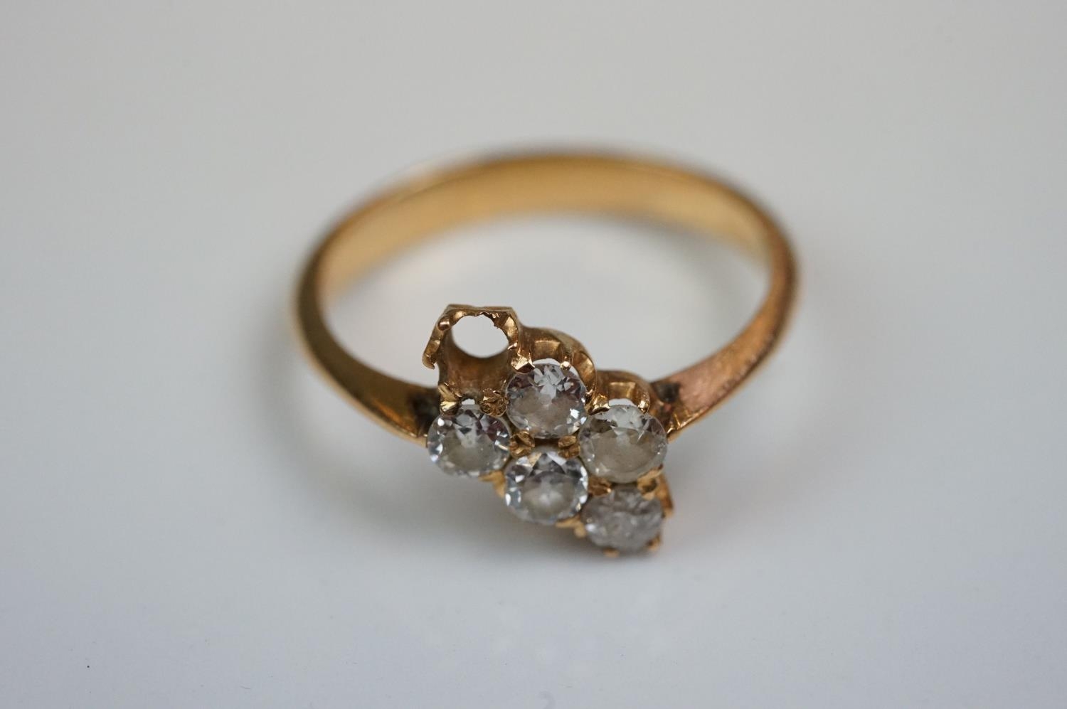Diamond five stone yellow gold ring (one stone deficient) five round brilliant cut diamonds, claw settings, test as a minimum of 18ct gold together with a small quantity of loose faceted gemstones to include garnet, tourmaline, morganite etc