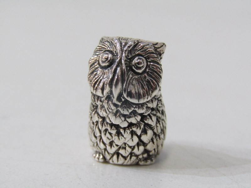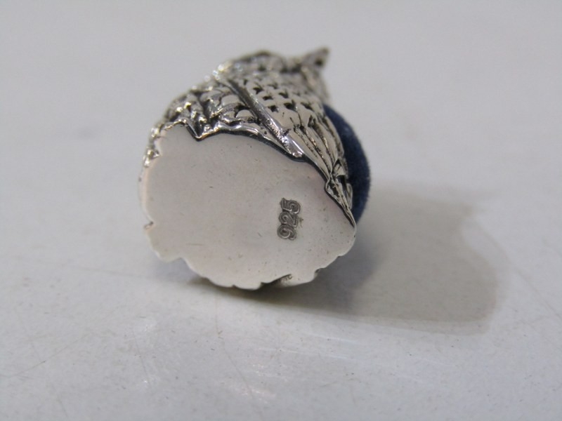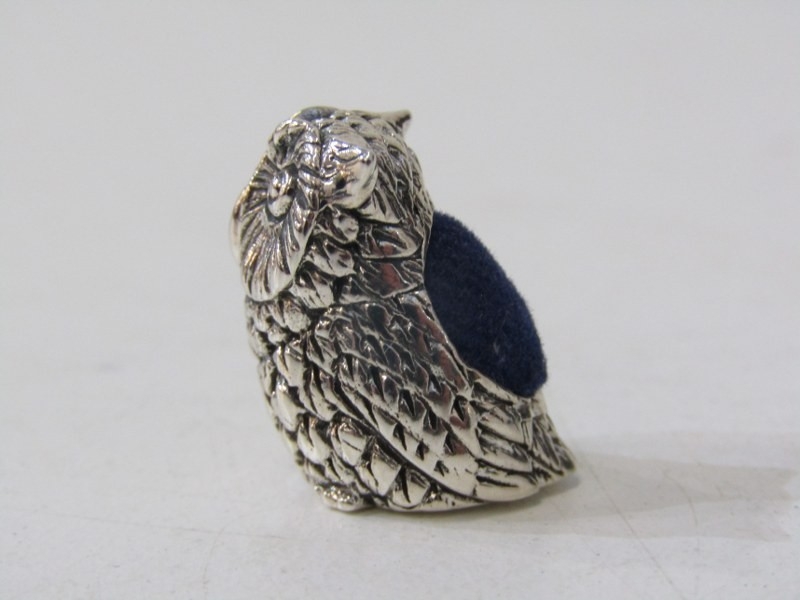 NOVELTY SILVER PIN CUSHION, in the form of an owl, stamped 925