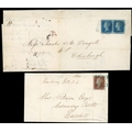 GB 1841 2d pair on 1846 cover and 1841 1d red-brown cover both tied by Oban numerals