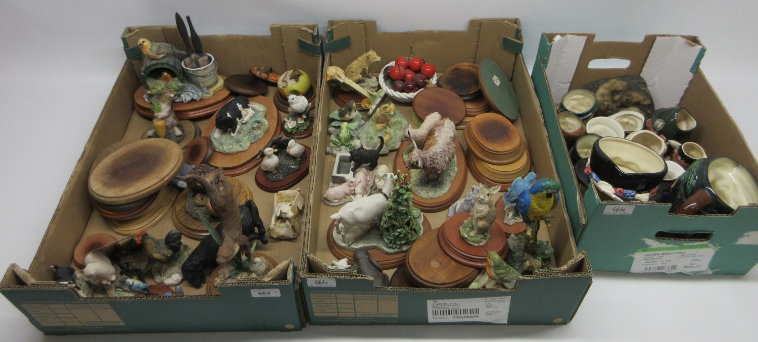 Collection of Border Fine Arts, Toby jugs and other similar items, incl. 'In The Potting Shed', limited edition 718 of 4500; The Chiltern Collection by Border Fine Arts 'Fox RW1'; Country Arts 'Otter swimming' CA 499; Royal Doulton 'Beefeaters' jug; Royal Doulton 'Simple Simon' D6374; etc. (3 boxes)