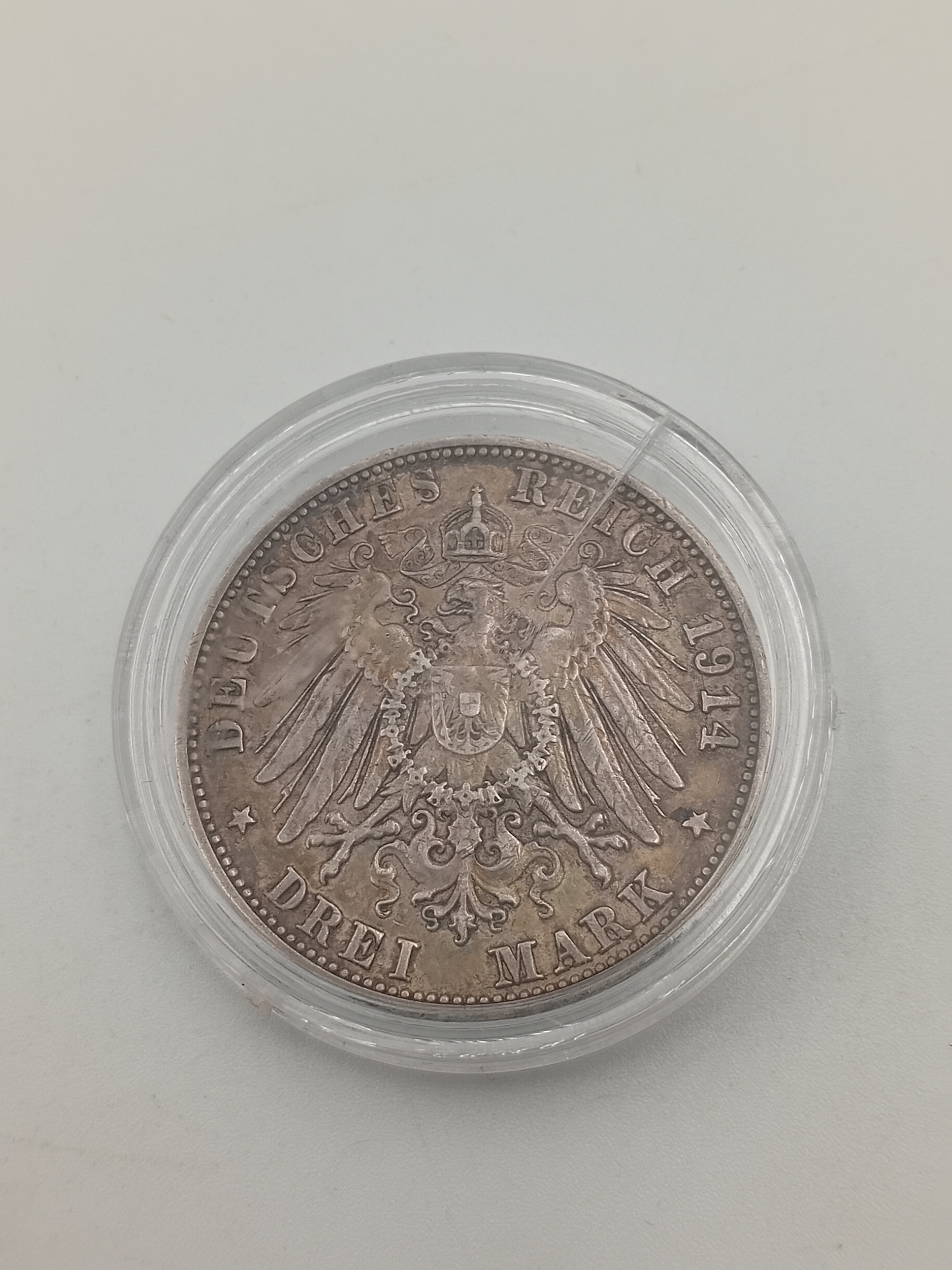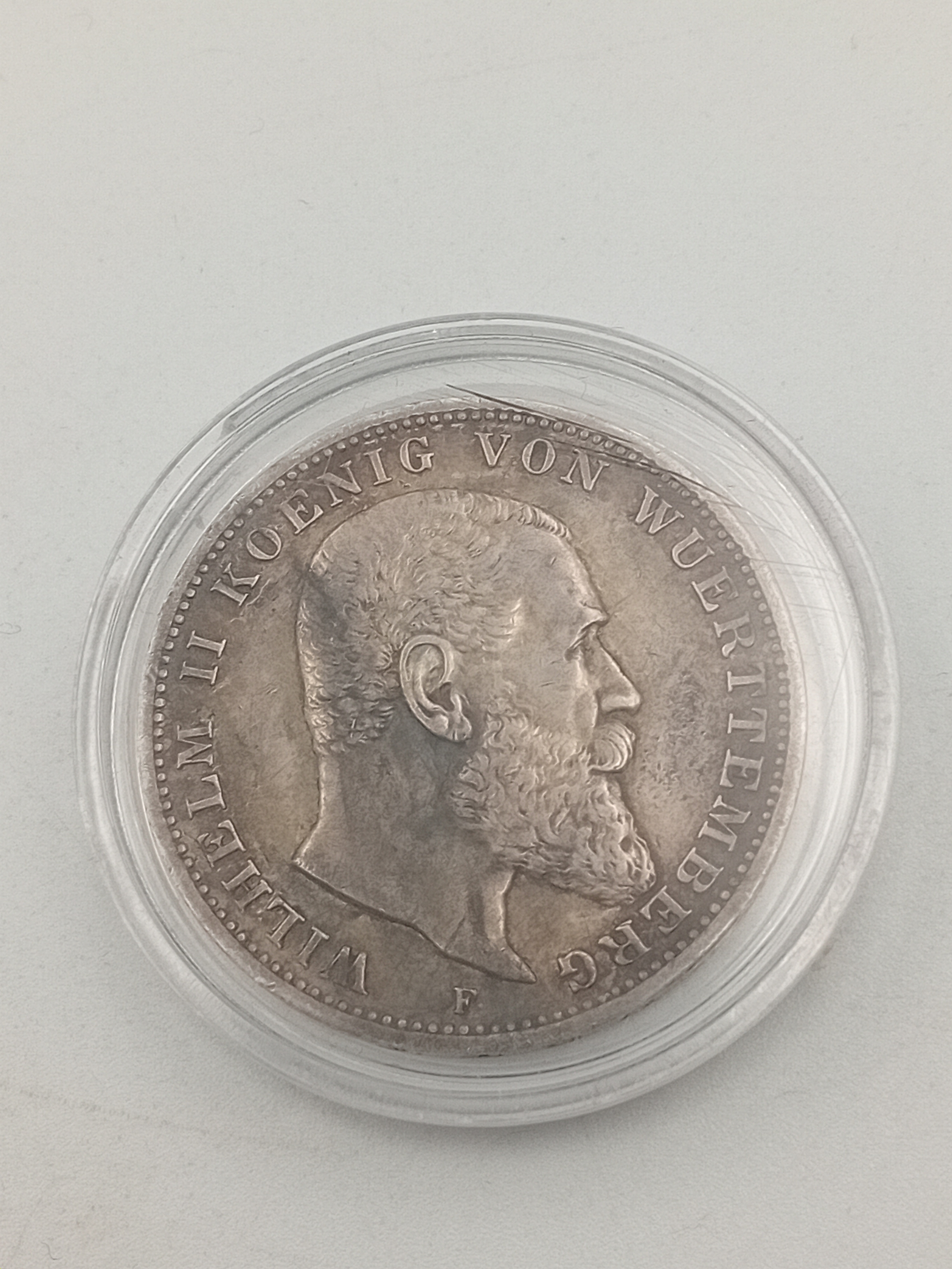 1914 F Germany Wuerttemberg silver 3 marks. High grade.
