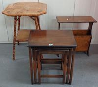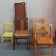 Yew Wood? Natural Hewn Coffee Table Top, 2 Folding Stained Beech Chairs with slatted seats, Oak Side Chair & Yellow Painted Child's Chair (5)