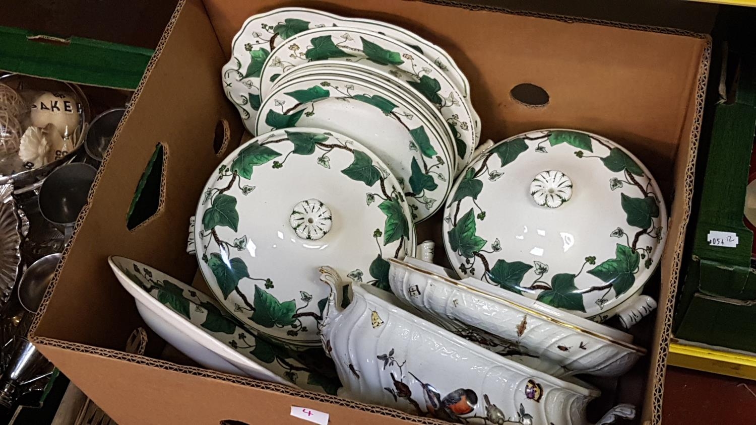 Box of Wedgwood "Napoleon Ivy" Plates & Tureens.