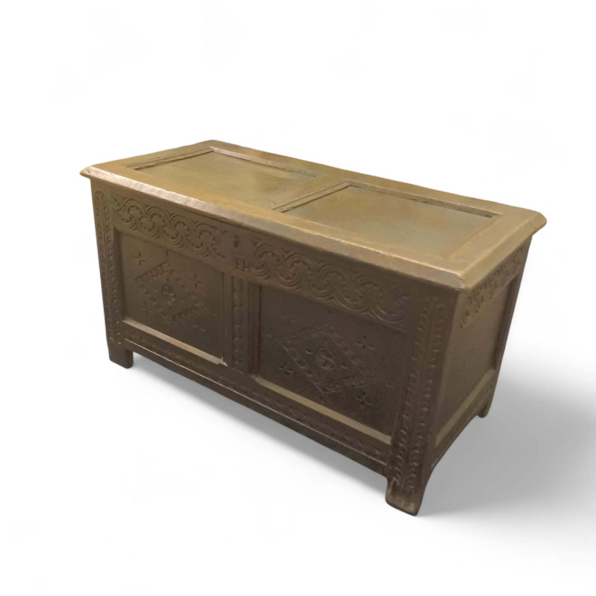 An 18th Century Oak Coffer / Blanket Box, (carved EH initials)
