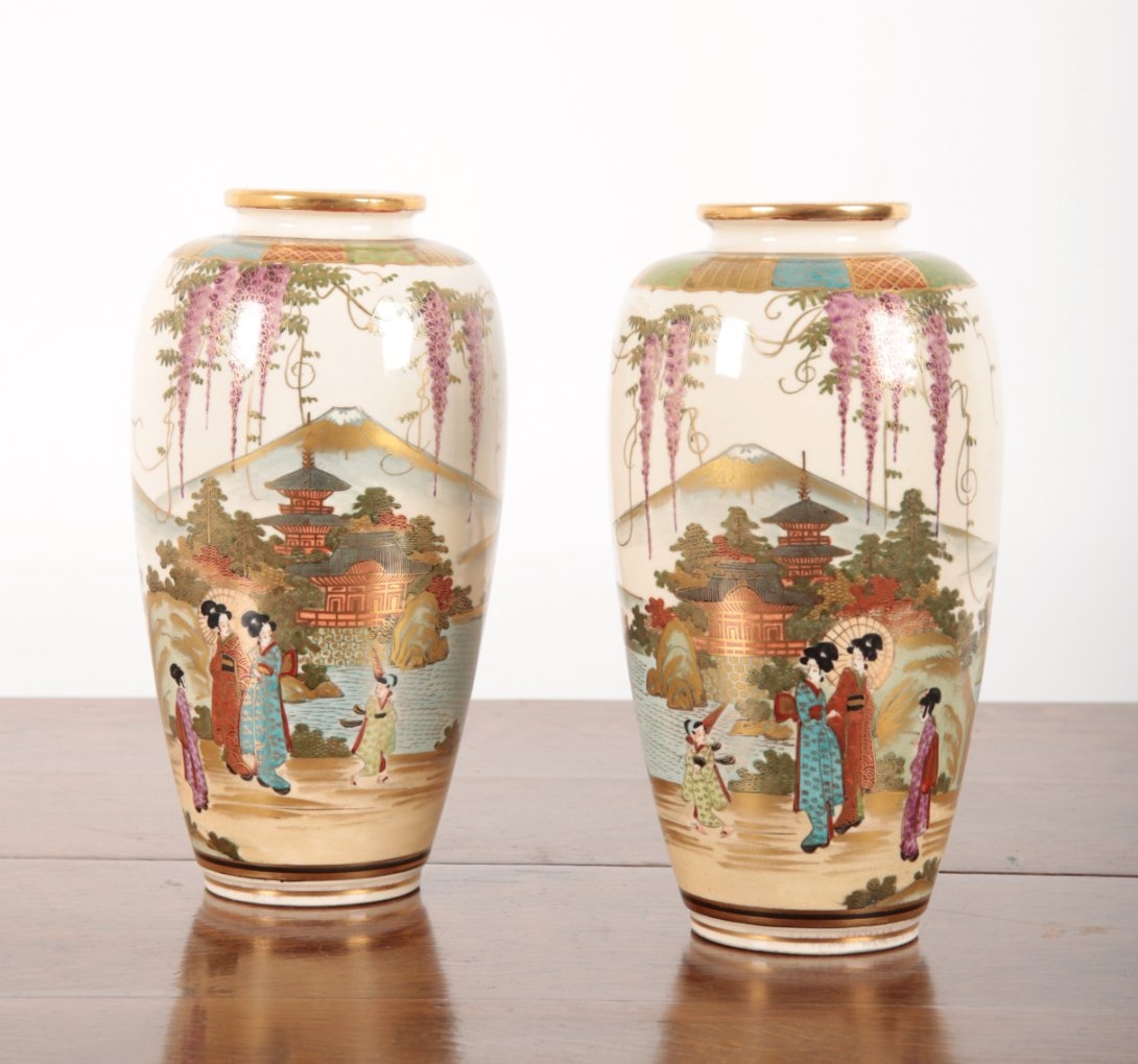 A PAIR OF JAPANESE SATSUMA PORCELAIN VASES
