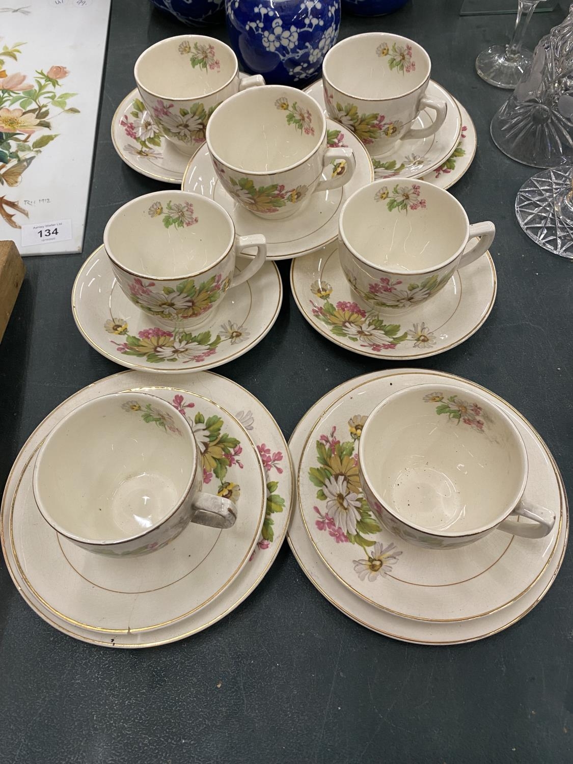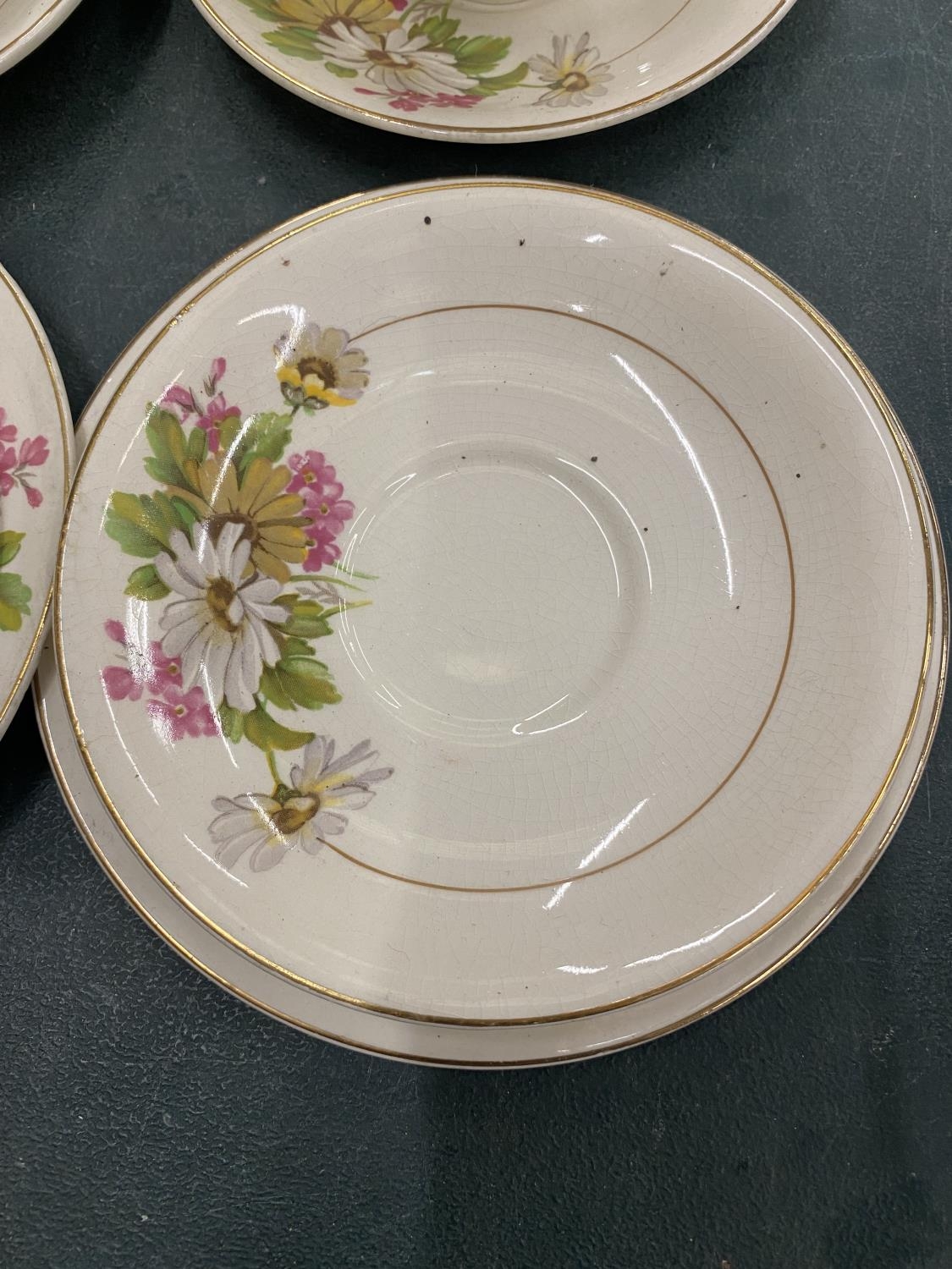 A QUANTITY KIRKLANDS EMBASSY WARE TO INCLUDE FLORAL PATTERN CUPS, SAUCERS AND SIDE PLATES
